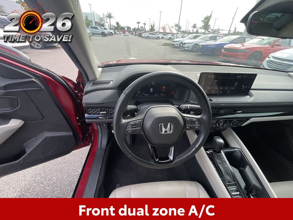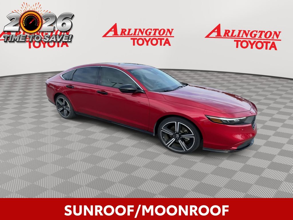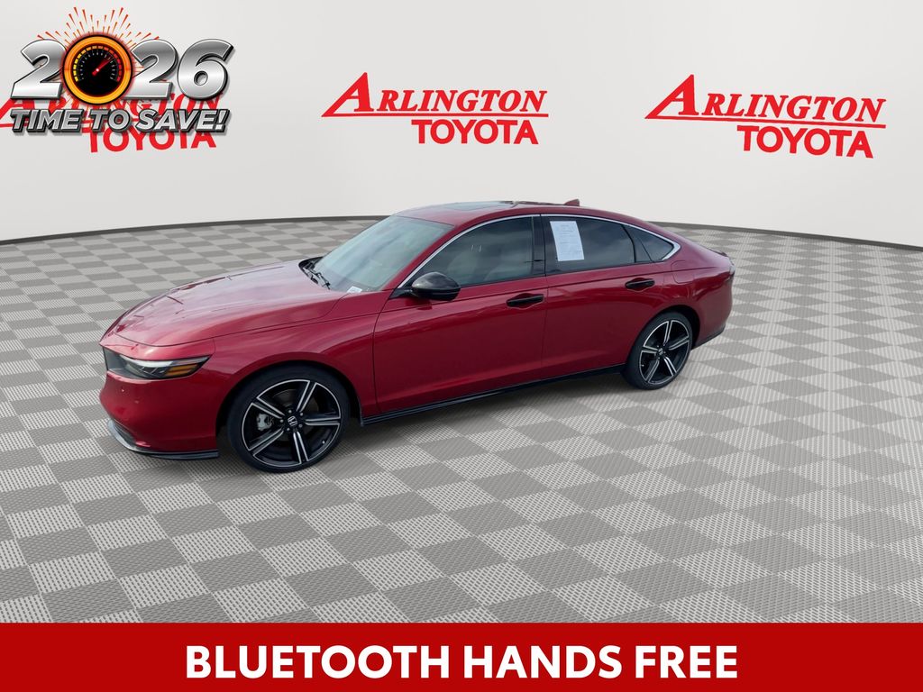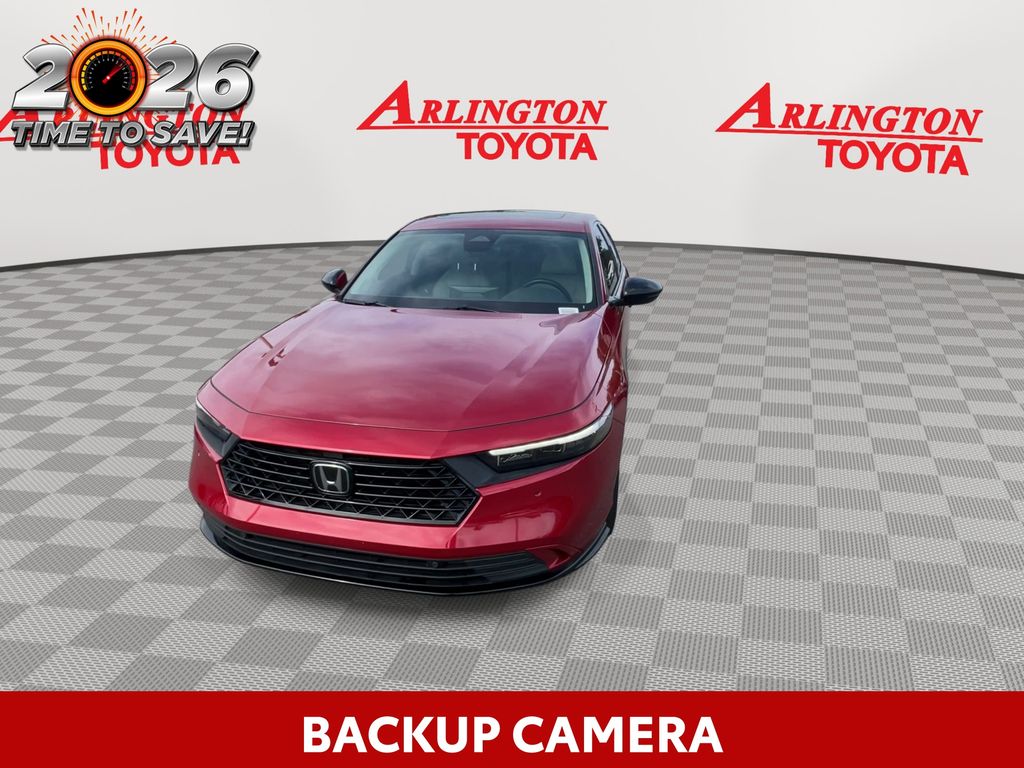 REMAINDER OF FACTORY WARRANTY STILL APPLIES, BACKUP CAMERA, BLUETOOTH HANDS FREE, ANDROID AUTO, APPLE CARPLAY, POWER SEATS, MEMORY SEATS, SUNROOF/MOONROOF, PUSH BUTTON START, LANE DEPARTURE, ADAPTIVE CRUISE CONTROL, NON SMOKER, Accord Hybrid EX-L, 4D Sedan, 2.0L 16V DOHC, eCVT, FWD, Radiant Red Metallic, Gray w/Leather-Trimmed Seat Trim, ABS brakes, Electronic Stability Control, Four wheel independent suspension, Front dual zone A/C, Fully automatic headlights, Low tire pressure warning, Remote keyless entry, Steering wheel mounted audio controls, Turn signal indicator mirrors, 4-Wheel Disc Brakes, 8 Speakers, Adaptive Cruise Control: Adaptive Cruise Control (ACC) with Low-Speed Follow, Air Conditioning, Alloy wheels, AM/FM radio, Apple CarPlay/Android Auto, Auto High-beam Headlights, Auto-dimming Rear-View mirror, Automatic temperature control, Brake assist, Bumpers: body-color, Compass, Delay-off headlights, Driver door bin, Driver vanity mirror, Dual front impact airbags, Dual front side impact airbags, Exterior Parking Camera Rear, Front anti-roll bar, Front Bucket Seats, Front Center Armrest, Front reading lights, Heated door mirrors, Heated Front Bucket Seats, Heated front seats, Illuminated entry, Knee airbag, Lane departure: Lane Keeping Assist System (LKAS) active, Leather Shift Knob, Leather steering wheel, Leather-Trimmed Seat Trim, Memory seat, Occupant sensing airbag, Outside temperature display, Overhead airbag, Overhead console, Panic alarm, Passenger door bin, Passenger vanity mirror, Power door mirrors, Power driver seat, Power moonroof, Power passenger seat, Power steering, Power windows, Radio data system, Radio: 180-Watt Audio System, Rear anti-roll bar, Rear reading lights, Rear seat center armrest, Rear side impact airbag, Rear window defroster, Security system, Speed control, Speed-sensing steering, Speed-Sensitive Wipers, Split folding rear seat, Telescoping steering wheel, Tilt steering wheel, Traction control, Trip computer, Variably intermittent wipers, Wheels: 17" x 7.5J Pewter Gray, Accord Hybrid EX-L, 4D Sedan, 2.0L 16V DOHC, eCVT, FWD, Radiant Red Metallic, Gray w/Leather-Trimmed Seat Trim, ABS brakes, Electronic Stability Control, Four wheel independent suspension, Front dual zone A/C, Fully automatic headlights, Low tire pressure warning, Remote keyless entry, Steering wheel mounted audio controls, Turn signal indicator mirrors.