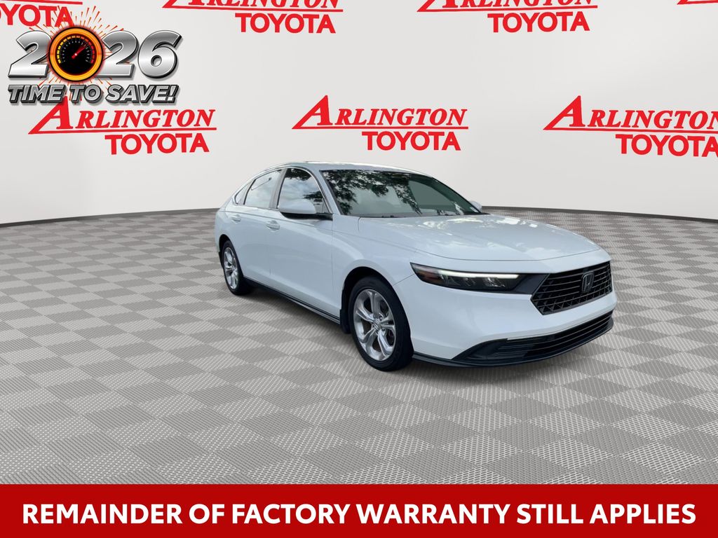 REMAINDER OF FACTORY WARRANTY STILL APPLIES, BACKUP CAMERA, BLUETOOTH HANDS FREE, PUSH BUTTON START, CRUISE CONTROL, NON SMOKER, Accord LX, 4D Sedan, 1.5T I4 DOHC 16V Turbocharged VTEC, CVT, FWD, Black w/Fabric Seat Trim, ABS brakes, Four wheel independent suspension, Low tire pressure warning, Steering wheel mounted audio controls, 4 Speakers, 4-Wheel Disc Brakes, Adaptive Cruise Control: Adaptive Cruise Control (ACC) with Low-Speed Follow, Air Conditioning, Alloy wheels, AM/FM radio, Apple CarPlay/Android Auto, Auto High-beam Headlights, Automatic temperature control, Brake assist, Bumpers: body-color, Compass, Delay-off headlights, Driver door bin, Driver vanity mirror, Dual front impact airbags, Dual front side impact airbags, Electronic Stability Control, Exterior Parking Camera Rear, Fabric Seat Trim, Front anti-roll bar, Front Bucket Seats, Front Center Armrest, Front reading lights, Fully automatic headlights, Illuminated entry, Knee airbag, Lane departure: Lane Keeping Assist System (LKAS) active, Occupant sensing airbag, Outside temperature display, Overhead airbag, Overhead console, Panic alarm, Passenger door bin, Passenger vanity mirror, Power door mirrors, Power steering, Power windows, Radio data system, Radio: 160-Watt AM/FM Audio System, Rear anti-roll bar, Rear reading lights, Rear seat center armrest, Rear side impact airbag, Rear window defroster, Remote keyless entry, Security system, Speed control, Speed-sensing steering, Speed-Sensitive Wipers, Tachometer, Telescoping steering wheel, Tilt steering wheel, Traction control, Trip computer, Variably intermittent wipers, Wheels: 17" x 7.5" Blade Silver, Accord LX, 4D Sedan, 1.5T I4 DOHC 16V Turbocharged VTEC, CVT, FWD, Black w/Fabric Seat Trim, ABS brakes, Four wheel independent suspension, Low tire pressure warning, Steering wheel mounted audio controls.