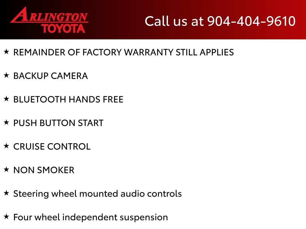 CALL FOR AVAILABILITY AND EXTRA OPTIONS ARLINGTON TOYOTA 904-721-3000.