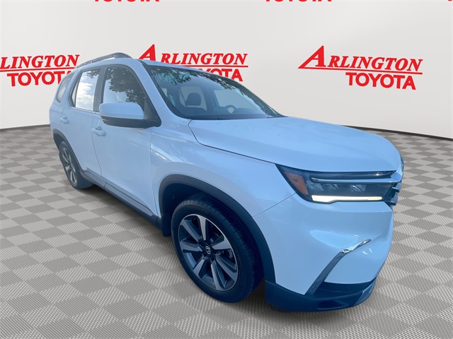 Odometer is 10677 miles below market average! Recent Arrival!CERTIFIED BY CARFAX - ONE OWNER, REMAINDER OF FACTORY WARRANTY STILL APPLIES, BACKUP CAMERA, BLUETOOTH HANDS FREE, ANDROID AUTO, APPLE CARPLAY, POWER SEATS, MEMORY SEATS, POWER LIFTGATE, SUNROOF/MOONROOF, PUSH BUTTON START, LANE DEPARTURE, ADAPTIVE CRUISE CONTROL, NON SMOKER, Pilot Touring, 4D Sport Utility, 3.5L V6 DOHC 24V, 10-Speed Automatic, FWD, Platinum White Pearl, Black w/Leather Seat Trim, ABS brakes, Electronic Stability Control, Four wheel independent suspension, Front dual zone A/C, Low tire pressure warning, Remote keyless entry, Steering wheel mounted audio controls, 12 Speakers, 3rd row seats: split-bench, 4-Wheel Disc Brakes, Adaptive Cruise Control: Adaptive Cruise Control (ACC) with Low-Speed Follow, Air Conditioning, Alloy wheels, AM/FM radio: SiriusXM, Apple CarPlay/Android Auto, Auto High-beam Headlights, Auto-dimming Rear-View mirror, Automatic temperature control, Axle Ratio: 4.167, Blind Spot Information (BSI) System warning, Bose Premium Sound System, Brake assist, Bumpers: body-color, Compass, Delay-off headlights, Driver door bin, Driver vanity mirror, Dual front impact airbags, Dual front side impact airbags, Emergency communication system: HondaLink, Front anti-roll bar, Front Bucket Seats, Front Center Armrest, Front fog lights, Front reading lights, Fully automatic headlights, Garage door transmitter: HomeLink, Heated door mirrors, Heated Front Bucket Seats, Heated front seats, Illuminated entry, Knee airbag, Lane departure: Lane Keeping Assist System (LKAS) active, Leather Seat Trim, Memory seat, Navigation system: Honda Satellite-Linked Navigation System, Occupant sensing airbag, Outside temperature display, Overhead airbag, Overhead console, Panic alarm, Passenger door bin, Passenger vanity mirror, Power door mirrors, Power driver seat, Power Liftgate, Power moonroof, Power passenger seat, Power steering, Power windows, Radio data system, Rear air conditioning, Rear anti-roll bar, Rear reading lights, Rear seat center armrest, Rear window defroster, Rear window wiper, Reclining 3rd row seat, Security system, Speed control, Speed-sensing steering, Speed-Sensitive Wipers, Split folding rear seat, Spoiler, Tachometer, Telescoping steering wheel, Tilt steering wheel, Traction control, Trip computer, Turn signal indicator mirrors, Variably intermittent wipers, Wheels: 20" Machine Face Shark Gray w/Blk Lug Nuts, Pilot Touring, 4D Sport Utility, 3.5L V6 DOHC 24V, 10-Speed Automatic, FWD, Platinum White Pearl, Black w/Leather Seat Trim, ABS brakes, Electronic Stability Control, Four wheel independent suspension, Front dual zone A/C, Low tire pressure warning, Remote keyless entry, Steering wheel mounted audio controls.CALL FOR AVAILABILITY AND EXTRA OPTIONS ARLINGTON TOYOTA 904-721-3000.