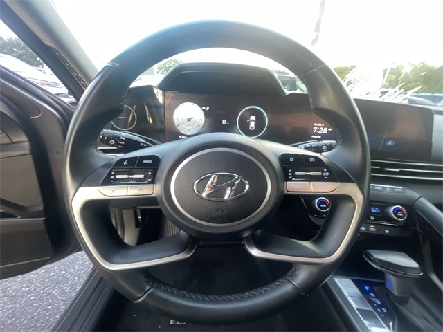 Recent Arrival!CERTIFIED BY CARFAX - ONE OWNER, REMAINDER OF FACTORY WARRANTY STILL APPLIES, BACKUP CAMERA, BLUETOOTH HANDS FREE, ANDROID AUTO, APPLE CARPLAY, LOCAL TRADE IN, CRUISE CONTROL, NON SMOKER, Elantra SEL, 4D Sedan, I4, CVT, FWD, Electric Shadow, Black Cloth, ABS brakes, Electronic Stability Control, Front dual zone A/C, Fully automatic headlights, Low tire pressure warning, Steering wheel mounted audio controls, 16" x 6.5J Alloy Wheels, 2nd Row USB Charge Port, 4-Wheel Disc Brakes, 6 Speakers, Air Conditioning, Alloy wheels, AM/FM radio: SiriusXM, Apple CarPlay & Android Auto, Auto High-beam Headlights, Automatic temperature control, Brake assist, Bumpers: body-color, Cargo Net, Carpeted Floor Mats, Cloth Seat Trim, Convenience Package, Delay-off headlights, Driver door bin, Driver vanity mirror, Dual front impact airbags, Dual front side impact airbags, Electronic Parking Brake, Exterior Parking Camera Rear, Forward Collision Avoidance Assist, Front anti-roll bar, Front Bucket Seats, Front Center Armrest, Front reading lights, Front wheel independent suspension, Full 10.25" LCD TFT Cluster, Heated Front Seats, Heated Outside Mirrors, Illuminated entry, Leather-Wrapped Steering Wheel, LED Interior Lights, Mudguards, Occupant sensing airbag, Option Group 02, Outside temperature display, Overhead airbag, Overhead console, Panic alarm, Passenger door bin, Passenger vanity mirror, Power door mirrors, Power steering, Power windows, Radio: AM/FM/HD/SiriusXM Audio System, Radio: AM/FM/HD/SiriusXM Display Audio, Rear Bumper Applique, Rear window defroster, Remote keyless entry, Security system, Smart Cruise Control w/Stop & Go, Speed control, Speed-sensing steering, Tachometer, Telescoping steering wheel, Tilt steering wheel, Traction control, Trip computer, Variably intermittent wipers, Wheels: 17" x 7.0J Machine Finish Alloy, Wireless Charging Pad, Elantra SEL, 4D Sedan, I4, CVT, FWD, Electric Shadow, Black Cloth, ABS brakes, Electronic Stability Control, Front dual zone A/C, Fully automatic headlights, Low tire pressure warning, Steering wheel mounted audio controls.CALL FOR AVAILABILITY AND EXTRA OPTIONS ARLINGTON TOYOTA 904-721-3000.