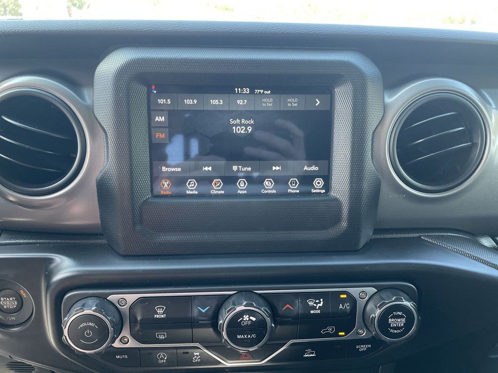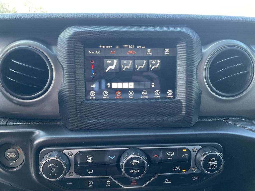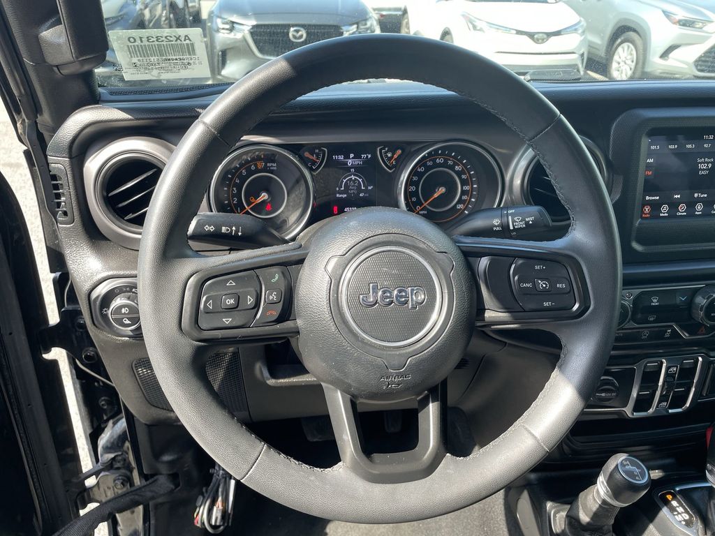 REMAINDER OF FACTORY WARRANTY STILL APPLIES, BACKUP CAMERA, BLUETOOTH HANDS FREE, ANDROID AUTO, APPLE CARPLAY, 4X4/FOUR WHEEL DRIVE, BED LINER, PUSH BUTTON START, CRUISE CONTROL, NON SMOKER, Gladiator Sport 4X4, 4D Crew Cab, 3.6L V6 24V VVT, 8-Speed Automatic, 4WD, Black Clearcoat, Black Cloth, 3.73 Rear Axle Ratio, 4-Wheel Disc Brakes, 4G LTE Wi-Fi Hot Spot, 8 Speakers, ABS brakes, Air Conditioning, AM/FM radio, Apple CarPlay, Apple CarPlay/Android Auto, Automatic Headlamps, Black 3-Piece Hard Top, Brake assist, Cloth Low-Back Bucket Seats, Compass, Deep Tint Sunscreen Windows, Delay-off headlights, Driver door bin, Driver vanity mirror, Dual front impact airbags, Dual front side impact airbags, Electronic Stability Control, Emergency communication system, Front 1-Touch Down Power Windows, Front anti-roll bar, Front Bucket Seats, Front Center Armrest w/Storage, Front fog lights, Front License Plate Bracket, Front reading lights, Google Android Auto, GPS Antenna Input, Integrated Center Stack Radio, Integrated roll-over protection, Integrated Voice Command w/Bluetooth, Low tire pressure warning, Normal Duty Plus Suspension, Normal Duty Suspension, Occupant sensing airbag, Outside temperature display, ParkView Rear Back-Up Camera, Passenger door bin, Passenger vanity mirror, Power Heated Mirrors, Power steering, Power Tailgate Lock, Premium Wrapped Steering Wheel, Quick Order Package 23S Sport S, Quick Order Package 24S Sport S, Radio data system, Radio: Uconnect 4 w/7" Display, Rear anti-roll bar, Rear reading lights, Remote Keyless Entry, Security Alarm, Speed control, Speed Sensitive Power Locks, Split folding rear seat, Sport S, Steering wheel mounted audio controls, Sun Visors w/Illuminated Vanity Mirrors, Tachometer, Telescoping steering wheel, Tilt steering wheel, Traction control, Trip computer, USB Host Flip, Variably intermittent wipers, Wheels: 17" x 7.5 Tech Silver Aluminum, Wheels: 17" x 7.5" Black Steel Styled, Wheels: 17" x 7.5" Tech Silver Aluminum (DISC), Gladiator Sport 4X4, 4D Crew Cab, 3.6L V6 24V VVT, 8-Speed Automatic, 4WD, Black Clearcoat, Black Cloth.