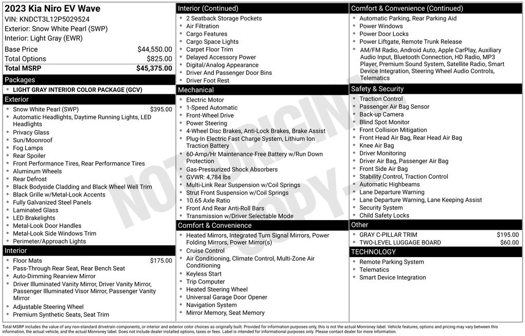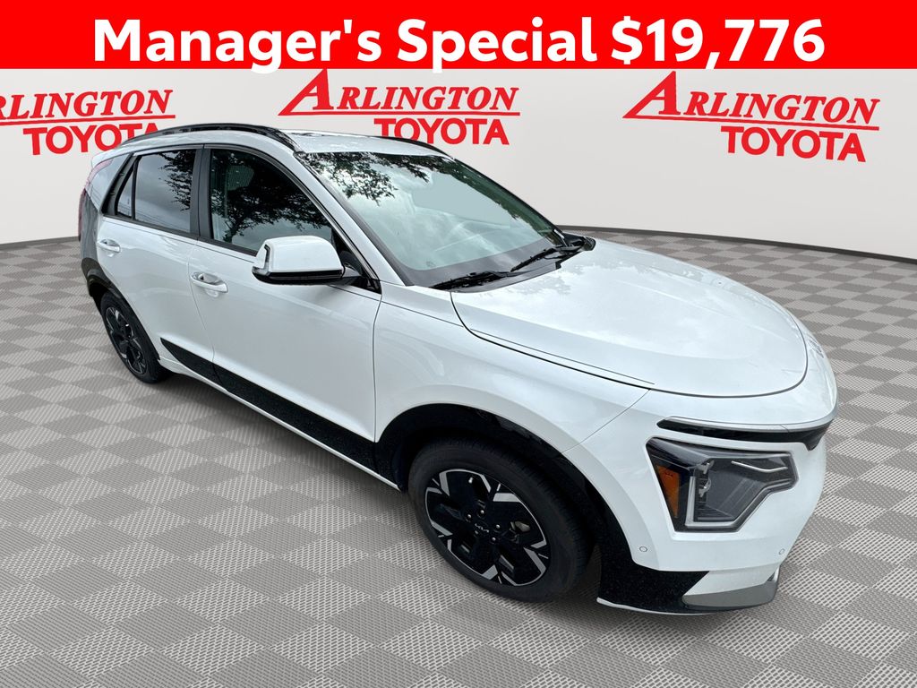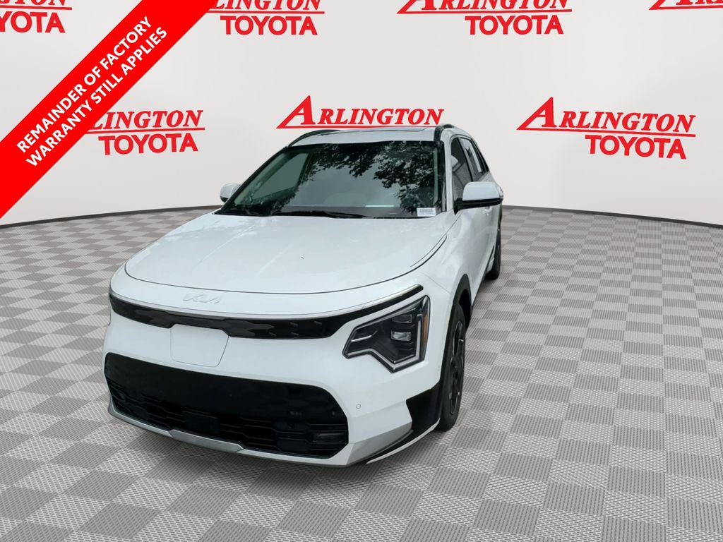 CERTIFIED BY CARFAX - ONE OWNER, REMAINDER OF FACTORY WARRANTY STILL APPLIES, BACKUP CAMERA, BLUETOOTH HANDS FREE, ANDROID AUTO, APPLE CARPLAY, POWER SEATS, MEMORY SEATS, PUSH BUTTON START, CRUISE CONTROL, NON SMOKER, Niro EV Wave, 4D Sport Utility, Electric Motor, 1-Speed Automatic, FWD, Snow White Pearl, Light Gray Leather, ABS brakes, Electronic Stability Control, Four wheel independent suspension, Front dual zone A/C, Fully automatic headlights, Low tire pressure warning, Remote keyless entry, Steering wheel mounted audio controls, Turn signal indicator mirrors, 10.65 Axle Ratio, 4-Wheel Disc Brakes, 8 Speakers, Air Conditioning, Alloy wheels, AM/FM radio: SiriusXM, Apple CarPlay & Android Auto, Auto High-beam Headlights, Auto-dimming Rear-View mirror, Automatic temperature control, Brake assist, Bumpers: body-color, Carpet Floor Mats, Delay-off headlights, Driver door bin, Driver vanity mirror, Dual front impact airbags, Dual front side impact airbags, Exterior Parking Camera Rear, Front anti-roll bar, Front Bucket Seats, Front Center Armrest, Front fog lights, Front reading lights, Garage door transmitter: HomeLink, Gray C-Pillar Trim, harman/kardon® Speakers, Heated & Ventilated Front Bucket Seats, Heated door mirrors, Heated front seats, Heated steering wheel, Illuminated entry, Knee airbag, Light Gray Interior Color Package, Memory seat, Navigation System, Occupant sensing airbag, Outside temperature display, Overhead airbag, Overhead console, Panic alarm, Passenger door bin, Passenger vanity mirror, Perforated Vegan Leather-Trimmed Seats, Power door mirrors, Power driver seat, Power Liftgate, Power moonroof, Power passenger seat, Power steering, Power windows, Radio: harman/kardon Premium Audio System, Rain sensing wipers, Rear anti-roll bar, Rear seat center armrest, Rear window defroster, Rear window wiper, Security system, Speed control, Speed-sensing steering, Split folding rear seat, Spoiler, Telescoping steering wheel, Tilt steering wheel, Traction control, Trip computer, Two-Level Luggage Board, Variably intermittent wipers, Ventilated front seats, Wheels: 7.0J x 17" Aero Alloy, Niro EV Wave, 4D Sport Utility, Electric Motor, 1-Speed Automatic, FWD, Snow White Pearl, Light Gray Leather, ABS brakes, Electronic Stability Control, Four wheel independent suspension, Front dual zone A/C, Fully automatic headlights, Low tire pressure warning, Remote keyless entry, Steering wheel mounted audio controls, Turn signal indicator mirrors.