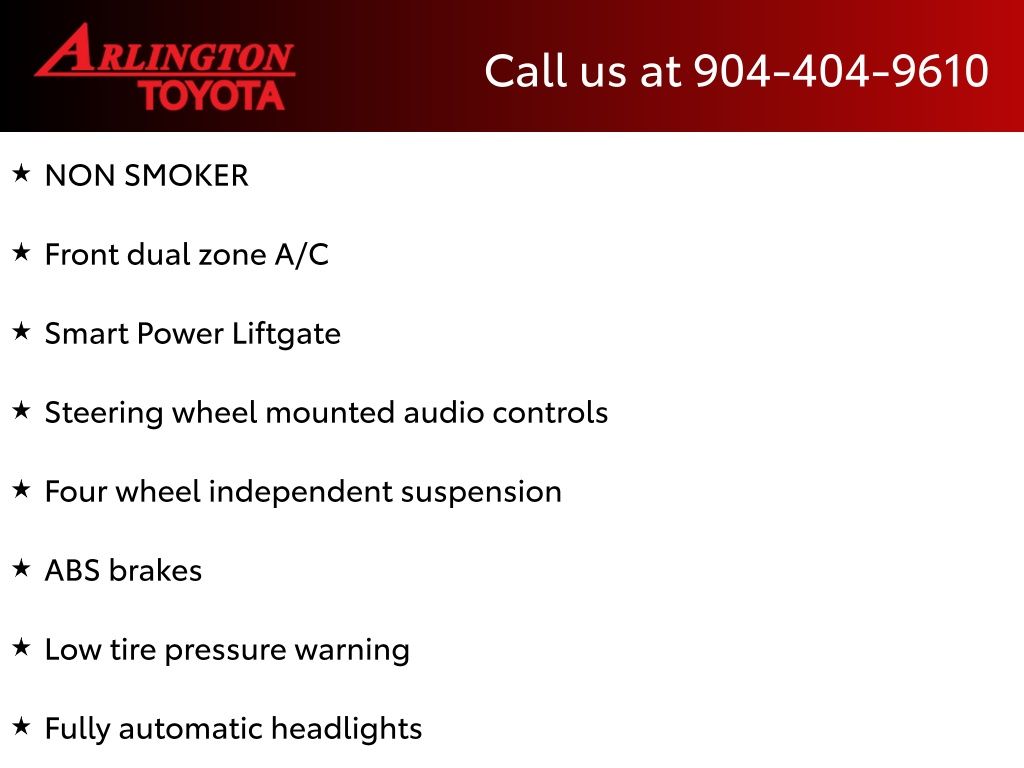 CALL FOR AVAILABILITY AND EXTRA OPTIONS ARLINGTON TOYOTA 904-721-3000.