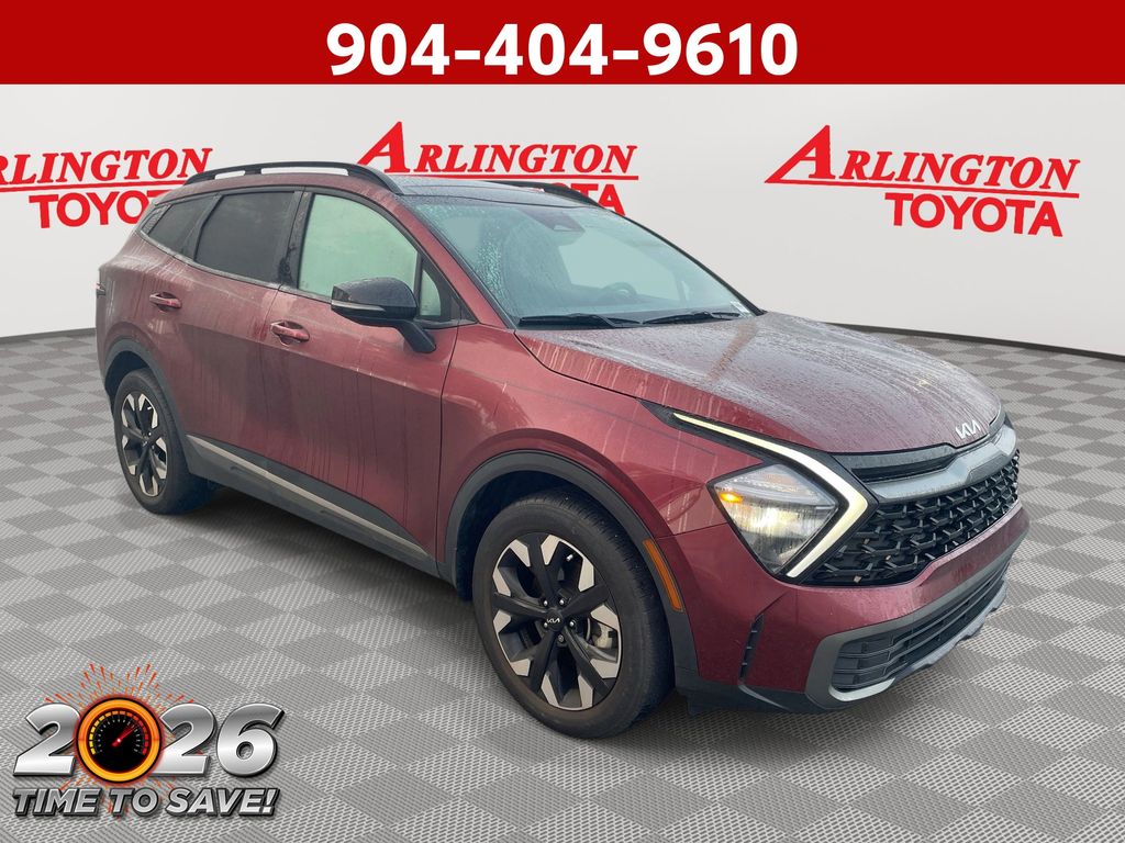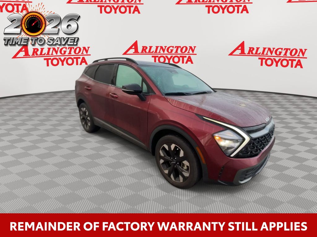 REMAINDER OF FACTORY WARRANTY STILL APPLIES, BACKUP CAMERA, BLUETOOTH HANDS FREE, ANDROID AUTO, APPLE CARPLAY, POWER SEATS, PANORAMIC MOONROOF, CRUISE CONTROL, NON SMOKER, Sportage X-Line, 4D Sport Utility, I4, 8-Speed Automatic, AWD, Dawning Red, Black w/Leatherette Seat Trim, ABS brakes, Four wheel independent suspension, Front dual zone A/C, Fully automatic headlights, Low tire pressure warning, Smart Power Liftgate, Steering wheel mounted audio controls, Turn signal indicator mirrors, 4-Wheel Disc Brakes, 6 Speakers, Air Conditioning, Alloy wheels, AM/FM radio: SiriusXM, Apple CarPlay & Android Auto, Auto High-beam Headlights, Automatic temperature control, Axle Ratio: 3.648, Bumpers: body-color, Cargo Mat, Carpet Floor Mats X-Line, Compass, Delay-off headlights, Driver door bin, Driver vanity mirror, Dual front impact airbags, Dual front side impact airbags, Electronic Stability Control, Emergency communication system, Front anti-roll bar, Front Bucket Seats, Front Center Armrest, harman/kardon® Speakers, Heated door mirrors, Heated Front Bucket Seats, Heated front seats, Illuminated entry, Leather Shift Knob, Leather steering wheel, LED Interior Lighting, Navigation System, Occupant sensing airbag, Outside temperature display, Overhead airbag, Overhead console, Panic alarm, Panoramic Sunroof, Passenger door bin, Passenger vanity mirror, Power door mirrors, Power driver seat, Power steering, Power windows, Premium Leatherette Seat Trim, Radio: AM/FM/HD Audio System, Rain sensing wipers, Rear anti-roll bar, Rear seat center armrest, Rear window defroster, Rear window wiper, Remote keyless entry, Security system, Speed control, Speed-sensing steering, Split folding rear seat, Spoiler, Tachometer, Telescoping steering wheel, Tilt steering wheel, Traction control, Trip computer, Variably intermittent wipers, Wheels: 19" Gloss Black Alloy, X-Line Premium Package, Sportage X-Line, 4D Sport Utility, I4, 8-Speed Automatic, AWD, Dawning Red, Black w/Leatherette Seat Trim, ABS brakes, Four wheel independent suspension, Front dual zone A/C, Fully automatic headlights, Low tire pressure warning, Smart Power Liftgate, Steering wheel mounted audio controls, Turn signal indicator mirrors.