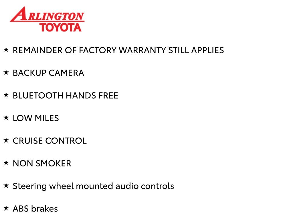 Prices do not include tax, tag, title, a pre-delivery service fee* of $894.00, an electronic registration filing fee* of $199.00 (*these charges represent costs and profits to the dealer for items such as inspecting, cleaning, and preparing documents related to the sale), and an Arlington Toyota Total Value Package of $1,889.00 (*these charges represent costs and profits to the dealer for items such as inspecting, cleaning, and preparing documents related to the sale). The final price is also subject to repair order reconditioning costs. Any price does not include dealer-installed accessories. All offers are mutually exclusive. All vehicles are subject to prior sale. See dealer for complete details.
