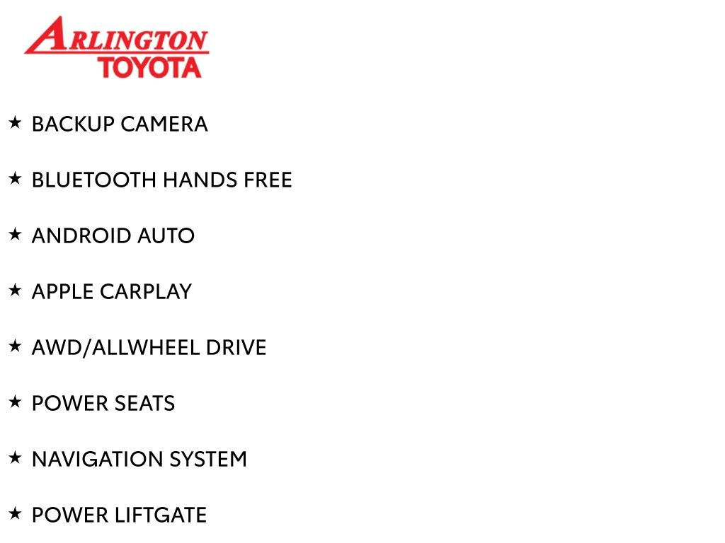 Prices do not include tax, tag, title, a pre-delivery service fee* of $894.00, an electronic registration filing fee* of $199.00 (*these charges represent costs and profits to the dealer for items such as inspecting, cleaning, and preparing documents related to the sale), and an Arlington Toyota Total Value Package of $1,889.00 (*these charges represent costs and profits to the dealer for items such as inspecting, cleaning, and preparing documents related to the sale). The final price is also subject to repair order reconditioning costs. Any price does not include dealer-installed accessories. All offers are mutually exclusive. All vehicles are subject to prior sale. See dealer for complete details.