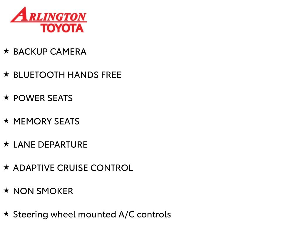 Prices do not include tax, tag, title, a pre-delivery service fee* of $894.00, an electronic registration filing fee* of $199.00 (*these charges represent costs and profits to the dealer for items such as inspecting, cleaning, and preparing documents related to the sale), and an Arlington Toyota Total Value Package of $1,889.00 (*these charges represent costs and profits to the dealer for items such as inspecting, cleaning, and preparing documents related to the sale). The final price is also subject to repair order reconditioning costs. Any price does not include dealer-installed accessories. All offers are mutually exclusive. All vehicles are subject to prior sale. See dealer for complete details.