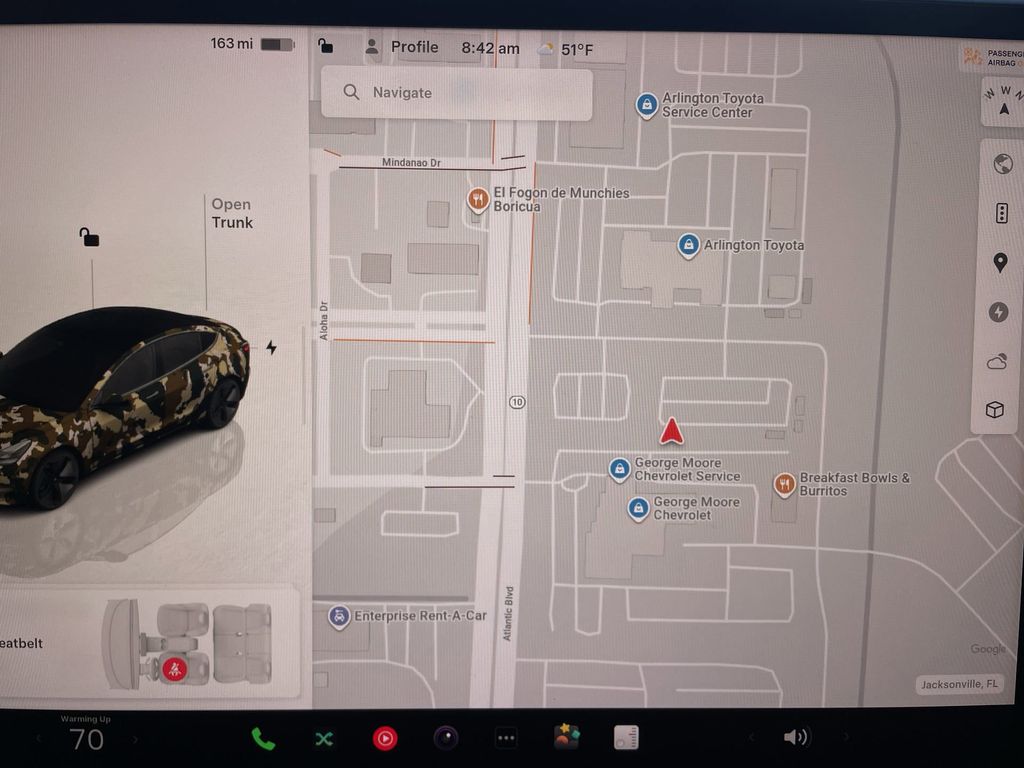 BACKUP CAMERA, BLUETOOTH HANDS FREE, BLIND SPOT MONITORING, POWER SEATS, NAVIGATION SYSTEM, LANE DEPARTURE, ADAPTIVE CRUISE CONTROL, NON SMOKER, 4D Sedan, Electric Motor, 1-Speed Automatic, RWD, ABS brakes, Electronic Stability Control, Four wheel independent suspension, Front dual zone A/C, Low tire pressure warning, Steering wheel mounted A/C controls, Steering wheel mounted audio controls, 4-Wheel Disc Brakes, 8 Speakers, Air Conditioning, Alloy wheels, Audio memory, Auto High-beam Headlights, Auto-dimming door mirrors, Auto-dimming Rear-View mirror, Automatic temperature control, Brake assist, Bumpers: body-color, Compass, Delay-off headlights, Driver door bin, Driver vanity mirror, Dual front impact airbags, Dual front side impact airbags, Emergency communication system, Exterior Parking Camera Rear, Front anti-roll bar, Front Bucket Seats, Front Center Armrest, Front reading lights, Fully automatic headlights, Genuine wood dashboard insert, Heated door mirrors, Heated Front Bucket Seats, Heated front seats, Heated rear seats, Heated steering wheel, HVAC memory, Illuminated entry, Knee airbag, Lane Departure Warning System, Memory seat, Navigation System, Occupant sensing airbag, Outside temperature display, Overhead airbag, Passenger door bin, Passenger vanity mirror, Power door mirrors, Power driver seat, Power passenger seat, Power steering, Power windows, Premium Seat Trim, Radio data system, Radio: Upgraded Audio System, Rain sensing wipers, Rear reading lights, Rear seat center armrest, Rear window defroster, Security system, Speed control, Speed-sensing steering, Split folding rear seat, Steering wheel memory, Telescoping steering wheel, Tilt steering wheel, Traction control, Trip computer, Variably intermittent wipers, Wheels: 18" x 8.5" Aero, 4D Sedan, Electric Motor, 1-Speed Automatic, RWD, ABS brakes, Electronic Stability Control, Four wheel independent suspension, Front dual zone A/C, Low tire pressure warning, Steering wheel mounted A/C controls, Steering wheel mounted audio controls.