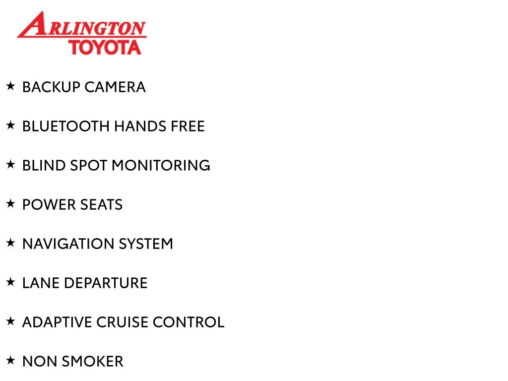 Prices do not include tax, tag, title, a pre-delivery service fee* of $894.00, an electronic registration filing fee* of $199.00 (*these charges represent costs and profits to the dealer for items such as inspecting, cleaning, and preparing documents related to the sale), and an Arlington Toyota Total Value Package of $1,889.00 (*these charges represent costs and profits to the dealer for items such as inspecting, cleaning, and preparing documents related to the sale). The final price is also subject to repair order reconditioning costs. Any price does not include dealer-installed accessories. All offers are mutually exclusive. All vehicles are subject to prior sale. See dealer for complete details.