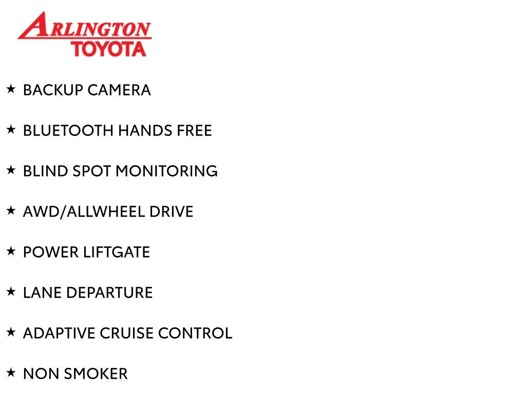 Prices do not include tax, tag, title, a pre-delivery service fee* of $894.00, an electronic registration filing fee* of $199.00 (*these charges represent costs and profits to the dealer for items such as inspecting, cleaning, and preparing documents related to the sale), and an Arlington Toyota Total Value Package of $1,889.00 (*these charges represent costs and profits to the dealer for items such as inspecting, cleaning, and preparing documents related to the sale). The final price is also subject to repair order reconditioning costs. Any price does not include dealer-installed accessories. All offers are mutually exclusive. All vehicles are subject to prior sale. See dealer for complete details.