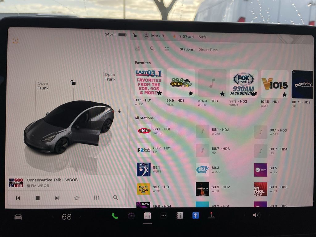 BACKUP CAMERA, BLUETOOTH HANDS FREE, BLIND SPOT MONITORING, AWD/ALLWHEEL DRIVE, POWER LIFTGATE, LANE DEPARTURE, ADAPTIVE CRUISE CONTROL, NON SMOKER, Model 3 Long Range AWD, 4D Sedan, Electric Motor, 1-Speed Automatic, AWD, Midnight Silver Metallic, Black w/Premium Seat Trim, ABS brakes, Electronic Stability Control, Low tire pressure warning, 14 Speakers, 4-Wheel Disc Brakes, Air Conditioning, Alloy wheels, Audio memory, Auto High-beam Headlights, Auto-dimming door mirrors, Auto-dimming Rear-View mirror, Automatic temperature control, Brake assist, Bumpers: body-color, Compass, Delay-off headlights, Driver door bin, Driver vanity mirror, Dual front impact airbags, Dual front side impact airbags, Exterior Parking Camera Rear, Four wheel independent suspension, Front anti-roll bar, Front Bucket Seats, Front Center Armrest, Front dual zone A/C, Front fog lights, Front reading lights, Fully automatic headlights, Genuine wood dashboard insert, Heated door mirrors, Heated Front Bucket Seats, Heated front seats, Heated rear seats, Heated steering wheel, HVAC memory, Illuminated entry, Knee airbag, Lane Departure Warning System, Memory seat, Navigation System, Occupant sensing airbag, Outside temperature display, Overhead airbag, Passenger door bin, Passenger vanity mirror, Power door mirrors, Power driver seat, Power passenger seat, Power steering, Power windows, Premium Audio System, Premium Seat Trim, Radio data system, Rain sensing wipers, Rear reading lights, Rear seat center armrest, Rear window defroster, Security system, Speed control, Speed-sensing steering, Split folding rear seat, Steering wheel memory, Steering wheel mounted A/C controls, Steering wheel mounted audio controls, Telescoping steering wheel, Tilt steering wheel, Traction control, Trip computer, Variably intermittent wipers, Wheels: 18" x 8.5" Aero, Model 3 Long Range AWD, 4D Sedan, Electric Motor, 1-Speed Automatic, AWD, Midnight Silver Metallic, Black w/Premium Seat Trim, ABS brakes, Electronic Stability Control, Low tire pressure warning.