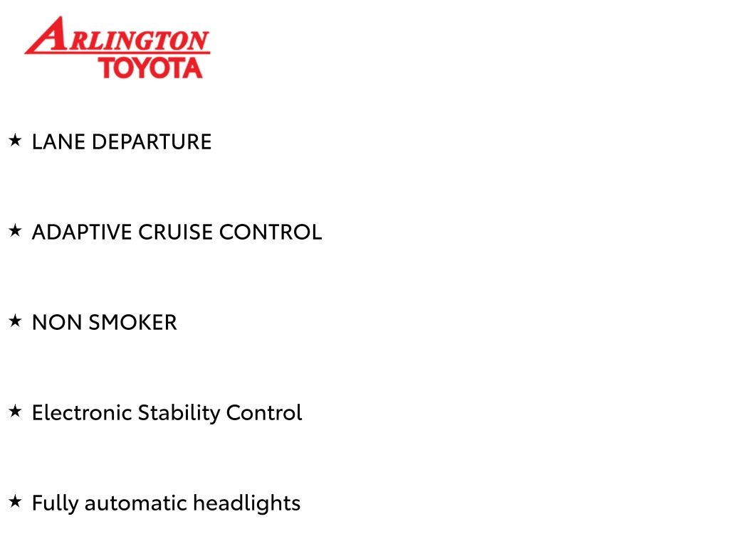 Prices do not include tax, tag, title, a pre-delivery service fee* of $894.00, an electronic registration filing fee* of $199.00 (*these charges represent costs and profits to the dealer for items such as inspecting, cleaning, and preparing documents related to the sale), and an Arlington Toyota Total Value Package of $1,889.00 (*these charges represent costs and profits to the dealer for items such as inspecting, cleaning, and preparing documents related to the sale). The final price is also subject to repair order reconditioning costs. Any price does not include dealer-installed accessories. All offers are mutually exclusive. All vehicles are subject to prior sale. See dealer for complete details.
