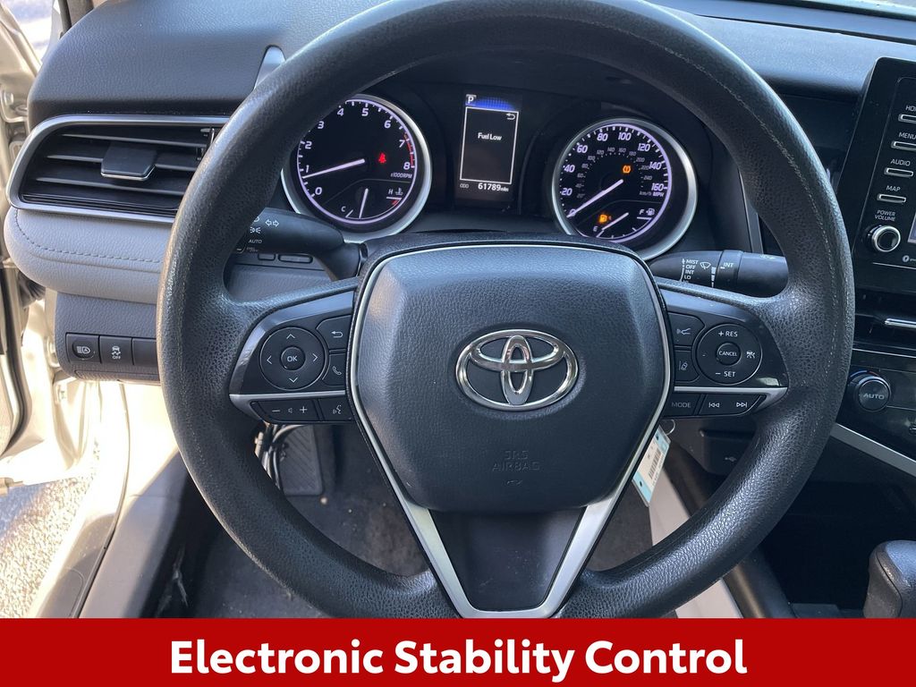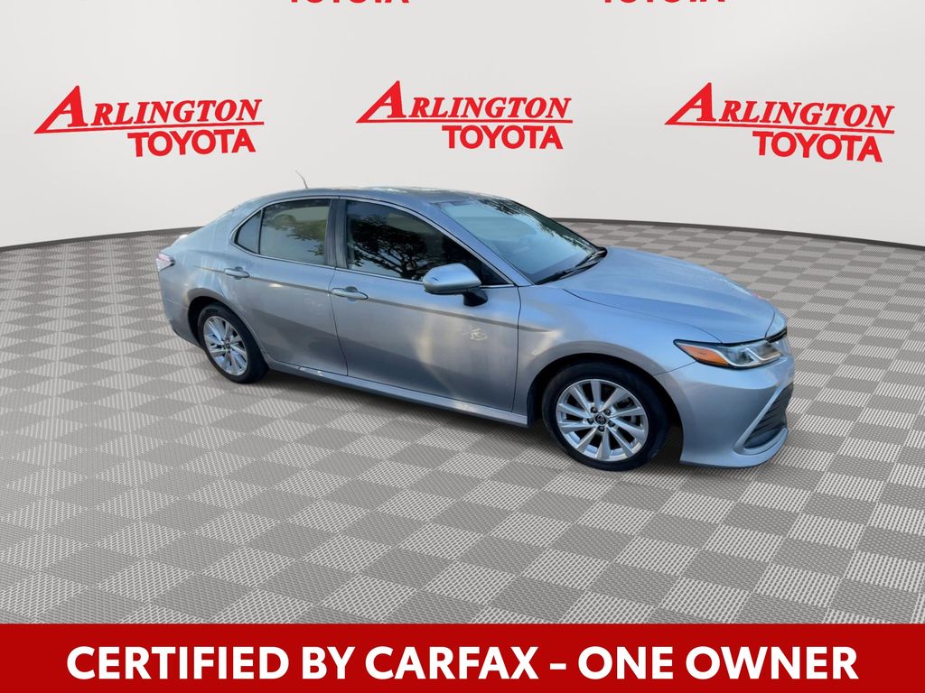 CERTIFIED BY CARFAX - ONE OWNER, BACKUP CAMERA, BLUETOOTH HANDS FREE, ANDROID AUTO, APPLE CARPLAY, POWER SEATS, LANE DEPARTURE, ADAPTIVE CRUISE CONTROL, NON SMOKER, Camry LE, 4D Sedan, 2.5L I4 DOHC 16V, 8-Speed Automatic, FWD, Celestial Silver Metallic, Ash Cloth, Electronic Stability Control, Four wheel independent suspension, Remote keyless entry, Steering wheel mounted audio controls, 4-Wheel Disc Brakes, 6 Speakers, 7.5J x 17" Alloy Wheels, ABS brakes, Air Conditioning, Alloy wheels, AM/FM radio: SiriusXM, Apple CarPlay/Android Auto, Auto High-beam Headlights, Automatic temperature control, Brake assist, Bumpers: body-color, Delay-off headlights, Driver door bin, Driver vanity mirror, Dual front impact airbags, Dual front side impact airbags, Emergency communication system: Safety Connect (1-year trial), Exterior Parking Camera Rear, Fabric Seat Trim, Front anti-roll bar, Front Bucket Seats, Front Center Armrest, Front dual zone A/C, Front reading lights, Fully automatic headlights, Illuminated entry, Knee airbag, Low tire pressure warning, Occupant sensing airbag, Outside temperature display, Overhead airbag, Overhead console, Panic alarm, Passenger door bin, Passenger vanity mirror, Power door mirrors, Power driver seat, Power steering, Power windows, Radio data system, Radio: Audio, Rear anti-roll bar, Rear seat center armrest, Rear side impact airbag, Rear window defroster, Security system, Speed control, Speed-sensing steering, Split folding rear seat, Tachometer, Telescoping steering wheel, Tilt steering wheel, Traction control, Trip computer, Variably intermittent wipers, Camry LE, 4D Sedan, 2.5L I4 DOHC 16V, 8-Speed Automatic, FWD, Celestial Silver Metallic, Ash Cloth, Electronic Stability Control, Four wheel independent suspension, Remote keyless entry, Steering wheel mounted audio controls.