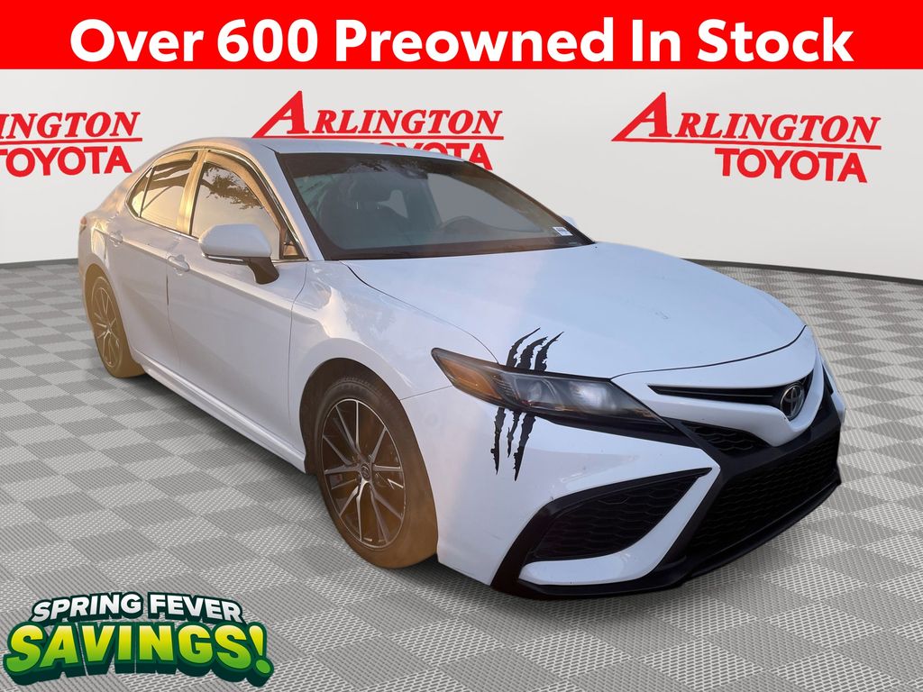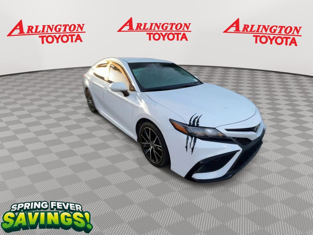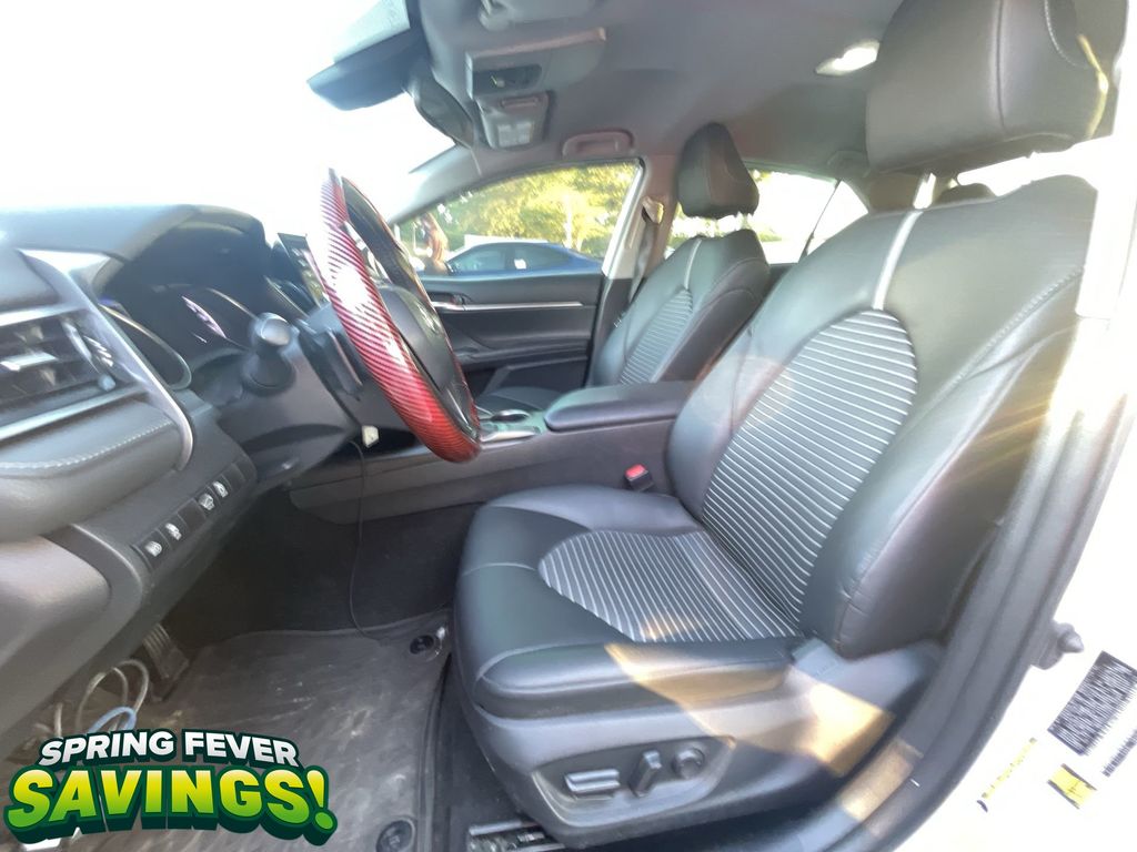 CERTIFIED BY CARFAX - ONE OWNER, REMAINDER OF FACTORY WARRANTY STILL APPLIES, BACKUP CAMERA, BLUETOOTH HANDS FREE, BLIND SPOT MONITORING, ANDROID AUTO, APPLE CARPLAY, POWER SEATS, LOCAL TRADE IN, LANE DEPARTURE, ADAPTIVE CRUISE CONTROL, NON SMOKER, Camry SE, 4D Sedan, 2.5L I4 DOHC 16V, 8-Speed Automatic, FWD, Ice Cap, Black w/Sport SofTex Seat Trim w/Fabric Inserts, ABS brakes, Electronic Stability Control, Four wheel independent suspension, Front dual zone A/C, Fully automatic headlights, Low tire pressure warning, Remote keyless entry, Steering wheel mounted audio controls, Turn signal indicator mirrors, 4-Wheel Disc Brakes, 6 Speakers, 8.0J x 18" Alloy Wheels, Air Conditioning, Alloy wheels, AM/FM radio: SiriusXM, Apple CarPlay/Android Auto, Auto High-beam Headlights, Automatic temperature control, Blind Spot Monitor w/Rear Cross Traffic Alert, Brake assist, Bumpers: body-color, Delay-off headlights, Driver door bin, Driver vanity mirror, Dual front impact airbags, Dual front side impact airbags, Exterior Parking Camera Rear, Front anti-roll bar, Front Bucket Seats, Front Center Armrest, Front reading lights, Heated door mirrors, Illuminated entry, Knee airbag, Leather steering wheel, Occupant sensing airbag, Outside temperature display, Overhead airbag, Overhead console, Panic alarm, Passenger door bin, Passenger vanity mirror, Power door mirrors, Power driver seat, Power steering, Power windows, Radio data system, Radio: Audio, Rear anti-roll bar, Rear seat center armrest, Rear side impact airbag, Rear window defroster, Security system, Speed control, Speed-sensing steering, Split folding rear seat, Spoiler, Sport SofTex Seat Trim w/Fabric Inserts, Tachometer, Telescoping steering wheel, Tilt steering wheel, Traction control, Trip computer, Variably intermittent wipers, Camry SE, 4D Sedan, 2.5L I4 DOHC 16V, 8-Speed Automatic, FWD, Ice Cap, Black w/Sport SofTex Seat Trim w/Fabric Inserts, ABS brakes, Electronic Stability Control, Four wheel independent suspension, Front dual zone A/C, Fully automatic headlights, Low tire pressure warning, Remote keyless entry, Steering wheel mounted audio controls, Turn signal indicator mirrors.