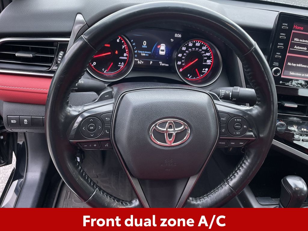 CERTIFIED BY CARFAX - ONE OWNER, BACKUP CAMERA, BLUETOOTH HANDS FREE, ANDROID AUTO, APPLE CARPLAY, POWER SEATS, LOCAL TRADE IN, PUSH BUTTON START, LANE DEPARTURE, ADAPTIVE CRUISE CONTROL, NON SMOKER, Camry XSE, 4D Sedan, 2.5L I4 DOHC 16V, 8-Speed Automatic, FWD, Midnight Black Metallic, Cockpit Red Leather, ABS brakes, Cold Weather Package, Electronic Stability Control, Four wheel independent suspension, Front dual zone A/C, Heated Steering Wheel, Low tire pressure warning, Remote keyless entry, Steering wheel mounted audio controls, Turn signal indicator mirrors, 4-Wheel Disc Brakes, 6 Speakers, Air Conditioning, All Weather Floor Liners/Cargo Tray (TMS), Alloy wheels, AM/FM radio: SiriusXM, Apple CarPlay/Android Auto, Auto High-beam Headlights, Auto-dimming Rear-View mirror, Automatic temperature control, Brake assist, Bumpers: body-color, Delay-off headlights, Door Edge Guard (TMS), Door Sill Enhancements (TMS), Driver door bin, Driver vanity mirror, Dual front impact airbags, Dual front side impact airbags, Exterior Parking Camera Rear, Front anti-roll bar, Front Bucket Seats, Front Center Armrest, Front reading lights, Fully automatic headlights, Garage door transmitter: HomeLink, Heated door mirrors, Heated front seats, Illuminated entry, Knee airbag, Leather steering wheel, Multi-Stage Heated Front Bucket Seats, Occupant sensing airbag, Outside temperature display, Overhead airbag, Overhead console, Panic alarm, Passenger door bin, Passenger vanity mirror, Perforated Leather Seat Trim, Power door mirrors, Power driver seat, Power passenger seat, Power steering, Power windows, Radio data system, Radio: Audio Plus, Rear anti-roll bar, Rear Dual USB Power Ports (TMS), Rear reading lights, Rear seat center armrest, Rear side impact airbag, Rear window defroster, Security system, Speed control, Speed-sensing steering, Split folding rear seat, Spoiler, Tachometer, Telescoping steering wheel, Tilt steering wheel, Traction control, Trip computer, USB Phone Charging Cable Kit (TMS), Variably intermittent wipers, Wheels: 8.0J x 19" Alloy, Camry XSE, 4D Sedan, 2.5L I4 DOHC 16V, 8-Speed Automatic, FWD, Midnight Black Metallic, Cockpit Red Leather, ABS brakes, Cold Weather Package, Electronic Stability Control, Four wheel independent suspension, Front dual zone A/C, Heated Steering Wheel, Low tire pressure warning, Remote keyless entry, Steering wheel mounted audio controls, Turn signal indicator mirrors.