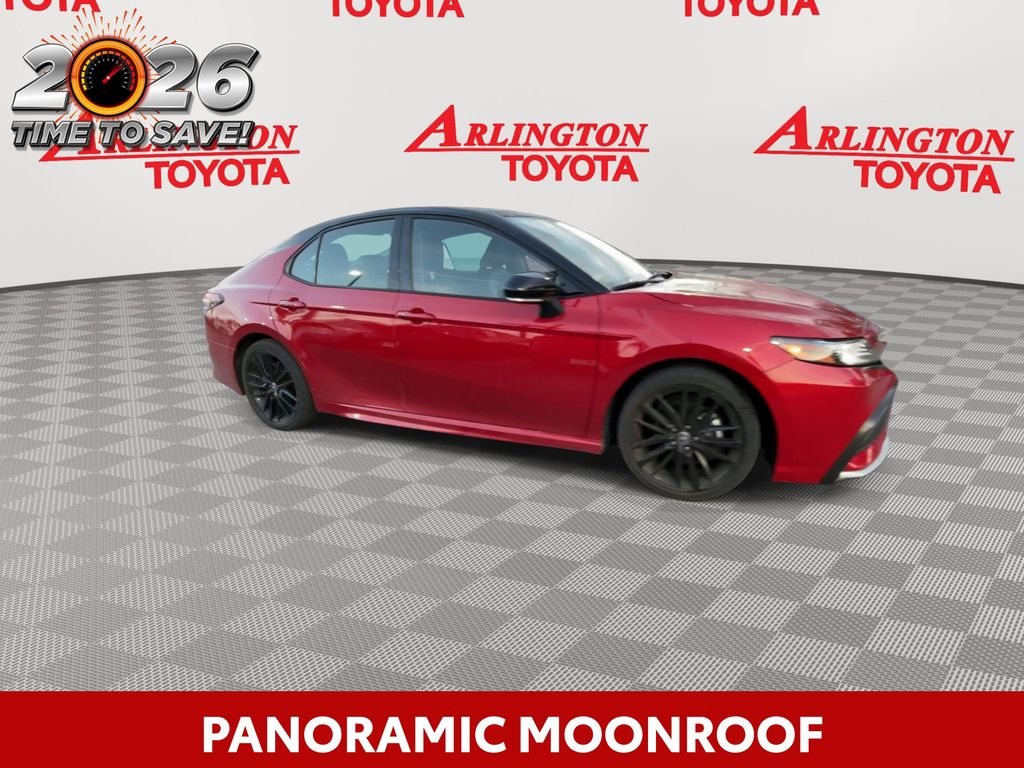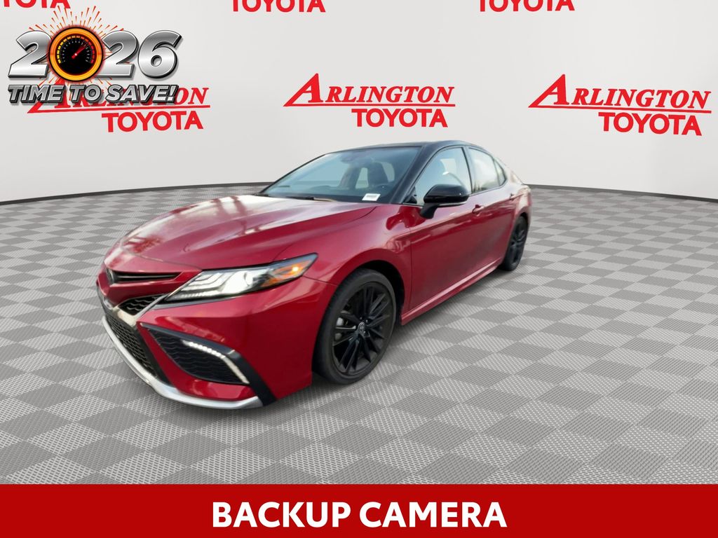 REMAINDER OF FACTORY WARRANTY STILL APPLIES, BACKUP CAMERA, BLUETOOTH HANDS FREE, ANDROID AUTO, APPLE CARPLAY, POWER SEATS, LOCAL TRADE IN, PANORAMIC MOONROOF, PUSH BUTTON START, LANE DEPARTURE, ADAPTIVE CRUISE CONTROL, NON SMOKER, Camry XSE, 4D Sedan, 2.5L I4 DOHC 16V, 8-Speed Automatic, FWD, Supersonic Red/Midnight Black Metallic, Black Leather, ABS brakes, Electronic Stability Control, Four wheel independent suspension, Front dual zone A/C, Fully automatic headlights, Low tire pressure warning, Remote keyless entry, Steering wheel mounted audio controls, Turn signal indicator mirrors, 4-Wheel Disc Brakes, 6 Speakers, Air Conditioning, Alloy wheels, AM/FM radio: SiriusXM, Apple CarPlay/Android Auto, Auto High-beam Headlights, Auto-dimming Rear-View mirror, Automatic temperature control, Brake assist, Bumpers: body-color, Delay-off headlights, Driver door bin, Driver vanity mirror, Dual front impact airbags, Dual front side impact airbags, Exterior Parking Camera Rear, Front anti-roll bar, Front Bucket Seats, Front Center Armrest, Front reading lights, Garage door transmitter: HomeLink, Heated door mirrors, Heated front seats, Illuminated entry, Knee airbag, Leather steering wheel, Multi-Stage Heated Front Bucket Seats, Occupant sensing airbag, Outside temperature display, Overhead airbag, Overhead console, Panic alarm, Panoramic Glass Roof, Passenger door bin, Passenger vanity mirror, Perforated Leather Seat Trim, Power door mirrors, Power driver seat, Power passenger seat, Power steering, Power windows, Radio data system, Radio: Audio Plus, Rear anti-roll bar, Rear reading lights, Rear seat center armrest, Rear side impact airbag, Rear window defroster, Security system, Speed control, Speed-sensing steering, Split folding rear seat, Spoiler, Tachometer, Telescoping steering wheel, Tilt steering wheel, Traction control, Trip computer, Variably intermittent wipers, Wheels: 8.0J x 19" Alloy, Camry XSE, 4D Sedan, 2.5L I4 DOHC 16V, 8-Speed Automatic, FWD, Supersonic Red/Midnight Black Metallic, Black Leather, ABS brakes, Electronic Stability Control, Four wheel independent suspension, Front dual zone A/C, Fully automatic headlights, Low tire pressure warning, Remote keyless entry, Steering wheel mounted audio controls, Turn signal indicator mirrors.
