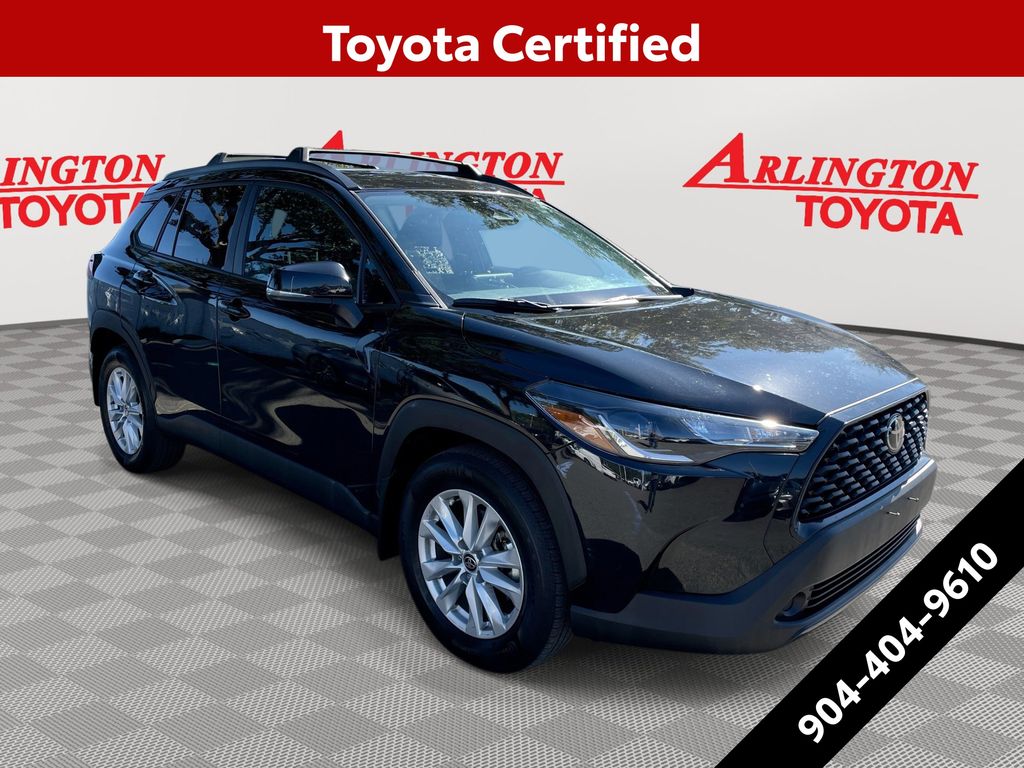 CERTIFIED BY CARFAX - ONE OWNER, REMAINDER OF FACTORY WARRANTY STILL APPLIES, BACKUP CAMERA, BLUETOOTH HANDS FREE, ANDROID AUTO, APPLE CARPLAY, LOW MILES, SUNROOF/MOONROOF, LANE DEPARTURE, ADAPTIVE CRUISE CONTROL, NON SMOKER, Corolla Cross LE AWD, 4D Sport Utility, 2.0L I4 PDI DOHC 16V LEV3-SULEV30 169hp, CVT, AWD, Jet Black, Black Cloth, ABS brakes, Electronic Stability Control, Fully automatic headlights, Low tire pressure warning, Steering wheel mounted audio controls, Turn signal indicator mirrors, 17" Alloy Wheels, 4-Wheel Disc Brakes, 4.014 Axle Ratio, 6 Speakers, Activity Mount (TMS), Air Conditioning, All Weather Floor/Cargo Liner (TMS), Alloy Wheel Locks (TMS), Alloy wheels, AM/FM radio: SiriusXM, Auto High-beam Headlights, Automatic temperature control, Brake assist, Bumpers: body-color, Cross Bars (TMS), Delay-off headlights, Door Edge Guard (TMS), Driver door bin, Driver vanity mirror, Dual front impact airbags, Dual front side impact airbags, Exterior Parking Camera Rear, Fabric Seat Trim, Four wheel independent suspension, Front anti-roll bar, Front Bucket Seats, Front Center Armrest, Front reading lights, Heated door mirrors, Illuminated entry, IMB & Alarm Anti-Theft System, Knee airbag, Leather steering wheel, Moonroof Package, Mudguards (TMS), Occupant sensing airbag, Outside temperature display, Overhead airbag, Panic alarm, Passenger door bin, Passenger vanity mirror, Power door mirrors, Power steering, Power windows, Radio data system, Radio: 8" Toyota Multimedia, Radio: Audio Plus w/9 JBL Speakers, Rear anti-roll bar, Rear side impact airbag, Rear window defroster, Rear window wiper, Remote keyless entry, Roof rack: rails only, Speed control, Split folding rear seat, Spoiler, Tachometer, Telescoping steering wheel, Tilt & Slide Moonroof, Tilt steering wheel, Tonneau Cover & Try Trim, Traction control, Trip computer, Variably intermittent wipers, Corolla Cross LE AWD, 4D Sport Utility, 2.0L I4 PDI DOHC 16V LEV3-SULEV30 169hp, CVT, AWD, Jet Black, Black Cloth, ABS brakes, Electronic Stability Control, Fully automatic headlights, Low tire pressure warning, Steering wheel mounted audio controls, Turn signal indicator mirrors.