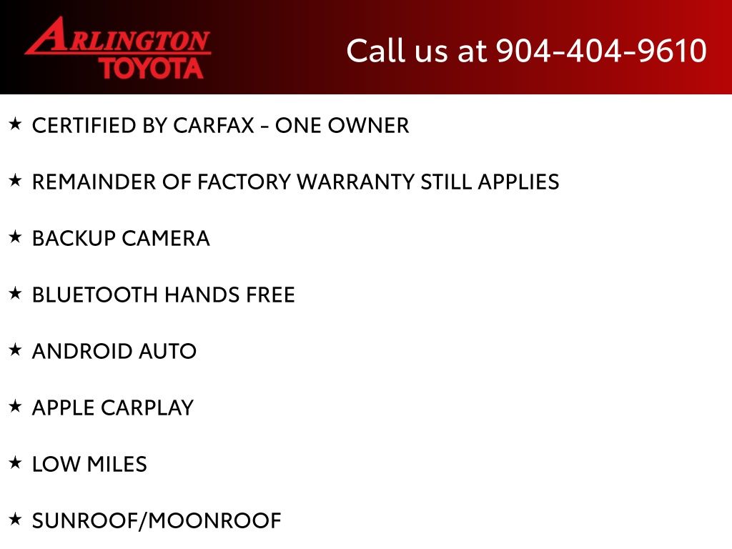 CALL FOR AVAILABILITY AND EXTRA OPTIONS ARLINGTON TOYOTA 904-721-3000.