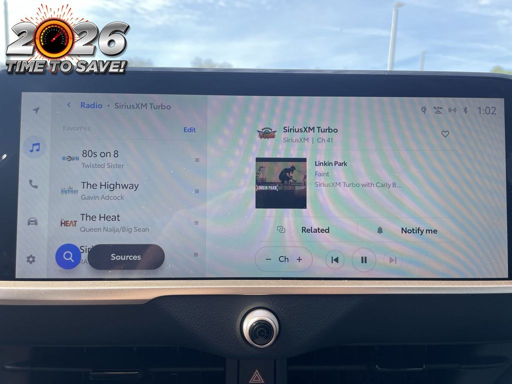 4-Wheel Disc Brakes, 6 Speakers, 8-way Adjustable Heated Front Seats, ABS brakes, Air Conditioning, Alloy wheels, AM/FM radio: SiriusXM, Apple CarPlay/Android Auto, Auto High-beam Headlights, Auto-dimming Rear-View mirror, Automatic temperature control, Brake assist, Bumpers: body-color, Compass, Delay-off headlights, Driver door bin, Driver vanity mirror, Dual front impact airbags, Dual front side impact airbags, Electronic Stability Control, Emergency communication system: Safety Connect (1-year trial), Exterior Parking Camera Rear, Four wheel independent suspension, Front anti-roll bar, Front Bucket Seats, Front Center Armrest, Front dual zone A/C, Front reading lights, Fully automatic headlights, Garage door transmitter: HomeLink, Heated door mirrors, Heated front seats, Illuminated entry, Knee airbag, Leather Shift Knob, Leather steering wheel, Low tire pressure warning, Navigation system: Dynamic Navigation (3-year trial), Occupant sensing airbag, Outside temperature display, Overhead airbag, Overhead console, Panic alarm, Passenger door bin, Passenger vanity mirror, Power door mirrors, Power driver seat, Power passenger seat, Power steering, Power windows, Radio data system, Radio: Premium Audio w/Navigation, Rear anti-roll bar, Rear reading lights, Rear seat center armrest, Rear side impact airbag, Rear window defroster, Remote keyless entry, Security system, SofTex Seat Trim, Speed control, Speed-sensing steering, Split folding rear seat, Steering wheel mounted audio controls, Tachometer, Telescoping steering wheel, Tilt steering wheel, Traction control, Trip computer, Turn signal indicator mirrors, Variably intermittent wipers, Wheels: 19" x 7" Multi-Spoke Machined 2-Tone Alloy.
