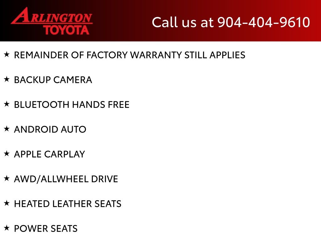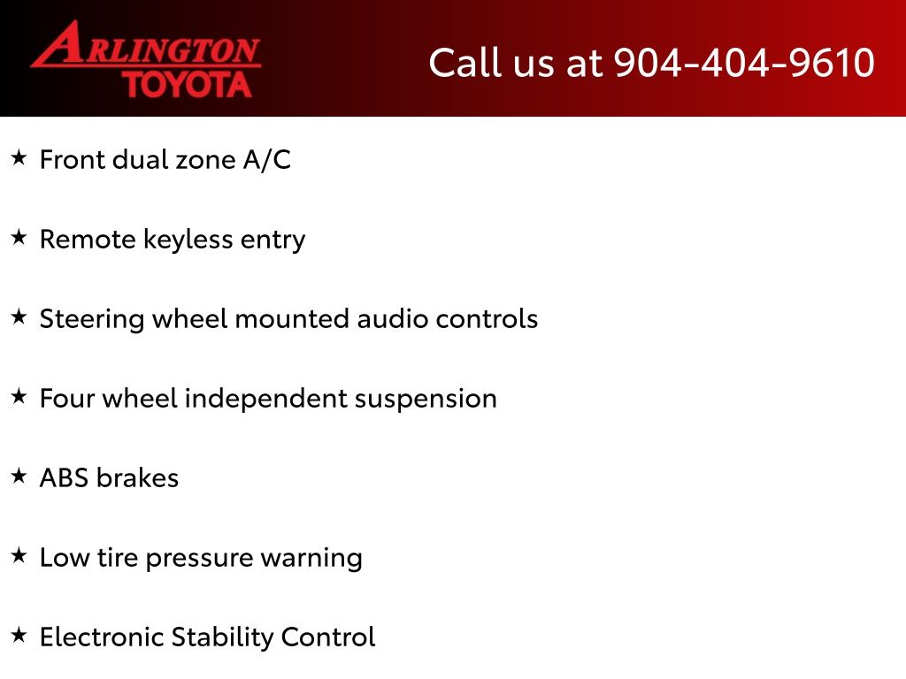 CALL FOR AVAILABILITY AND EXTRA OPTIONS ARLINGTON TOYOTA 904-721-3000.
