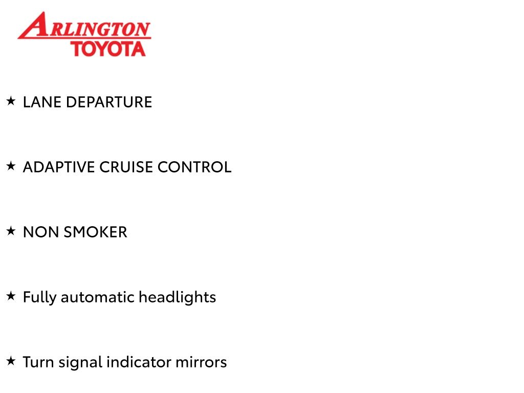 Prices do not include tax, tag, title, a pre-delivery service fee* of $894.00, an electronic registration filing fee* of $199.00 (*these charges represent costs and profits to the dealer for items such as inspecting, cleaning, and preparing documents related to the sale), and an Arlington Toyota Total Value Package of $1,889.00 (*these charges represent costs and profits to the dealer for items such as inspecting, cleaning, and preparing documents related to the sale). The final price is also subject to repair order reconditioning costs. Any price does not include dealer-installed accessories. All offers are mutually exclusive. All vehicles are subject to prior sale. See dealer for complete details.