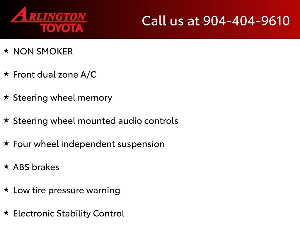 CALL FOR AVAILABILITY AND EXTRA OPTIONS ARLINGTON TOYOTA 904-721-3000.
