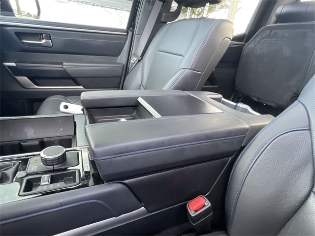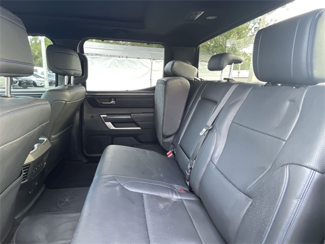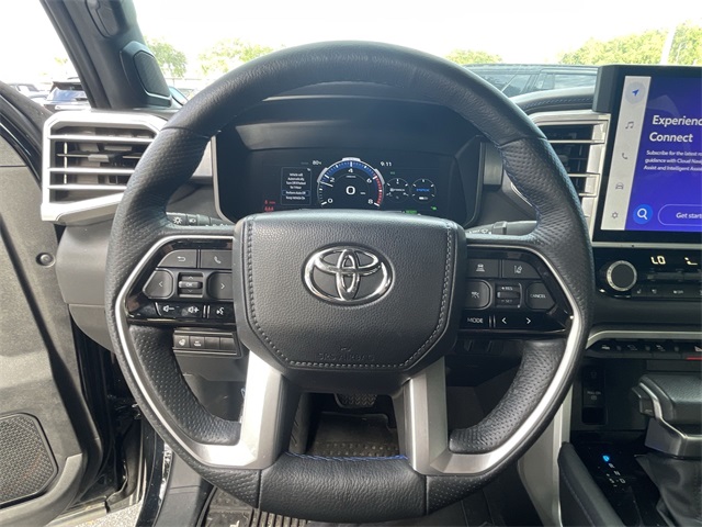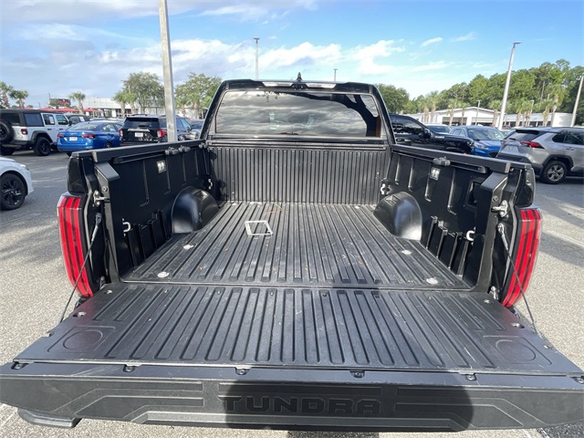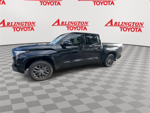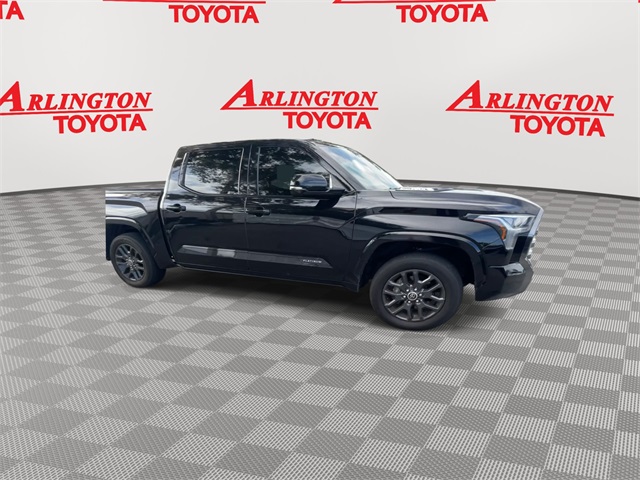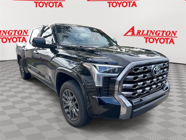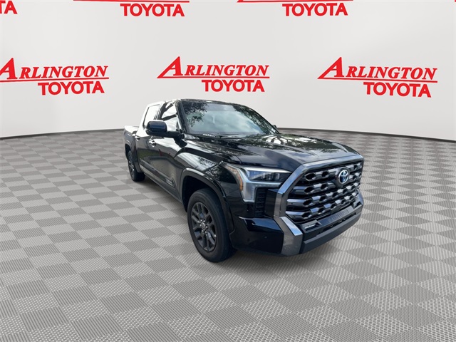 Odometer is 5064 miles below market average!CERTIFIED BY CARFAX - ONE OWNER, REMAINDER OF FACTORY WARRANTY STILL APPLIES, BACKUP CAMERA, BLUETOOTH HANDS FREE, ANDROID AUTO, APPLE CARPLAY, 4X4/FOUR WHEEL DRIVE, BED LINER, POWER SEATS, LOCAL TRADE IN, MEMORY SEATS, PANORAMIC MOONROOF, TOW PACKAGE, PUSH BUTTON START, LANE DEPARTURE, ADAPTIVE CRUISE CONTROL, NON SMOKER, Tundra Hybrid Platinum 4x4, 4D Crew Cab, 3.4L V6, 10-Speed Automatic, 4WD, Midnight Black Metallic, Black Leather, ABS brakes, Electronic Stability Control, Front dual zone A/C, Fully automatic headlights, Low tire pressure warning, Steering wheel memory, Steering wheel mounted audio controls, 12 Speakers, 3.31 Axle Ratio, 4-Wheel Disc Brakes, Advanced Package, Air Conditioning, All Weather Floor Liners (TMS), Alloy wheels, AM/FM radio: SiriusXM, Apple CarPlay/Android Auto, Auto High-beam Headlights, Auto-dimming door mirrors, Auto-dimming Rear-View mirror, Automatic temperature control, Brake assist, Bumpers: body-color, Color Head Up Display, Delay-off headlights, Driver door bin, Driver vanity mirror, Dual front impact airbags, Dual front side impact airbags, Front anti-roll bar, Front Bucket Seats, Front Center Armrest, Front fog lights, Front reading lights, Front wheel independent suspension, Garage door transmitter: HomeLink, Heated & Ventilated Front Bucket Seats, Heated door mirrors, Heated front seats, Heated rear seats, Heated steering wheel, Illuminated entry, Knee airbag, Leather Seat Trim, Leather Shift Knob, Load-Leveling Rear Height Control Air Suspension, Memory seat, Navigation System, Occupant sensing airbag, Outside temperature display, Overhead airbag, Overhead console, Panic alarm, Passenger door bin, Passenger vanity mirror, Power door mirrors, Power driver seat, Power moonroof, Power passenger seat, Power Running Boards, Power steering, Power windows, Radio data system, Radio: Premium Audio w/JBL, Rain sensing wipers, Rear reading lights, Rear seat center armrest, Rear step bumper, Rear window defroster, Remote keyless entry, Security system, Speed control, Speed-sensing steering, Split folding rear seat, Tachometer, Telescoping steering wheel, Tilt steering wheel, Traction control, Trip computer, Turn signal indicator mirrors, Variably intermittent wipers, Ventilated front seats, Ventilated rear seats, Voltmeter, Wheels: 20" x 8" Dark-Painted Alloy, Tundra Hybrid Platinum 4x4, 4D Crew Cab, 3.4L V6, 10-Speed Automatic, 4WD, Midnight Black Metallic, Black Leather, ABS brakes, Electronic Stability Control, Front dual zone A/C, Fully automatic headlights, Low tire pressure warning, Steering wheel memory, Steering wheel mounted audio controls.CALL FOR AVAILABILITY AND EXTRA OPTIONS ARLINGTON TOYOTA 904-721-3000.