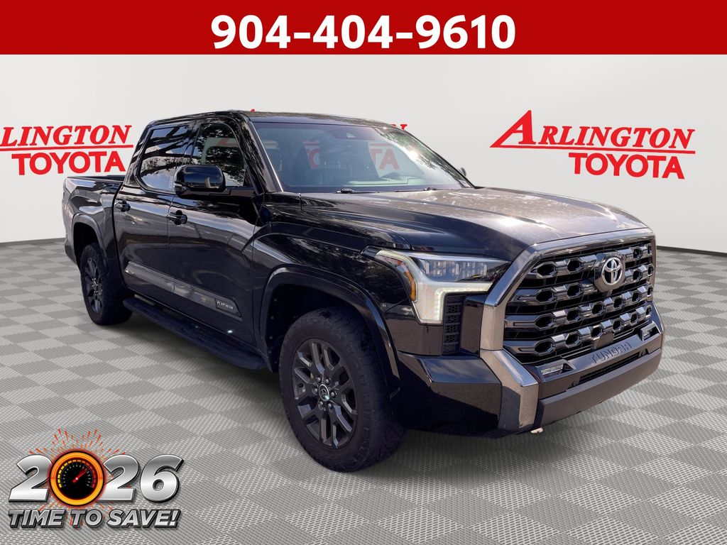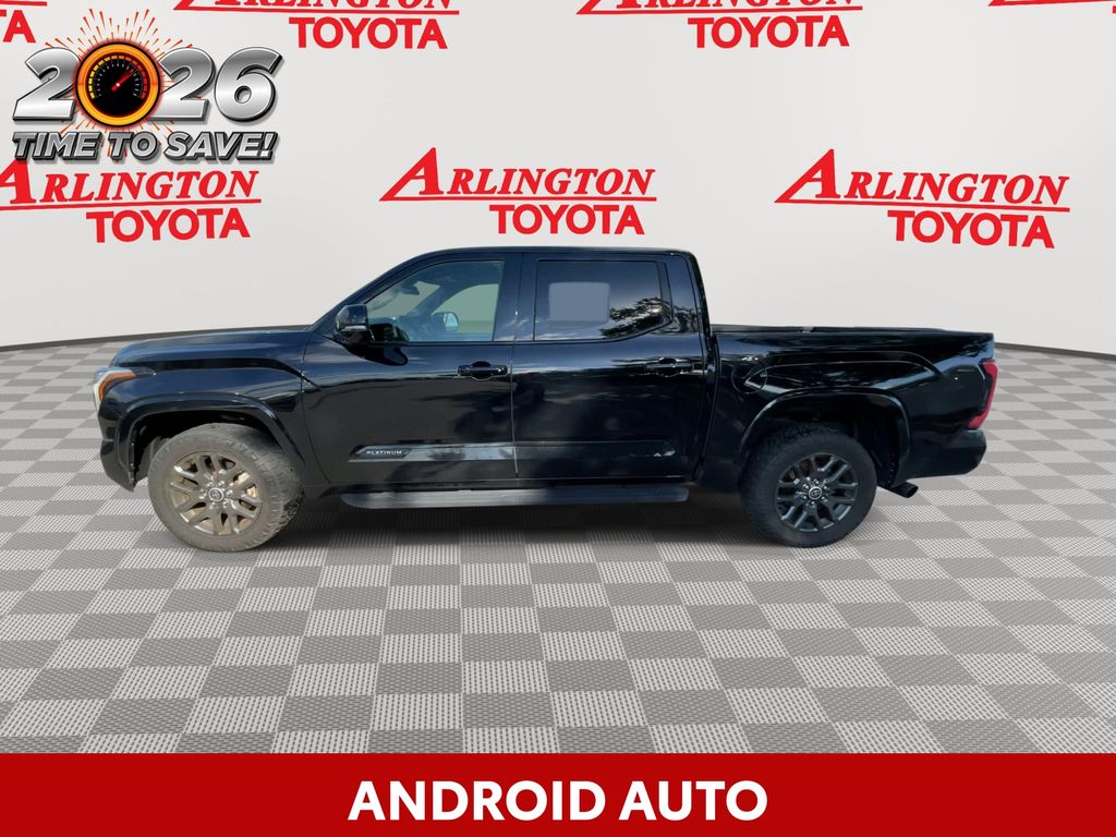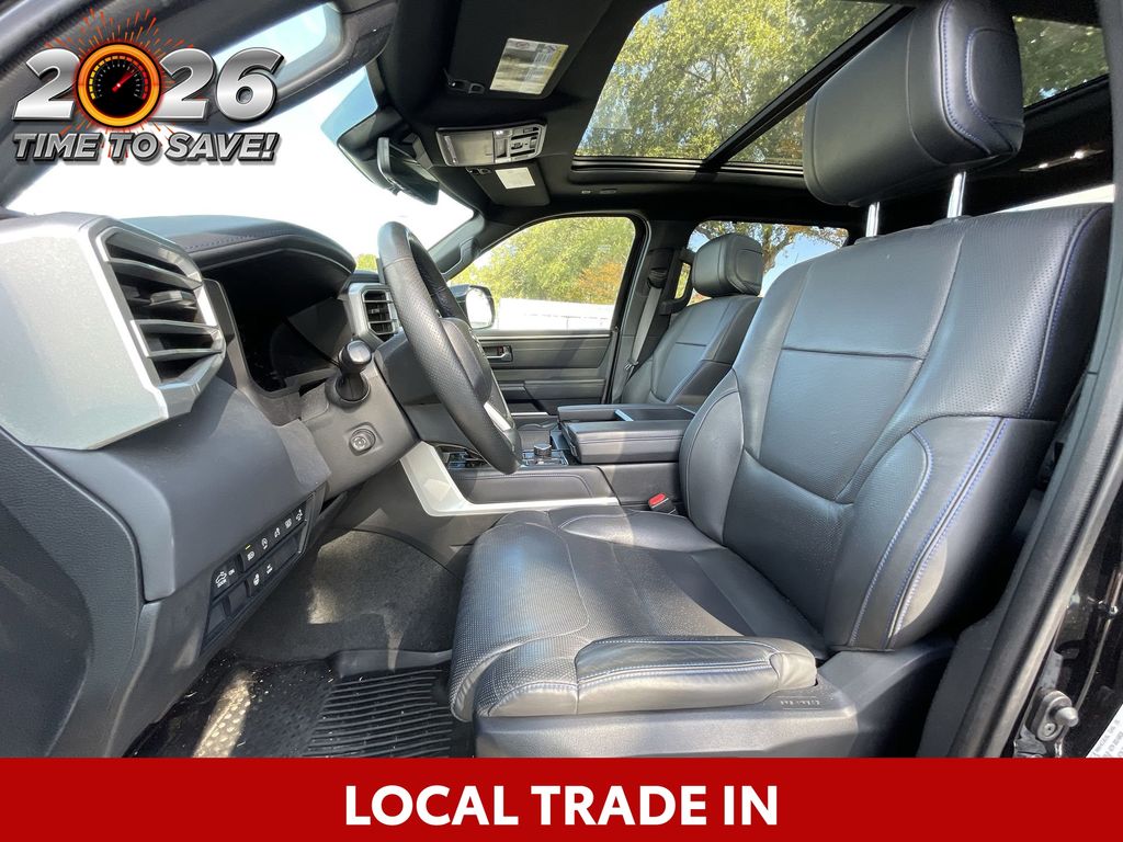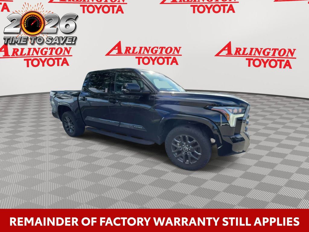 REMAINDER OF FACTORY WARRANTY STILL APPLIES, BACKUP CAMERA, BLUETOOTH HANDS FREE, ANDROID AUTO, APPLE CARPLAY, 4X4/FOUR WHEEL DRIVE, BED LINER, HEATED LEATHER SEATS, POWER SEATS, LOCAL TRADE IN, MEMORY SEATS, SUNROOF/MOONROOF, RUNNING BOARDS, TOW PACKAGE, PUSH BUTTON START, LANE DEPARTURE, ADAPTIVE CRUISE CONTROL, NON SMOKER, Tundra Platinum 4X4, 4D CrewMax, 3.4L V6, 10-Speed Automatic, 4WD, Midnight Black Metallic, Black Leather, ABS brakes, Electronic Stability Control, Front dual zone A/C, Fully automatic headlights, Low tire pressure warning, Steering wheel memory, Steering wheel mounted audio controls, Turn signal indicator mirrors, 10-Way Pwr Adj Heated and Ventilated Front Seats, 12 Speakers, 3.31 Axle Ratio, 4-Wheel Disc Brakes, Air Conditioning, Alloy wheels, AM/FM radio: SiriusXM, Apple CarPlay/Android Auto, Auto High-beam Headlights, Auto-dimming door mirrors, Auto-dimming Rear-View mirror, Automatic temperature control, Brake assist, Bumpers: body-color, Delay-off headlights, Driver door bin, Driver vanity mirror, Dual front impact airbags, Dual front side impact airbags, Front anti-roll bar, Front Bucket Seats, Front Center Armrest, Front fog lights, Front reading lights, Front wheel independent suspension, Garage door transmitter: HomeLink, Heated door mirrors, Heated front seats, Heated rear seats, Heated steering wheel, Illuminated entry, Knee airbag, Leather Seat Trim, Leather Shift Knob, Memory seat, Navigation System, Occupant sensing airbag, Outside temperature display, Overhead airbag, Overhead console, Panic alarm, Passenger door bin, Passenger vanity mirror, Power door mirrors, Power driver seat, Power moonroof, Power passenger seat, Power steering, Power windows, Radio data system, Radio: Audio Multimedia System, Rain sensing wipers, Rear reading lights, Rear seat center armrest, Rear step bumper, Rear window defroster, Remote keyless entry, Safety Connect, Security system, Speed control, Speed-sensing steering, Split folding rear seat, Tachometer, Telescoping steering wheel, Tilt steering wheel, Traction control, Trip computer, Variably intermittent wipers, Ventilated front seats, Ventilated rear seats, Voltmeter, Wheels: 20" Dark Painted Alloy, Tundra Platinum 4X4, 4D CrewMax, 3.4L V6, 10-Speed Automatic, 4WD, Midnight Black Metallic, Black Leather, ABS brakes, Electronic Stability Control, Front dual zone A/C, Fully automatic headlights, Low tire pressure warning, Steering wheel memory, Steering wheel mounted audio controls, Turn signal indicator mirrors.