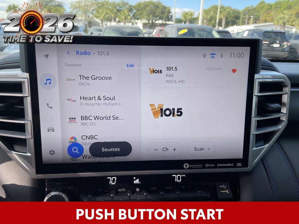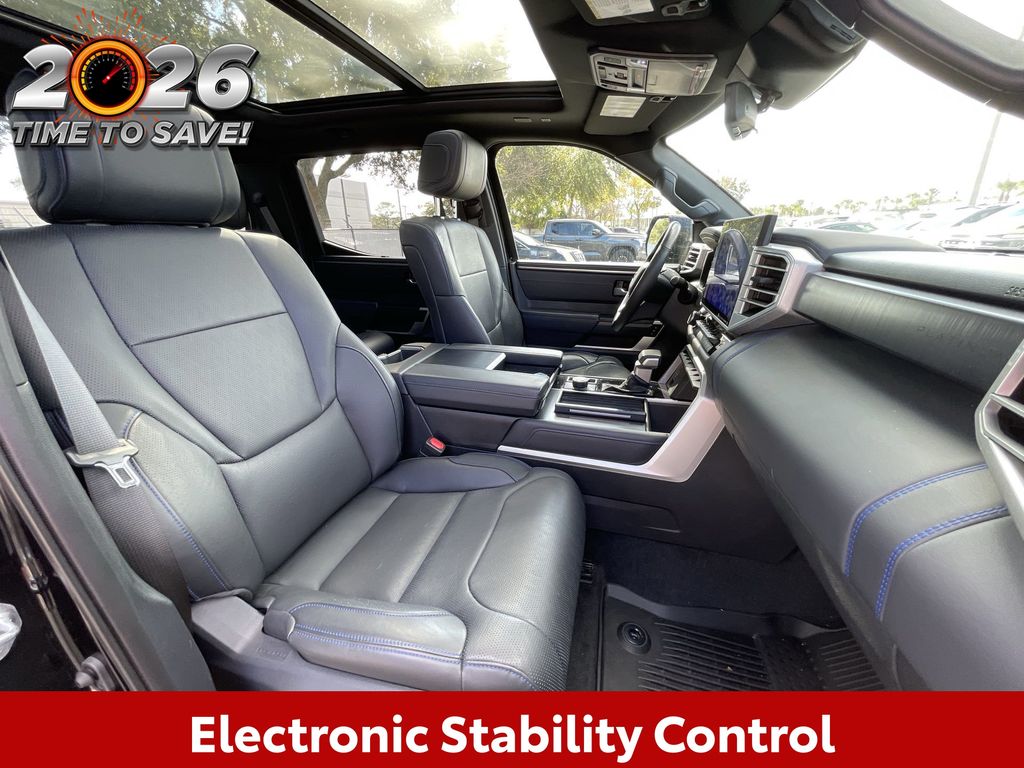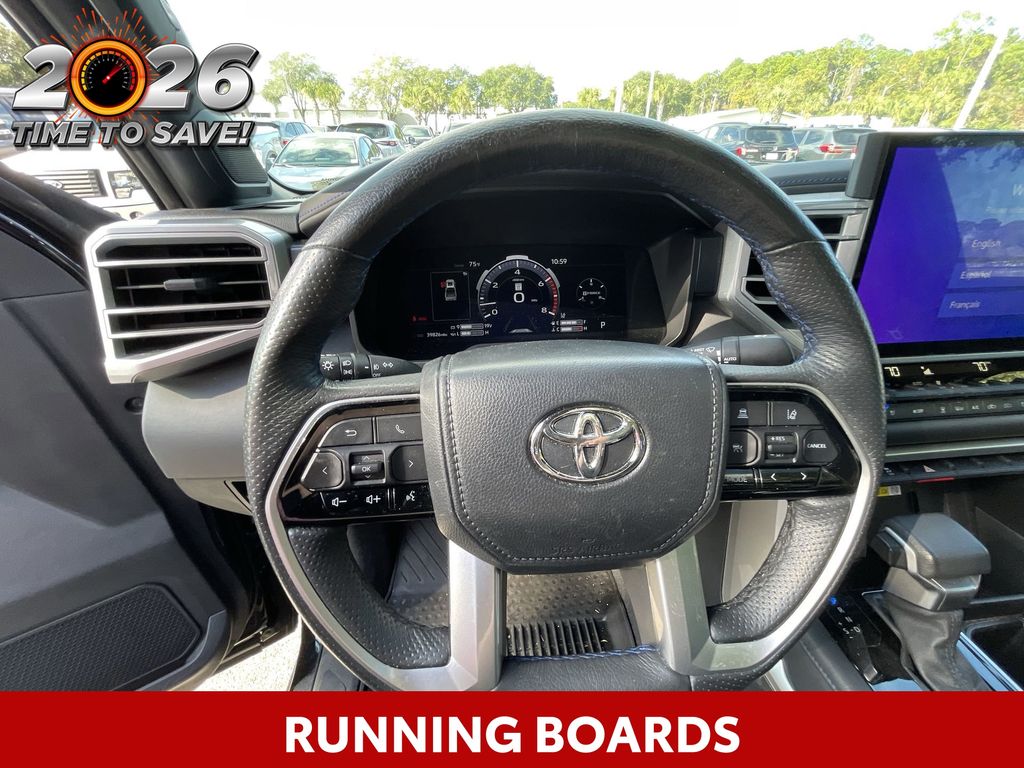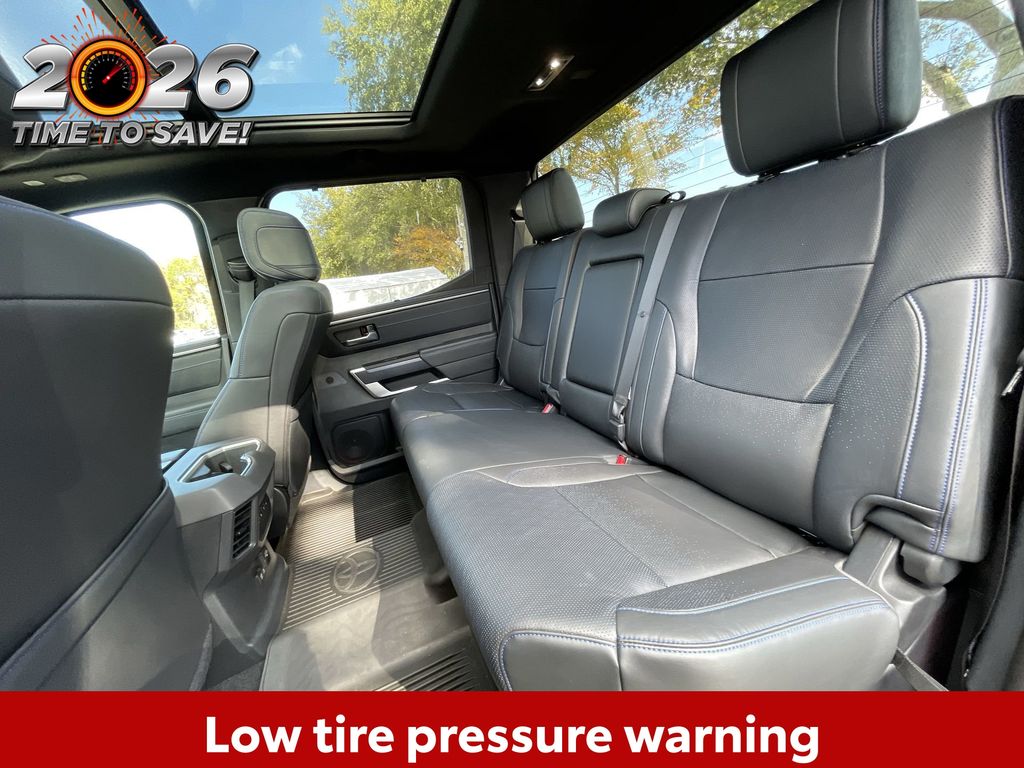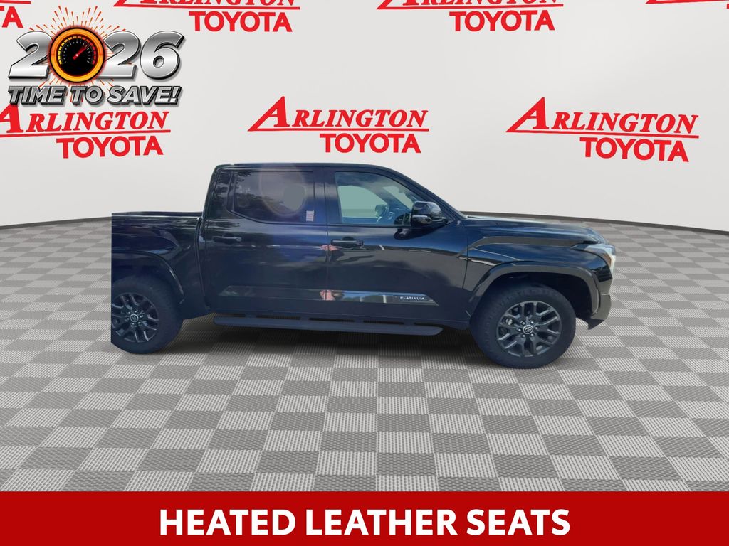 REMAINDER OF FACTORY WARRANTY STILL APPLIES, BACKUP CAMERA, BLUETOOTH HANDS FREE, ANDROID AUTO, APPLE CARPLAY, 4X4/FOUR WHEEL DRIVE, BED LINER, HEATED LEATHER SEATS, POWER SEATS, LOCAL TRADE IN, MEMORY SEATS, SUNROOF/MOONROOF, RUNNING BOARDS, TOW PACKAGE, PUSH BUTTON START, LANE DEPARTURE, ADAPTIVE CRUISE CONTROL, NON SMOKER, Tundra Platinum 4X4, 4D CrewMax, 3.4L V6, 10-Speed Automatic, 4WD, Midnight Black Metallic, Black Leather, ABS brakes, Electronic Stability Control, Front dual zone A/C, Fully automatic headlights, Low tire pressure warning, Steering wheel memory, Steering wheel mounted audio controls, Turn signal indicator mirrors, 10-Way Pwr Adj Heated and Ventilated Front Seats, 12 Speakers, 3.31 Axle Ratio, 4-Wheel Disc Brakes, Air Conditioning, Alloy wheels, AM/FM radio: SiriusXM, Apple CarPlay/Android Auto, Auto High-beam Headlights, Auto-dimming door mirrors, Auto-dimming Rear-View mirror, Automatic temperature control, Brake assist, Bumpers: body-color, Delay-off headlights, Driver door bin, Driver vanity mirror, Dual front impact airbags, Dual front side impact airbags, Front anti-roll bar, Front Bucket Seats, Front Center Armrest, Front fog lights, Front reading lights, Front wheel independent suspension, Garage door transmitter: HomeLink, Heated door mirrors, Heated front seats, Heated rear seats, Heated steering wheel, Illuminated entry, Knee airbag, Leather Seat Trim, Leather Shift Knob, Memory seat, Navigation System, Occupant sensing airbag, Outside temperature display, Overhead airbag, Overhead console, Panic alarm, Passenger door bin, Passenger vanity mirror, Power door mirrors, Power driver seat, Power moonroof, Power passenger seat, Power steering, Power windows, Radio data system, Radio: Audio Multimedia System, Rain sensing wipers, Rear reading lights, Rear seat center armrest, Rear step bumper, Rear window defroster, Remote keyless entry, Safety Connect, Security system, Speed control, Speed-sensing steering, Split folding rear seat, Tachometer, Telescoping steering wheel, Tilt steering wheel, Traction control, Trip computer, Variably intermittent wipers, Ventilated front seats, Ventilated rear seats, Voltmeter, Wheels: 20" Dark Painted Alloy, Tundra Platinum 4X4, 4D CrewMax, 3.4L V6, 10-Speed Automatic, 4WD, Midnight Black Metallic, Black Leather, ABS brakes, Electronic Stability Control, Front dual zone A/C, Fully automatic headlights, Low tire pressure warning, Steering wheel memory, Steering wheel mounted audio controls, Turn signal indicator mirrors.