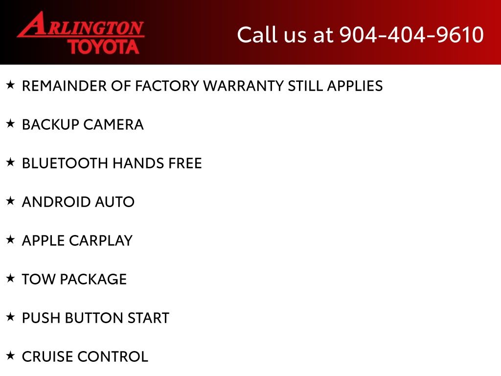 CALL FOR AVAILABILITY AND EXTRA OPTIONS ARLINGTON TOYOTA 904-721-3000.