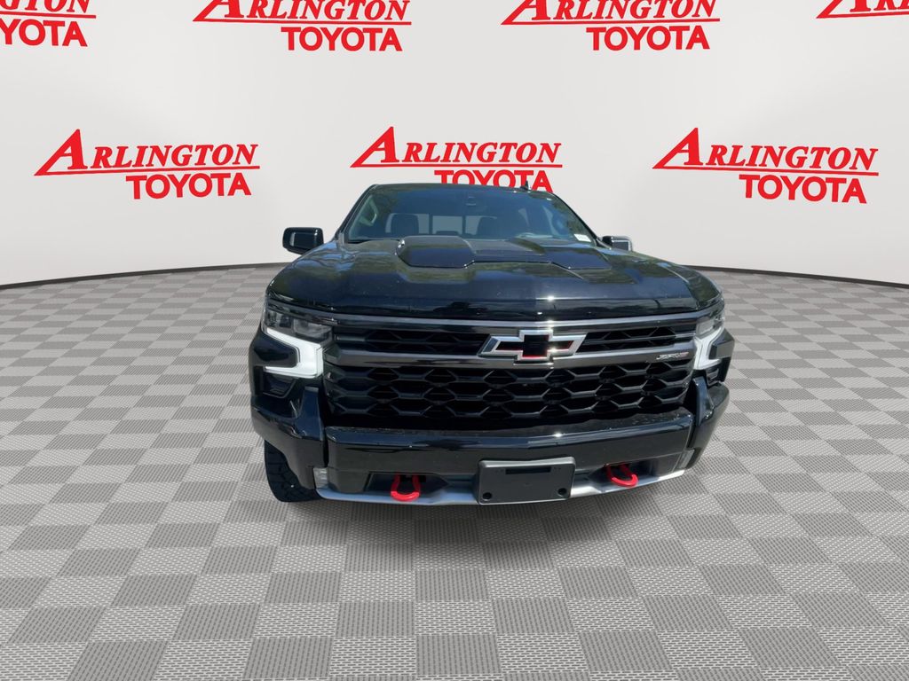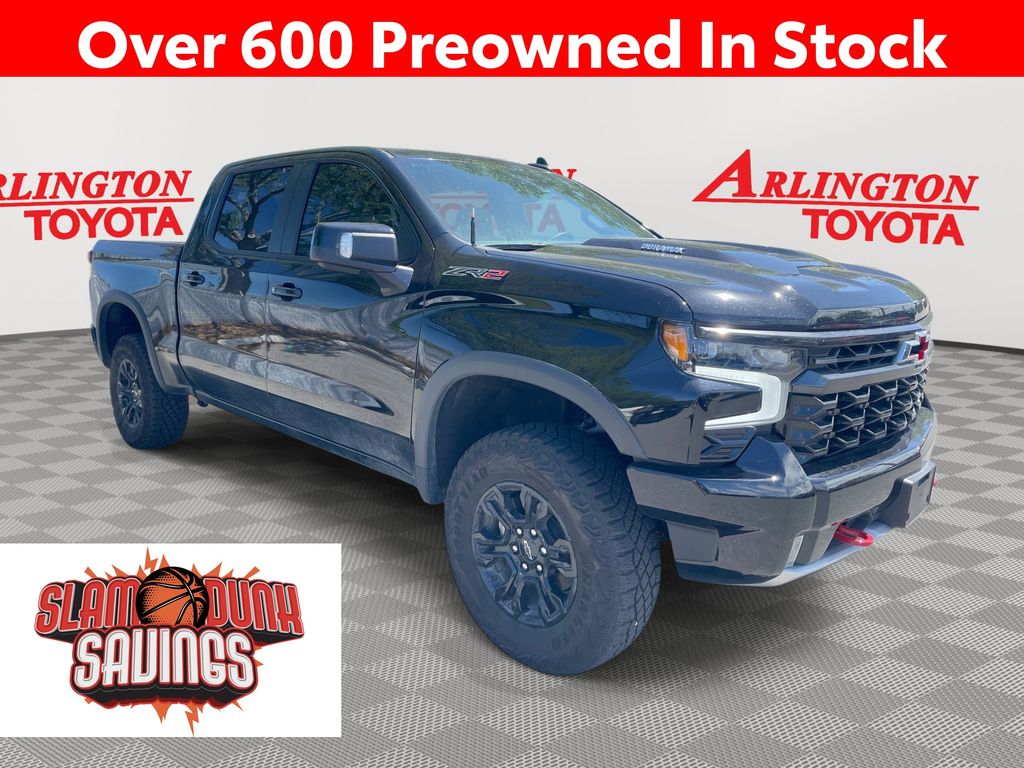 CERTIFIED BY CARFAX - ONE OWNER, REMAINDER OF FACTORY WARRANTY STILL APPLIES, BACKUP CAMERA, BLUETOOTH HANDS FREE, ANDROID AUTO, APPLE CARPLAY, 4X4/FOUR WHEEL DRIVE, POWER SEATS, MEMORY SEATS, SUNROOF/MOONROOF, PUSH BUTTON START, CRUISE CONTROL, NON SMOKER, Silverado 1500 ZR2 4X4, 4D Crew Cab, 3.0L I6, 10-Speed Automatic, 4WD, Black, Jet Black/Graystone Leather, ABS brakes, Front dual zone A/C, Fully automatic headlights, Low tire pressure warning, Remote Vehicle Starter System, Steering wheel mounted audio controls, 10-Way Power Driver Seat w/Lumbar, 10-Way Power Passenger Seat Adjuster w/Lumbar, 12.3" Multicolor Reconfigurable Digital Display, 120-Volt Bed Mounted Power Outlet, 120-Volt Interior Power Outlet, 15" Diagonal Multicolor Head-Up Display, 2 USB Data Ports, 220 Amp Alternator, 2nd Row Heated Outboard Seats, 3.23 Rear Axle Ratio, 4-Wheel Disc Brakes, 7 Speakers, 850 Cold-Cranking Amps Heavy-Duty Battery, Adaptive Cruise Control, Air Conditioning, All-Weather Floor Liner (LPO), Alloy wheels, AM/FM radio: SiriusXM with 360L, Auto High-beam Headlights, Auto-dimming door mirrors, Auto-Dimming Inside Rear-View Mirror, Auto-dimming Rear-View mirror, Automatic Emergency Braking, Automatic temperature control, Bed View Camera, Block heater, Bluetooth® For Phone, Brake assist, Chevrolet Connected Access Capable, Chevytec Spray-On Black Bedliner, Color-Keyed Carpeting Floor Covering, Compass, Deep-Tinted Glass, Delay-off headlights, Driver door bin, Driver Memory, Driver vanity mirror, Dual Exhaust, Dual front impact airbags, Dual front side impact airbags, Dual Rear USB Ports (Charge Only), Electric Rear-Window Defogger, Electrical Steering Column Lock, Electronic Cruise Control, Electronic Stability Control, Electronic Transmission Range Selector Shifter, Engine Block Heater, EZ Lift Power Lock & Release Tailgate, Floor Mounted Center Console, Following Distance Indicator, Forward Collision Alert, Front anti-roll bar, Front Bucket Seats, Front Center Armrest, Front fog lights, Front LED Fog Lamps, Front License Plate Kit, Front Pedestrian Braking, Front Rain-Sensing Wipers, Front reading lights, Garage door transmitter, HD Surround Vision, Heated door mirrors, Heated Driver & Front Outboard Passenger Seats, Heated front seats, Heated rear seats, Heated Steering Wheel, Heated steering wheel, Heavy-Duty Air Filter, High Gloss Black Mirror Caps, Hill Descent Control, Hitch Guidance, Hitch Guidance w/Hitch View, Illuminated entry, In-Vehicle Trailering System App, Integrated Trailer Brake Controller, IntelliBeam Automatic High Beam On/Off, Keyless Open & Start, Lane Keep Assist w/Lane Departure Warning, LED Cargo Area Lighting, Manual Tilt/Telescoping Steering Column, Memory seat, Multi-Flex Tailgate, Occupant sensing airbag, OnStar & Chevrolet Connected Services Capable, Outside Heated Power-Adjustable Mirrors, Outside temperature display, Overhead airbag, Overhead console, Panic alarm, Passenger door bin, Passenger vanity mirror, Perforated Leather Seat Trim, Performance Red Recovery Hooks, Perimeter Lighting, Power door mirrors, Power driver seat, Power Front Passenger Windows w/Express Up/Down, Power Front Windows w/Driver Express Up/Down, Power passenger seat, Power Rear Windows w/Express Down, Power Sliding Rear Window w/Rear Defogger, Power steering, Power Sunroof, Power Tilt & Telescoping Steering Column, Power windows, Preferred Equipment Group 3LT, Premium audio system: Chevrolet Infotainment 3 Premium, Premium Bose 7-Speaker Sound System, Radio data system, Radio: Chevrolet Infotainment 3 Premium System, Rain sensing wipers, Rear Camera Mirror, Rear Cross Traffic Braking, Rear Park Assist, Rear Pedestrian Alert, Rear reading lights, Rear seat center armrest, Rear step bumper, Rear Wheelhouse Liners, Rear window defroster, Remote keyless entry, Safety Alert Seat, Security system, SiriusXM w/360L, Speed control, Speed-sensing steering, Split fold