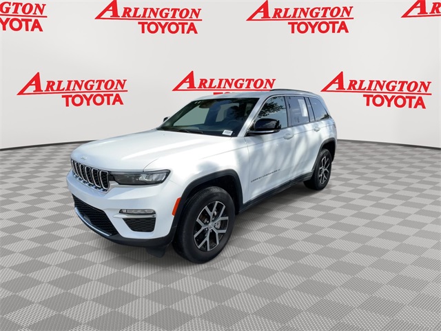 Recent Arrival!CERTIFIED BY CARFAX - ONE OWNER, REMAINDER OF FACTORY WARRANTY STILL APPLIES, BACKUP CAMERA, BLUETOOTH HANDS FREE, ANDROID AUTO, APPLE CARPLAY, 4X4/FOUR WHEEL DRIVE, POWER SEATS, MEMORY SEATS, POWER LIFTGATE, PUSH BUTTON START, CRUISE CONTROL, NON SMOKER, Grand Cherokee Limited 4X4, 4D Sport Utility, 3.6L V6 24V VVT, 8-Speed Automatic, 4WD, Bright White Clearcoat, Global Black Artificial Leather, ABS brakes, Electronic Stability Control, Four wheel independent suspension, Front dual zone A/C, Fully automatic headlights, Low tire pressure warning, Remote keyless entry, Steering wheel mounted audio controls, 3.45 Rear Axle Ratio, 4-Wheel Disc Brakes, 6 Speakers, Active Noise Control System, Air Conditioning, Alloy wheels, AM/FM radio: SiriusXM with 360L, Anti-whiplash front head restraints, Audio memory, Auto High-beam Headlights, Automatic temperature control, Brake assist, Bumpers: body-color, Capri Leatherette Seats, Compass, Delay-off headlights, Driver door bin, Driver vanity mirror, Dual front impact airbags, Dual front side impact airbags, Emergency communication system, Front anti-roll bar, Front Bucket Seats, Front Center Armrest w/Storage, Front fog lights, Front License Plate Bracket, Front reading lights, Garage door transmitter, Heated door mirrors, Heated front seats, Heated rear seats, Heated steering wheel, Illuminated entry, Knee airbag, Memory seat, Navigation System, Normal Duty Suspension, Occupant sensing airbag, Outside temperature display, Overhead airbag, Overhead console, Panic alarm, ParkView Rear Back-Up Camera, Passenger door bin, Passenger vanity mirror, Power door mirrors, Power driver seat, Power Liftgate, Power passenger seat, Power steering, Power windows, Quick Order Package 23E, Radio data system, Radio: Uconnect 5 Nav w/10.1" Display, Rear anti-roll bar, Rear reading lights, Rear window defroster, Rear window wiper, Security system, Speed control, Speed-Sensitive Wipers, Split folding rear seat, Spoiler, Tachometer, Telescoping steering wheel, Tilt steering wheel, Traction control, Trip computer, Turn signal indicator mirrors, Variably intermittent wipers, Voltmeter, Wheels: 18" x 8" Polished/Painted Aluminum, Grand Cherokee Limited 4X4, 4D Sport Utility, 3.6L V6 24V VVT, 8-Speed Automatic, 4WD, Bright White Clearcoat, Global Black Artificial Leather, ABS brakes, Electronic Stability Control, Four wheel independent suspension, Front dual zone A/C, Fully automatic headlights, Low tire pressure warning, Remote keyless entry, Steering wheel mounted audio controls.CALL FOR AVAILABILITY AND EXTRA OPTIONS ARLINGTON TOYOTA 904-721-3000.