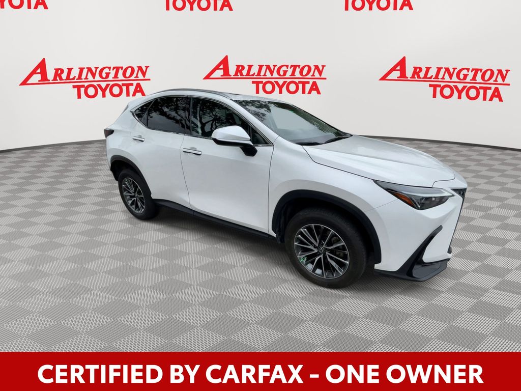 CERTIFIED BY CARFAX - ONE OWNER, REMAINDER OF FACTORY WARRANTY STILL APPLIES, BACKUP CAMERA, BLUETOOTH HANDS FREE, ANDROID AUTO, APPLE CARPLAY, AWD/ALLWHEEL DRIVE, POWER SEATS, POWER LIFTGATE, PUSH BUTTON START, LANE DEPARTURE, ADAPTIVE CRUISE CONTROL, NON SMOKER, NX 350h Base AWD, 4D Sport Utility, 2.5L I4 DOHC 16V, eCVT, AWD, Eminent White Pearl, Black w/NuLuxe Seat Trim, ABS brakes, Electronic Stability Control, Four wheel independent suspension, Front dual zone A/C, Fully automatic headlights, Low tire pressure warning, Remote keyless entry, Steering wheel mounted audio controls, Turn signal indicator mirrors, 10 Speakers, 18" Wheels, 4-Wheel Disc Brakes, Air Conditioning, Alloy wheels, AM/FM radio: SiriusXM, Anti-whiplash front head restraints, Auto High-beam Headlights, Auto Rain-Sensing Windshield Wipers, Auto-dimming door mirrors, Auto-dimming Rear-View mirror, Automatic temperature control, Axle Ratio: 10.781, Brake assist, Bumpers: body-color, Cold Area Package, Delay-off headlights, Driver door bin, Driver vanity mirror, Dual front impact airbags, Dual front side impact airbags, Exterior Parking Camera Rear, Front anti-roll bar, Front Bucket Seats, Front Center Armrest, Front fog lights, Front reading lights, Garage door transmitter: HomeLink, Heated door mirrors, Heated Front Bucket Seats, Heated front seats, Heated Leather Steering Wheel w/Paddle, Illuminated entry, Knee airbag, Leather Shift Knob, Leather steering wheel, Navigation system: Drive Connect Cloud Navigation (subscription required), NuLuxe Seat Trim, Occupant sensing airbag, Outside temperature display, Overhead airbag, Overhead console, Panic alarm, Passenger door bin, Passenger vanity mirror, Power Back Door, Power door mirrors, Power driver seat, Power passenger seat, Power steering, Power Tilt & Slide Moonroof/Sunroof, Power windows, Radio data system, Rear anti-roll bar, Rear reading lights, Rear seat center armrest, Rear window defroster, Rear window wiper, Security system, Speed control, Speed-sensing steering, Split folding rear seat, Spoiler, Tachometer, Telescoping steering wheel, Tilt steering wheel, Towing Package (2000 lbs), Traction control, Trip computer, Variably intermittent wipers, Wiper & Window Deicer, Wireless Smart Door Lock, NX 350h Base AWD, 4D Sport Utility, 2.5L I4 DOHC 16V, eCVT, AWD, Eminent White Pearl, Black w/NuLuxe Seat Trim, ABS brakes, Electronic Stability Control, Four wheel independent suspension, Front dual zone A/C, Fully automatic headlights, Low tire pressure warning, Remote keyless entry, Steering wheel mounted audio controls, Turn signal indicator mirrors.