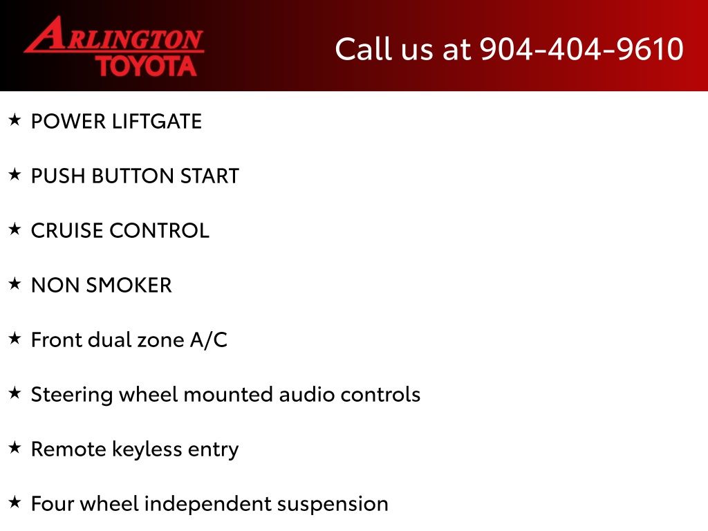 CALL FOR AVAILABILITY AND EXTRA OPTIONS ARLINGTON TOYOTA 904-721-3000.