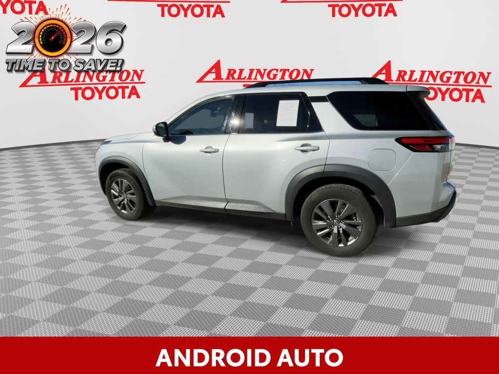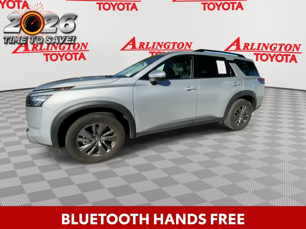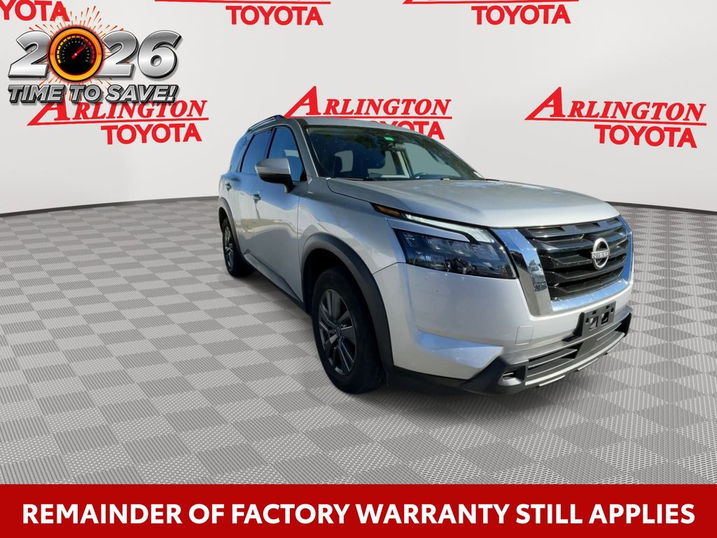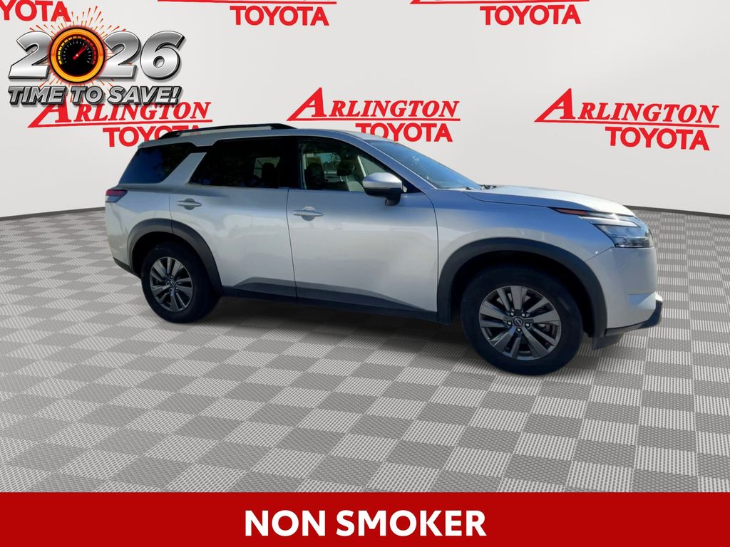 REMAINDER OF FACTORY WARRANTY STILL APPLIES, BACKUP CAMERA, BLUETOOTH HANDS FREE, ANDROID AUTO, APPLE CARPLAY, POWER SEATS, CRUISE CONTROL, NON SMOKER, Pathfinder SV, 4D Sport Utility, 3.5L V6 DOHC, 9-Speed Automatic, FWD, Brilliant Silver Metallic, Charcoal Cloth, ABS brakes, Electronic Stability Control, Four wheel independent suspension, Front dual zone A/C, Fully automatic headlights, Low tire pressure warning, Remote keyless entry, Steering wheel mounted audio controls, Turn signal indicator mirrors, 3rd row seats: bench, 4-Wheel Disc Brakes, 6 Speakers, Air Conditioning, Alloy wheels, AM/FM radio: SiriusXM, Auto High-beam Headlights, Automatic temperature control, Axle Ratio: 4.334, Bench Seat Carpeted Floor Mats (Set of 4), Brake assist, Bumpers: body-color, Cloth Seating Surfaces, Delay-off headlights, Driver door bin, Driver vanity mirror, Dual front impact airbags, Dual front side impact airbags, Emergency communication system, Front anti-roll bar, Front Bucket Seats, Front Center Armrest, Front reading lights, Heated door mirrors, Heated Front Bucket Seats, Heated front seats, Illuminated entry, Knee airbag, Leather steering wheel, NissanConnect featuring Apple CarPlay and Android Auto, Occupant sensing airbag, Outside temperature display, Overhead airbag, Overhead console, Panic alarm, Passenger door bin, Passenger vanity mirror, Power door mirrors, Power driver seat, Power steering, Power windows, Radio data system, Radio: AM/FM Audio System w/NissanConnect, Rear air conditioning, Rear anti-roll bar, Rear Parking Sensors, Rear reading lights, Rear seat center armrest, Rear side impact airbag, Rear window defroster, Rear window wiper, Reclining 3rd row seat, Security system, Speed control, Speed-sensing steering, Split folding rear seat, Spoiler, Tachometer, Telescoping steering wheel, Tilt steering wheel, Traction control, Trip computer, Variably intermittent wipers, Wheels: 18" x 8J Painted Alloy, Pathfinder SV, 4D Sport Utility, 3.5L V6 DOHC, 9-Speed Automatic, FWD, Brilliant Silver Metallic, Charcoal Cloth, ABS brakes, Electronic Stability Control, Four wheel independent suspension, Front dual zone A/C, Fully automatic headlights, Low tire pressure warning, Remote keyless entry, Steering wheel mounted audio controls, Turn signal indicator mirrors.