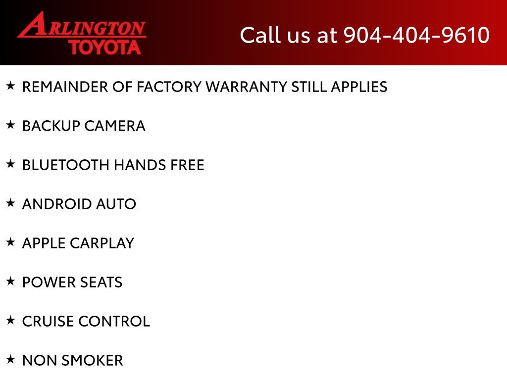 CALL FOR AVAILABILITY AND EXTRA OPTIONS ARLINGTON TOYOTA 904-721-3000.