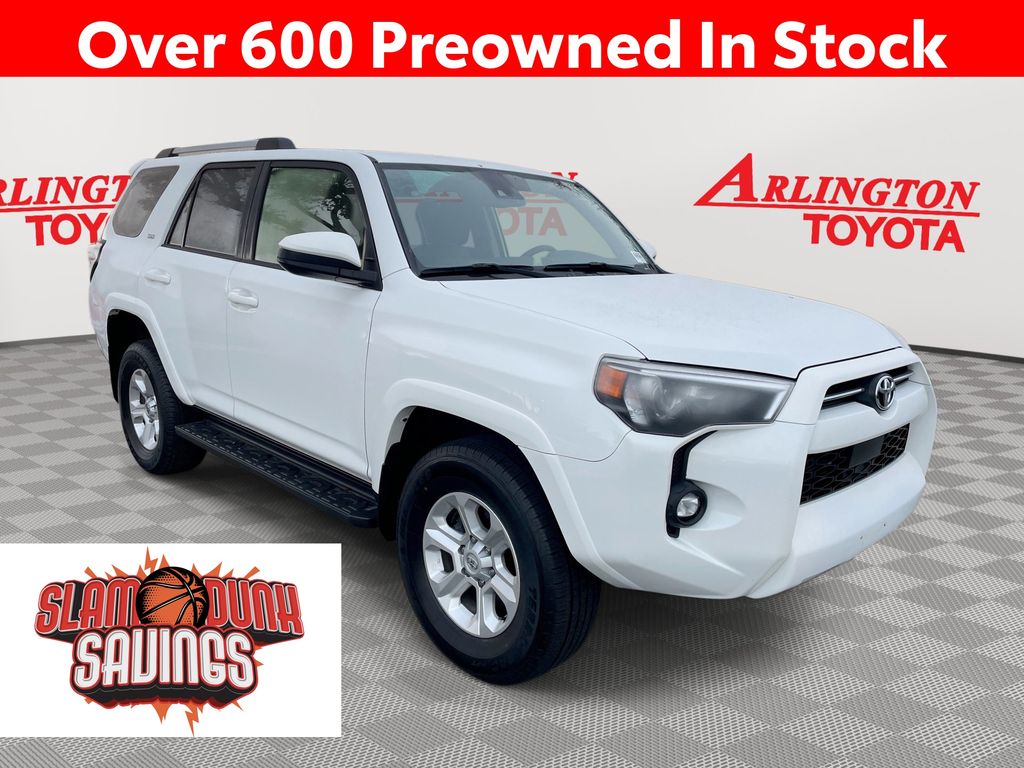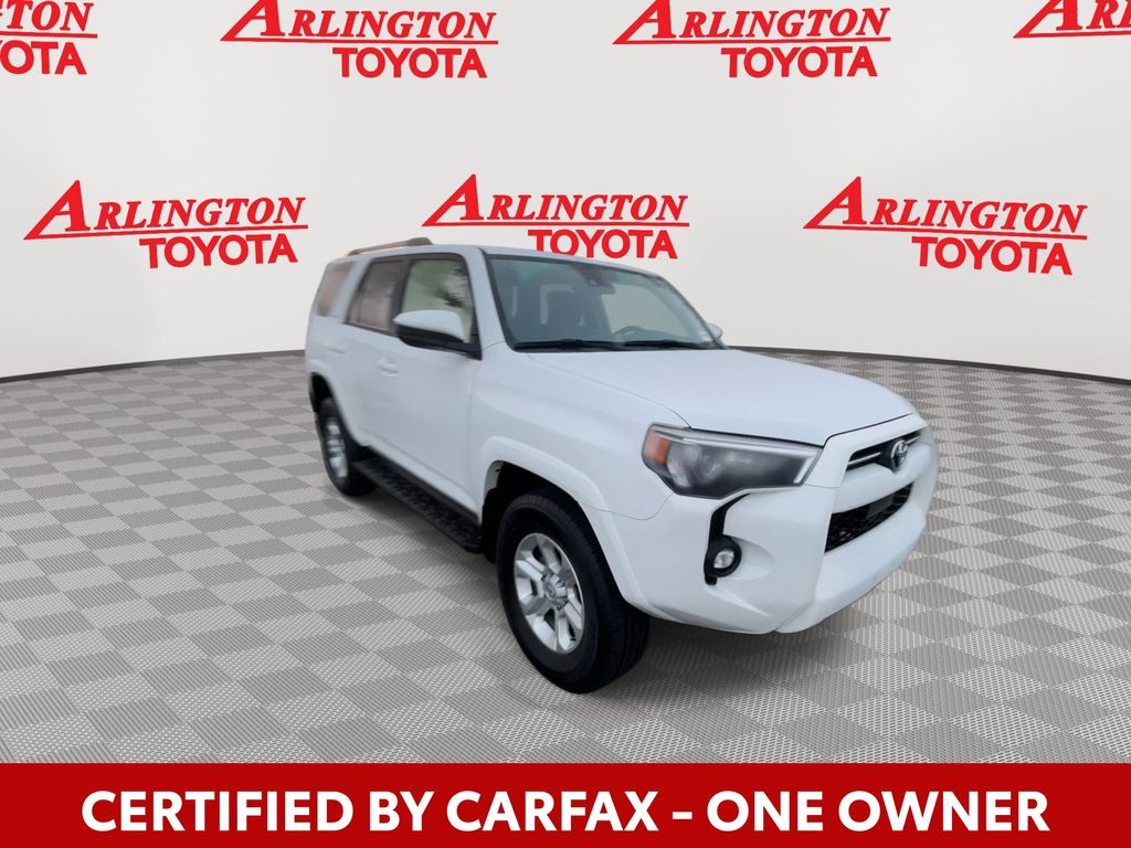 CERTIFIED BY CARFAX - ONE OWNER, REMAINDER OF FACTORY WARRANTY STILL APPLIES, BACKUP CAMERA, BLUETOOTH HANDS FREE, ANDROID AUTO, APPLE CARPLAY, 4X4/FOUR WHEEL DRIVE, POWER SEATS, TOW PACKAGE, LANE DEPARTURE, ADAPTIVE CRUISE CONTROL, NON SMOKER, 4Runner SR5 4X4, 4D Sport Utility, 4.0L V6 DOHC 24V, 5-Speed with ECT, 4WD, Ice Cap, Graphite Cloth, 17" 6-Spoke Alloy Wheels, 3.727 Axle Ratio, 4-Wheel Disc Brakes, 8 Speakers, ABS brakes, Air Conditioning, Alloy wheels, AM/FM radio: SiriusXM, Anti-whiplash front head restraints, Apple CarPlay/Android Auto, Auto High-beam Headlights, Brake assist, Bumpers: body-color, Driver door bin, Driver vanity mirror, Dual front impact airbags, Dual front side impact airbags, Electronic Stability Control, Emergency communication system: Safety Connect (1-year trial), Exterior Parking Camera Rear, Fabric Seat Trim, Front anti-roll bar, Front Bucket Seats, Front Center Armrest, Front fog lights, Front reading lights, Front wheel independent suspension, Heated door mirrors, Illuminated entry, Knee airbag, Leather Shift Knob, Leather steering wheel, Low tire pressure warning, Occupant sensing airbag, Outside temperature display, Overhead airbag, Overhead console, Panic alarm, Passenger door bin, Passenger vanity mirror, Power door mirrors, Power driver seat, Power steering, Power windows, Radio: Audio, Rear anti-roll bar, Rear seat center armrest, Rear window defroster, Rear window wiper, Remote keyless entry, Rigid Running Boards, Security system, Speed control, Speed-sensing steering, Split folding rear seat, Spoiler, Steering wheel mounted audio controls, Tachometer, Telescoping steering wheel, Tilt steering wheel, Traction control, Trip computer, Variably intermittent wipers, 4Runner SR5 4X4, 4D Sport Utility, 4.0L V6 DOHC 24V, 5-Speed with ECT, 4WD, Ice Cap, Graphite Cloth.