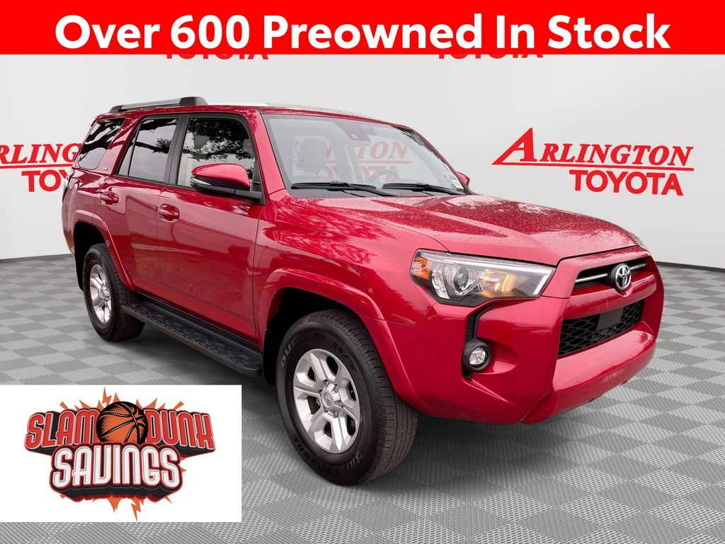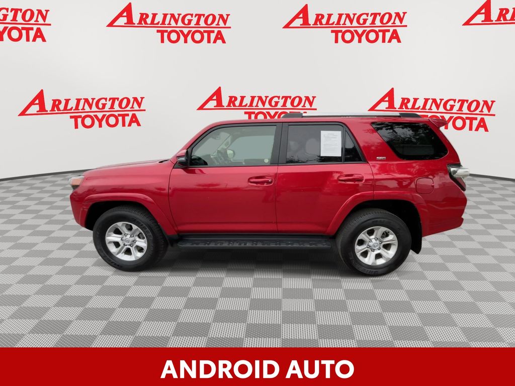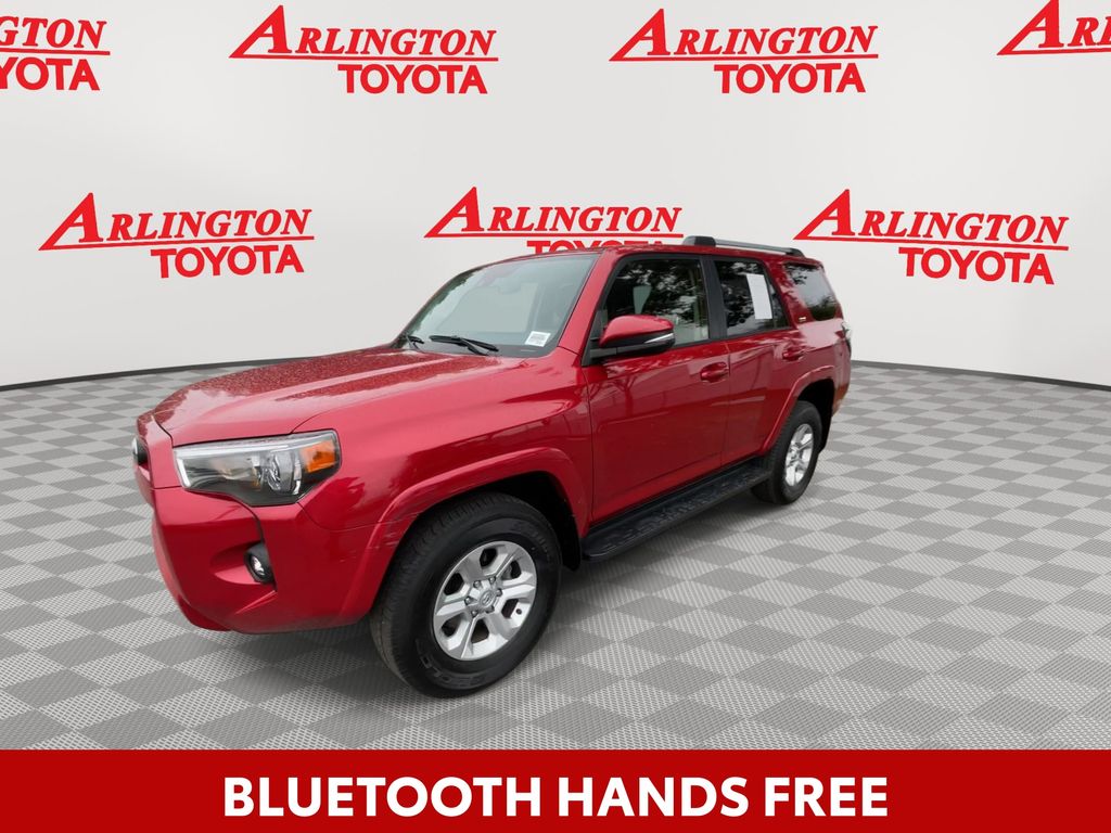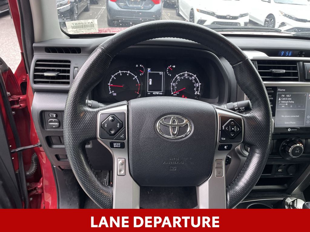 REMAINDER OF FACTORY WARRANTY STILL APPLIES, BACKUP CAMERA, BLUETOOTH HANDS FREE, ANDROID AUTO, APPLE CARPLAY, 4X4/FOUR WHEEL DRIVE, POWER SEATS, LOW MILES, NAVIGATION SYSTEM, RUNNING BOARDS, TOW PACKAGE, PUSH BUTTON START, LANE DEPARTURE, ADAPTIVE CRUISE CONTROL, NON SMOKER, 4Runner SR5 Premium 4x4, 4D Sport Utility, 4.0L V6 DOHC 24V, 5-Speed with ECT, 4WD, Barcelona Red Metallic, Black/Graphite w/SofTex Seat Trim, ABS brakes, Electronic Stability Control, Garage Door Opener, Heated Outside Rear-View Mirrors, Low tire pressure warning, Remote keyless entry, SR5 Premium Package, Steering wheel mounted audio controls, 17" 6-Spoke Alloy Wheels, 3.727 Axle Ratio, 4-Wheel Disc Brakes, 8 Speakers, Air Conditioning, Alloy wheels, AM/FM radio: SiriusXM, Anti-whiplash front head restraints, Apple CarPlay/Android Auto, Auto High-beam Headlights, Auto-dimming Rear-View mirror, Brake assist, Bumpers: body-color, Compass, Driver door bin, Driver vanity mirror, Dual front impact airbags, Dual front side impact airbags, Exterior Parking Camera Rear, Front anti-roll bar, Front Bucket Seats, Front Center Armrest, Front fog lights, Front reading lights, Front wheel independent suspension, Garage door transmitter: HomeLink, Heated door mirrors, Heated Front Bucket Seats, Heated front seats, Heated steering wheel, Illuminated entry, Knee airbag, Leather Shift Knob, Leather steering wheel, Navigation System, Occupant sensing airbag, Outside temperature display, Overhead airbag, Overhead console, Panic alarm, Passenger door bin, Passenger vanity mirror, Power door mirrors, Power driver seat, Power passenger seat, Power steering, Power windows, Radio: Premium Audio, Rear anti-roll bar, Rear seat center armrest, Rear window defroster, Rear window wiper, Rigid Running Boards, Security system, SofTex Seat Trim, Speed control, Speed-sensing steering, Split folding rear seat, Spoiler, Tachometer, Telescoping steering wheel, Tilt steering wheel, Traction control, Trip computer, Turn signal indicator mirrors, Variably intermittent wipers, 4Runner SR5 Premium 4x4, 4D Sport Utility, 4.0L V6 DOHC 24V, 5-Speed with ECT, 4WD, Barcelona Red Metallic, Black/Graphite w/SofTex Seat Trim, ABS brakes, Electronic Stability Control, Garage Door Opener, Heated Outside Rear-View Mirrors, Low tire pressure warning, Remote keyless entry, SR5 Premium Package, Steering wheel mounted audio controls.