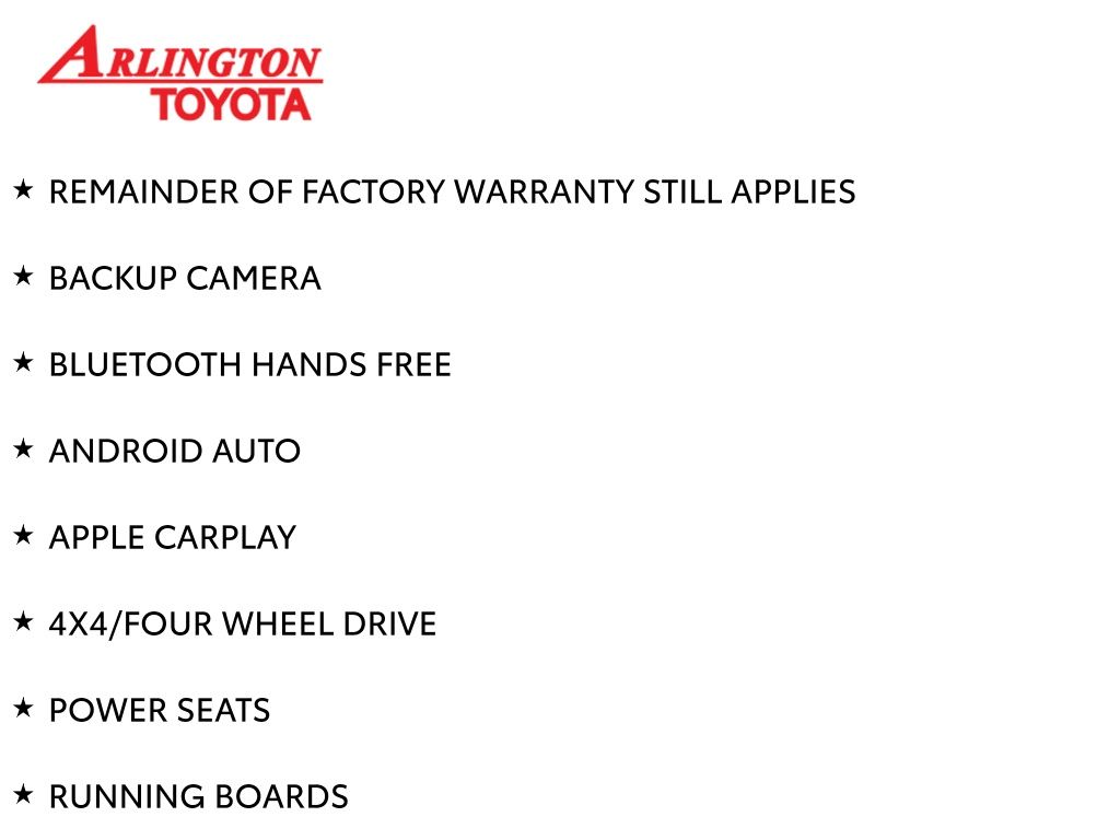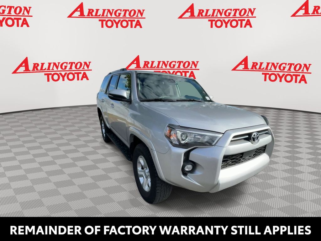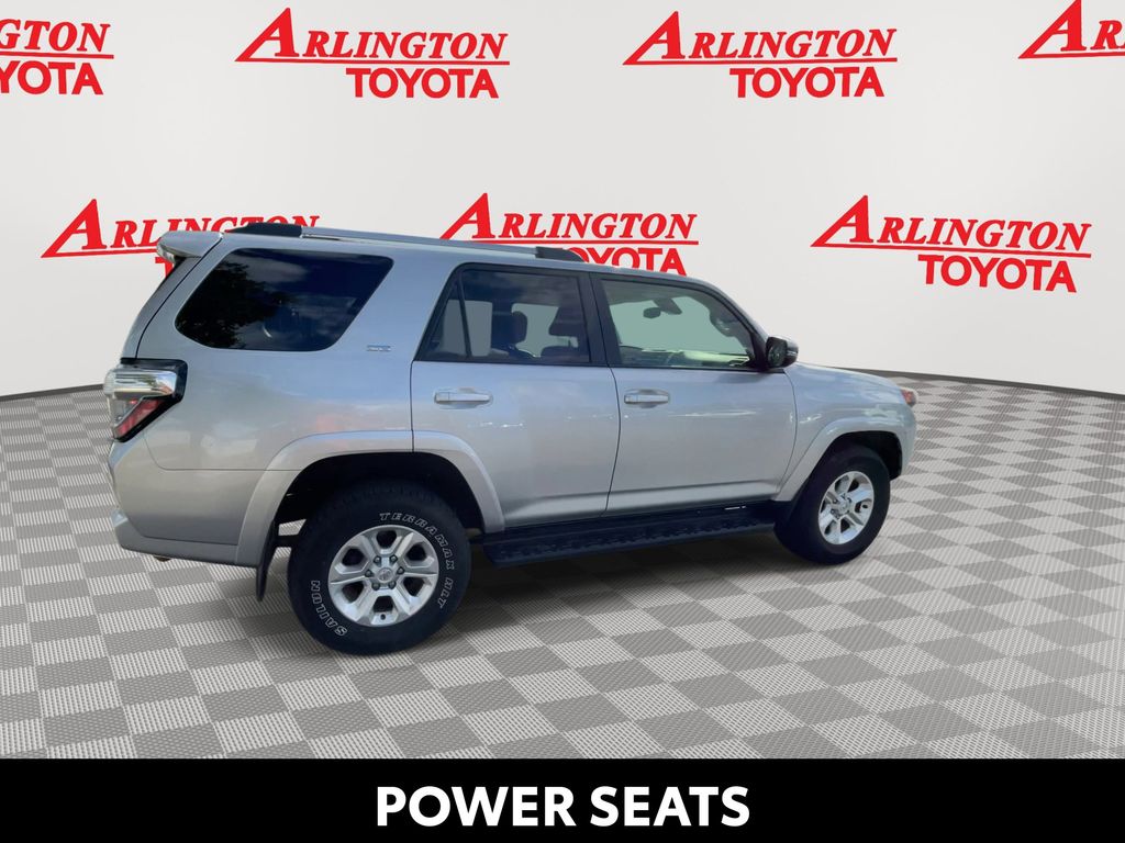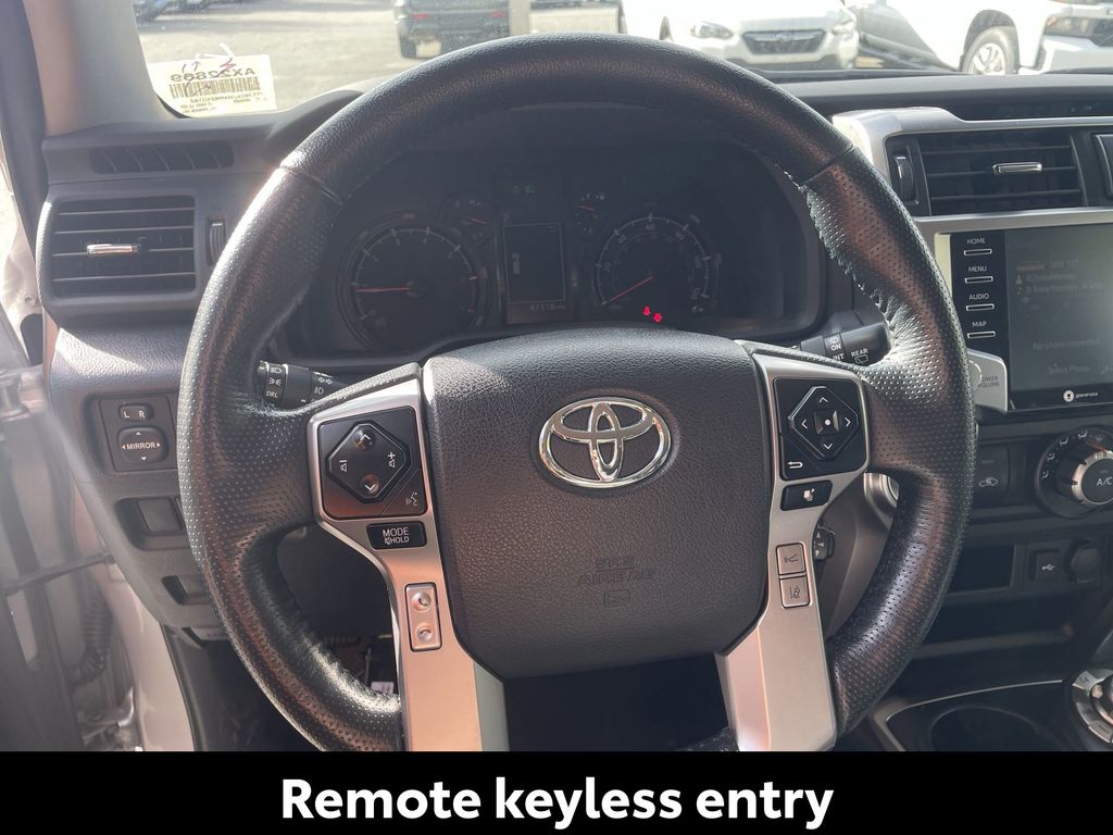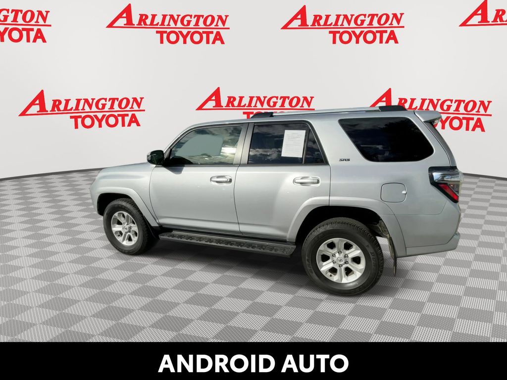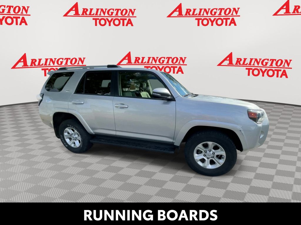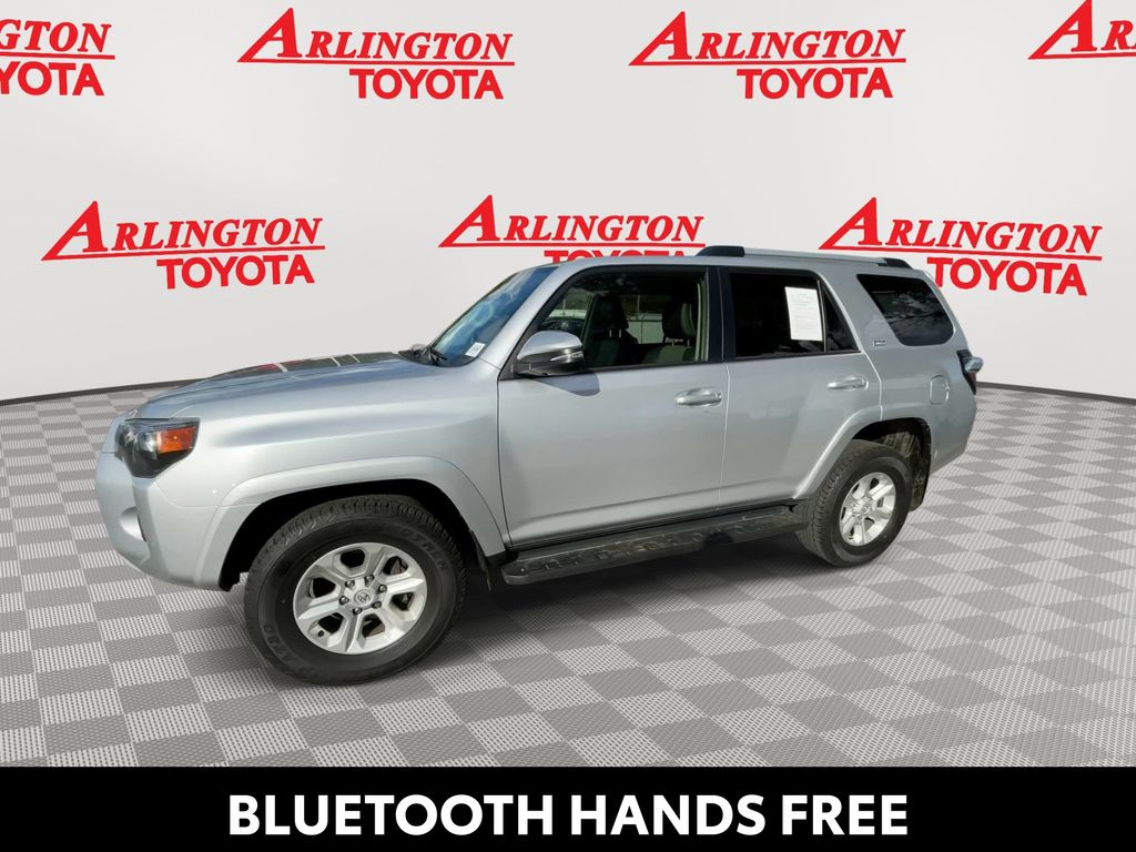 REMAINDER OF FACTORY WARRANTY STILL APPLIES, BACKUP CAMERA, BLUETOOTH HANDS FREE, ANDROID AUTO, APPLE CARPLAY, 4X4/FOUR WHEEL DRIVE, POWER SEATS, RUNNING BOARDS, TOW PACKAGE, LANE DEPARTURE, ADAPTIVE CRUISE CONTROL, NON SMOKER, 4Runner SR5 Premium 4X4, 4D Sport Utility, 4.0L V6 DOHC 24V, 5-Speed with ECT, 4WD, Classic Silver Metallic, Black/Graphite w/Fabric Seat Trim, ABS brakes, Electronic Stability Control, Low tire pressure warning, Remote keyless entry, Steering wheel mounted audio controls, 17" 6-Spoke Alloy Wheels, 3.727 Axle Ratio, 4-Wheel Disc Brakes, 8 Speakers, Air Conditioning, Alloy wheels, AM/FM radio: SiriusXM, Anti-whiplash front head restraints, Apple CarPlay/Android Auto, Auto High-beam Headlights, Auto-dimming Rear-View mirror, Brake assist, Bumpers: body-color, Compass, Driver door bin, Driver vanity mirror, Dual front impact airbags, Dual front side impact airbags, Exterior Parking Camera Rear, Front anti-roll bar, Front Bucket Seats, Front Center Armrest, Front fog lights, Front reading lights, Front wheel independent suspension, Garage Door Opener, Garage door transmitter: HomeLink, Heated door mirrors, Heated Front Bucket Seats, Heated front seats, Heated Outside Rear-View Mirrors, Heated steering wheel, Illuminated entry, Knee airbag, Leather Shift Knob, Leather steering wheel, Navigation System, Occupant sensing airbag, Outside temperature display, Overhead airbag, Overhead console, Panic alarm, Passenger door bin, Passenger vanity mirror, Power door mirrors, Power driver seat, Power passenger seat, Power steering, Power windows, Radio: Premium Audio, Rear anti-roll bar, Rear seat center armrest, Rear window defroster, Rear window wiper, Rigid Running Boards, Security system, SofTex Seat Trim, Speed control, Speed-sensing steering, Split folding rear seat, Spoiler, SR5 Premium Package, Tachometer, Telescoping steering wheel, Tilt steering wheel, Traction control, Trip computer, Turn signal indicator mirrors, Variably intermittent wipers, 4Runner SR5 Premium 4X4, 4D Sport Utility, 4.0L V6 DOHC 24V, 5-Speed with ECT, 4WD, Classic Silver Metallic, Black/Graphite w/Fabric Seat Trim, ABS brakes, Electronic Stability Control, Low tire pressure warning, Remote keyless entry, Steering wheel mounted audio controls.
