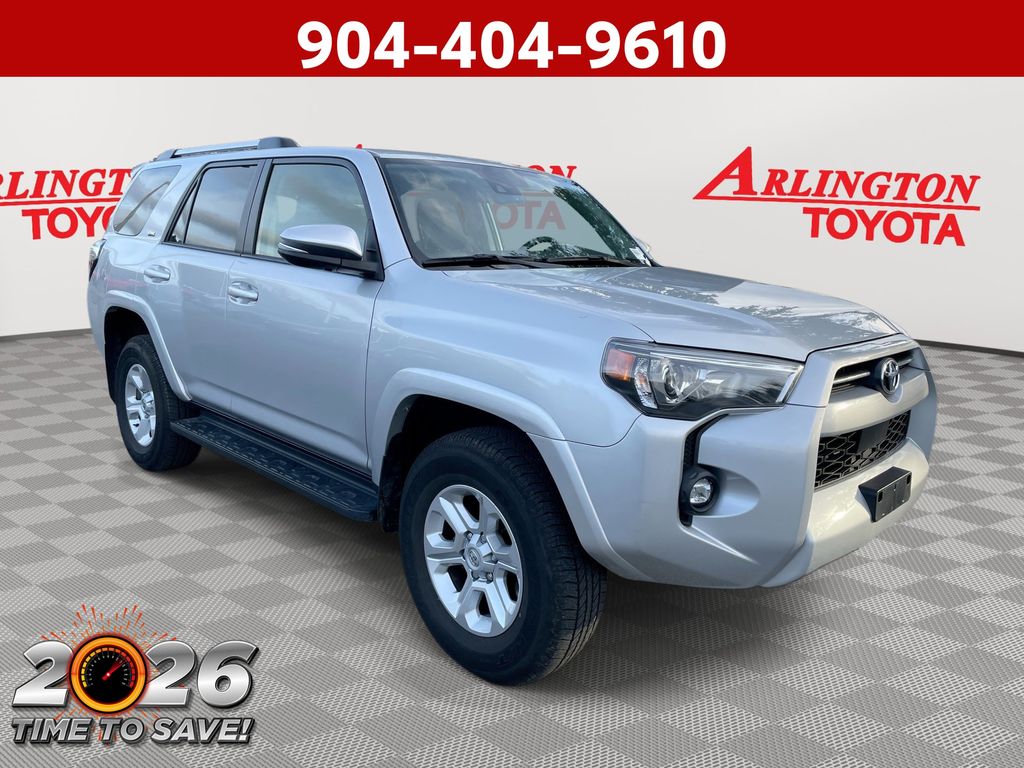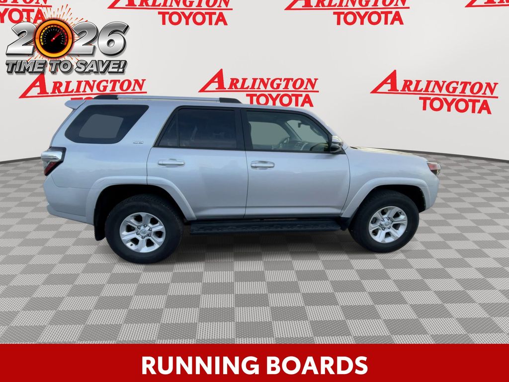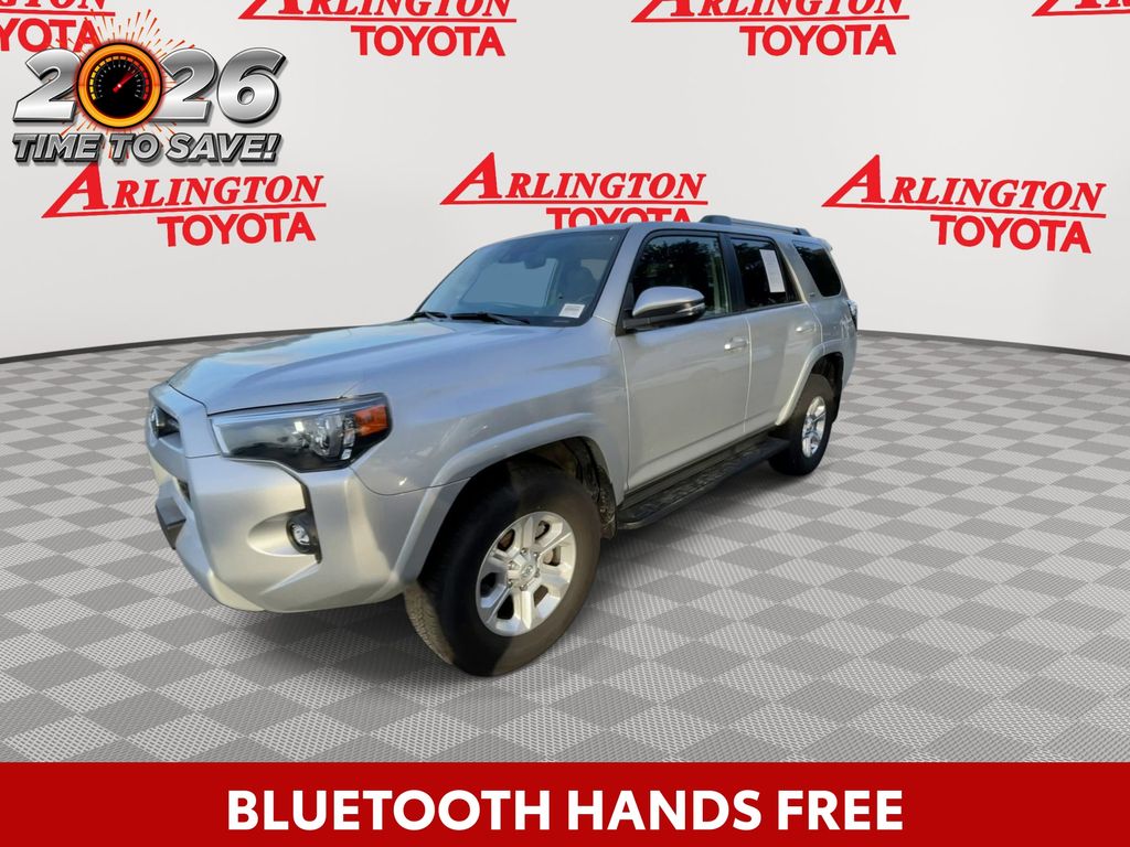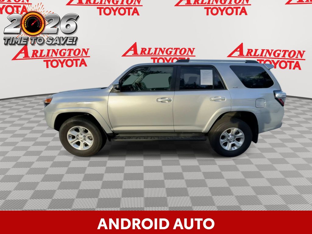 REMAINDER OF FACTORY WARRANTY STILL APPLIES, BACKUP CAMERA, BLUETOOTH HANDS FREE, ANDROID AUTO, APPLE CARPLAY, 4X4/FOUR WHEEL DRIVE, POWER SEATS, RUNNING BOARDS, LANE DEPARTURE, ADAPTIVE CRUISE CONTROL, NON SMOKER, 4Runner SR5 Premium 4X4, 4D Sport Utility, 4.0L V6 DOHC 24V, 5-Speed with ECT, 4WD, Classic Silver Metallic, Black/Graphite w/SofTex Seat Trim, ABS brakes, Electronic Stability Control, Garage Door Opener, Heated Outside Rear-View Mirrors, Low tire pressure warning, SR5 Premium Package, Steering wheel mounted audio controls, Turn signal indicator mirrors, 17" 6-Spoke Alloy Wheels, 3.727 Axle Ratio, 4-Wheel Disc Brakes, 8 Speakers, Air Conditioning, Alloy wheels, AM/FM radio: SiriusXM, Anti-whiplash front head restraints, Apple CarPlay/Android Auto, Auto High-beam Headlights, Auto-dimming Rear-View mirror, Brake assist, Bumpers: body-color, Compass, Driver door bin, Driver vanity mirror, Dual front impact airbags, Dual front side impact airbags, Exterior Parking Camera Rear, Front anti-roll bar, Front Bucket Seats, Front Center Armrest, Front fog lights, Front reading lights, Front wheel independent suspension, Garage door transmitter: HomeLink, Heated door mirrors, Heated Front Bucket Seats, Heated front seats, Heated steering wheel, Illuminated entry, Knee airbag, Leather Shift Knob, Leather steering wheel, Navigation System, Occupant sensing airbag, Outside temperature display, Overhead airbag, Overhead console, Panic alarm, Passenger door bin, Passenger vanity mirror, Power door mirrors, Power driver seat, Power passenger seat, Power steering, Power windows, Radio: Premium Audio, Rear anti-roll bar, Rear seat center armrest, Rear window defroster, Rear window wiper, Remote keyless entry, Rigid Running Boards, Security system, SofTex Seat Trim, Speed control, Speed-sensing steering, Split folding rear seat, Spoiler, Tachometer, Telescoping steering wheel, Tilt steering wheel, Traction control, Trip computer, Variably intermittent wipers, 4Runner SR5 Premium 4X4, 4D Sport Utility, 4.0L V6 DOHC 24V, 5-Speed with ECT, 4WD, Classic Silver Metallic, Black/Graphite w/SofTex Seat Trim, ABS brakes, Electronic Stability Control, Garage Door Opener, Heated Outside Rear-View Mirrors, Low tire pressure warning, SR5 Premium Package, Steering wheel mounted audio controls, Turn signal indicator mirrors.
