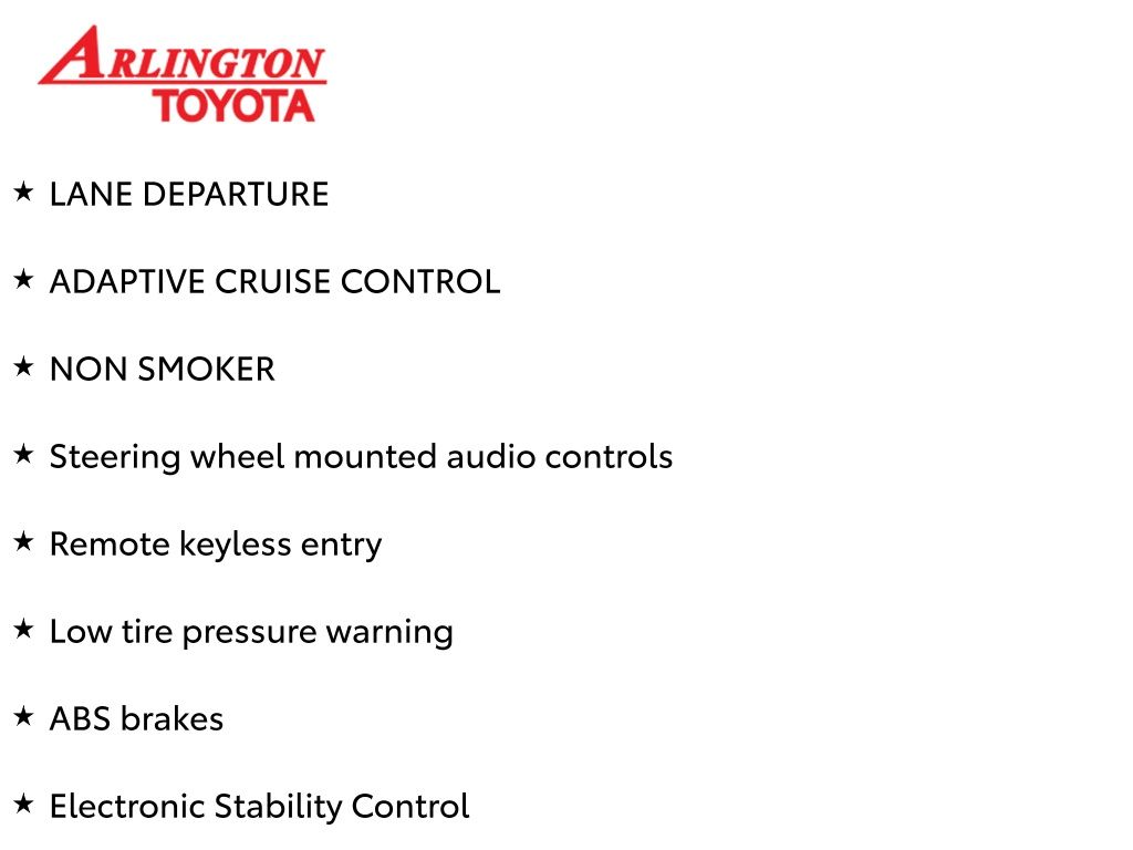 Prices do not include tax, tag, title, a pre-delivery service fee* of $894.00, an electronic registration filing fee* of $199.00 (*these charges represent costs and profits to the dealer for items such as inspecting, cleaning, and preparing documents related to the sale), and an Arlington Toyota Total Value Package of $1,889.00 (*these charges represent costs and profits to the dealer for items such as inspecting, cleaning, and preparing documents related to the sale). The final price is also subject to repair order reconditioning costs. Any price does not include dealer-installed accessories. All offers are mutually exclusive. All vehicles are subject to prior sale. See dealer for complete details.