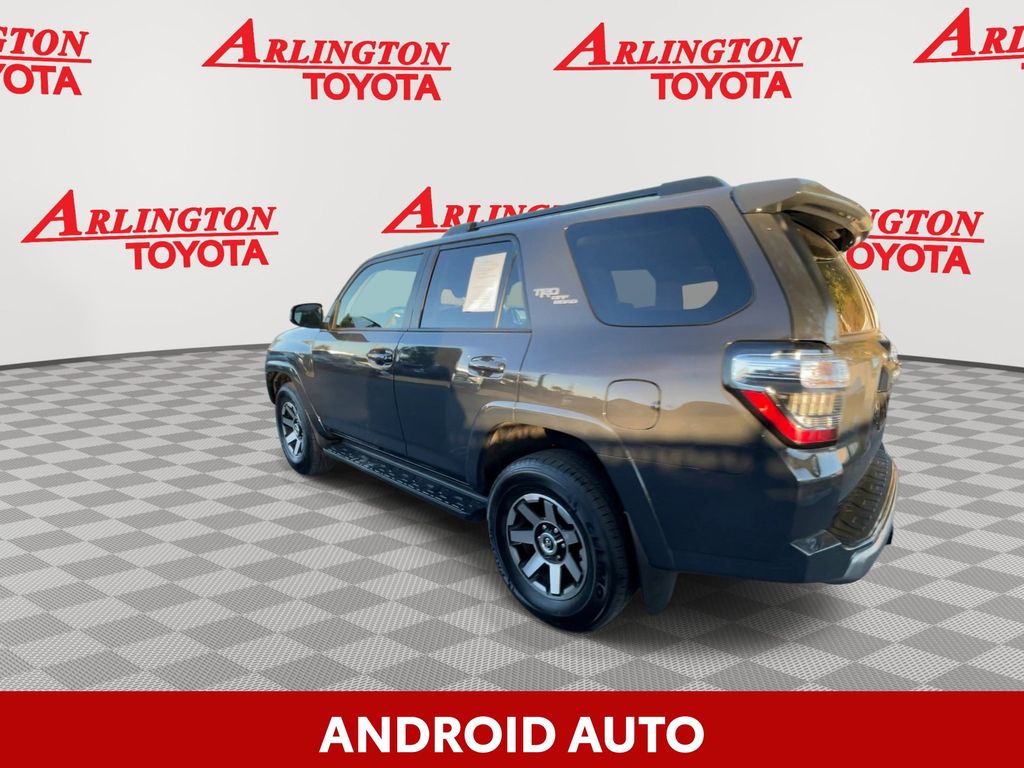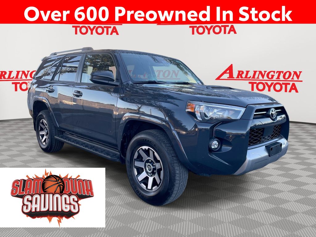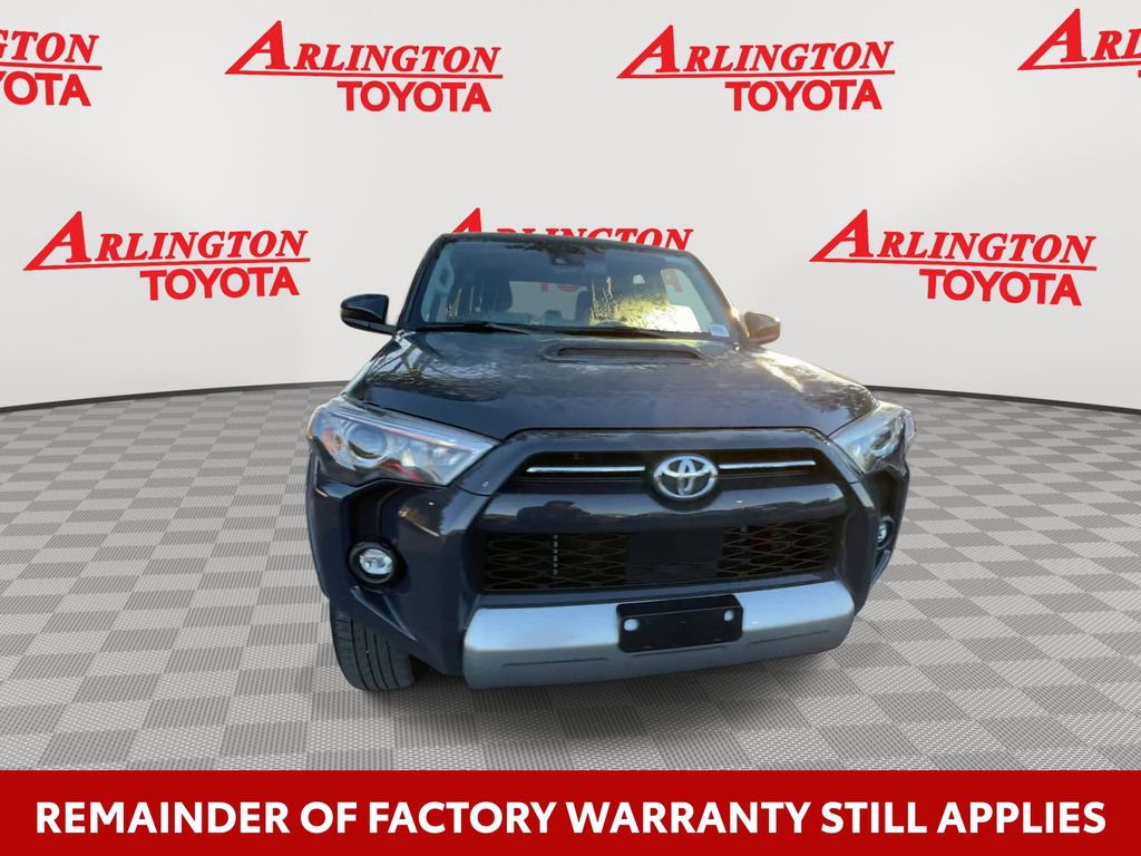 CERTIFIED BY CARFAX - ONE OWNER, REMAINDER OF FACTORY WARRANTY STILL APPLIES, BACKUP CAMERA, BLUETOOTH HANDS FREE, ANDROID AUTO, APPLE CARPLAY, 4X4/FOUR WHEEL DRIVE, POWER SEATS, TOW PACKAGE, PUSH BUTTON START, LANE DEPARTURE, ADAPTIVE CRUISE CONTROL, NON SMOKER, 4Runner TRD Off-Road, 4D Sport Utility, 4.0L V6 DOHC 24V, 5-Speed with ECT, 4WD, Underground, Black/Graphite w/Fabric Seat Trim, ABS brakes, Electronic Stability Control, Low tire pressure warning, Remote keyless entry, Steering wheel mounted audio controls, 3.727 Axle Ratio, 4-Wheel Disc Brakes, 8 Speakers, Air Conditioning, Alloy wheels, AM/FM radio: SiriusXM, Anti-whiplash front head restraints, Apple CarPlay/Android Auto, Auto High-beam Headlights, Black Roof Rails, Brake assist, Bumpers: body-color, Compass, Driver door bin, Driver vanity mirror, Dual front impact airbags, Dual front side impact airbags, Exterior Parking Camera Rear, Fabric Seat Trim, Front anti-roll bar, Front Bucket Seats, Front Center Armrest, Front fog lights, Front reading lights, Front wheel independent suspension, Heated door mirrors, Illuminated entry, Knee airbag, Leather Shift Knob, Occupant sensing airbag, Outside temperature display, Overhead airbag, Overhead console, Panic alarm, Passenger door bin, Passenger vanity mirror, Power door mirrors, Power driver seat, Power steering, Power windows, Radio: Audio Plus, Rear anti-roll bar, Rear seat center armrest, Rear window defroster, Rear window wiper, Security system, Speed control, Speed-sensing steering, Split folding rear seat, Spoiler, Tachometer, Telescoping steering wheel, Tilt steering wheel, Traction control, Trip computer, Variably intermittent wipers, Wheels: 17" Unique 7-Spoke Off-Road Alloy, 4Runner TRD Off-Road, 4D Sport Utility, 4.0L V6 DOHC 24V, 5-Speed with ECT, 4WD, Underground, Black/Graphite w/Fabric Seat Trim, ABS brakes, Electronic Stability Control, Low tire pressure warning, Remote keyless entry, Steering wheel mounted audio controls.