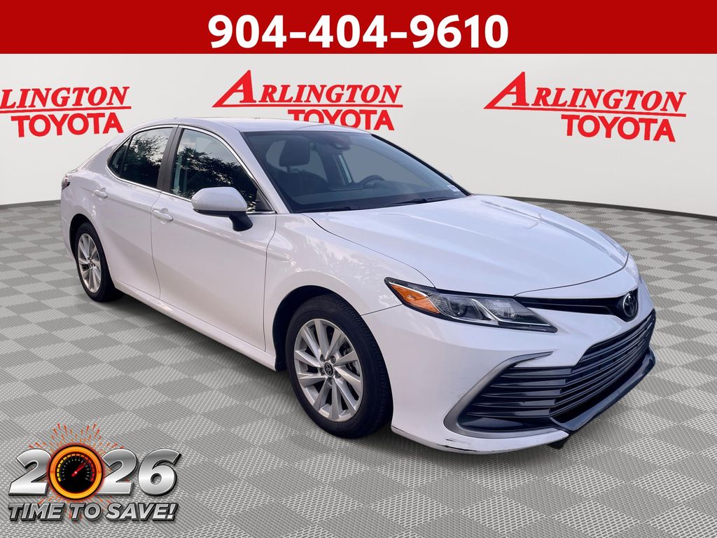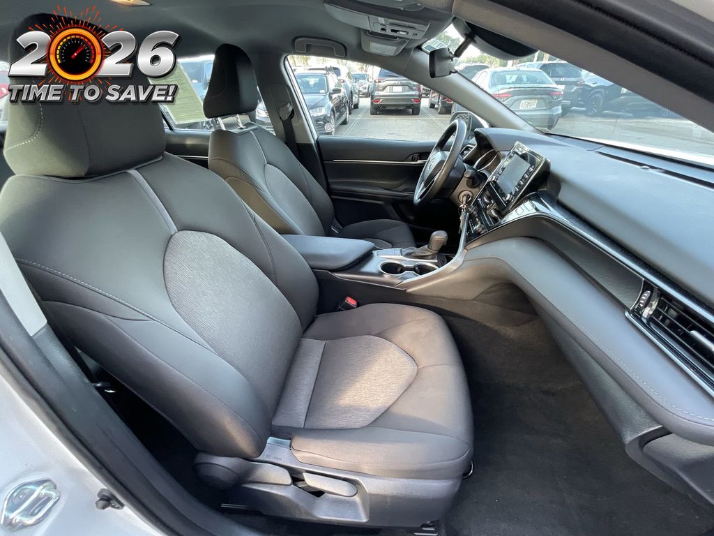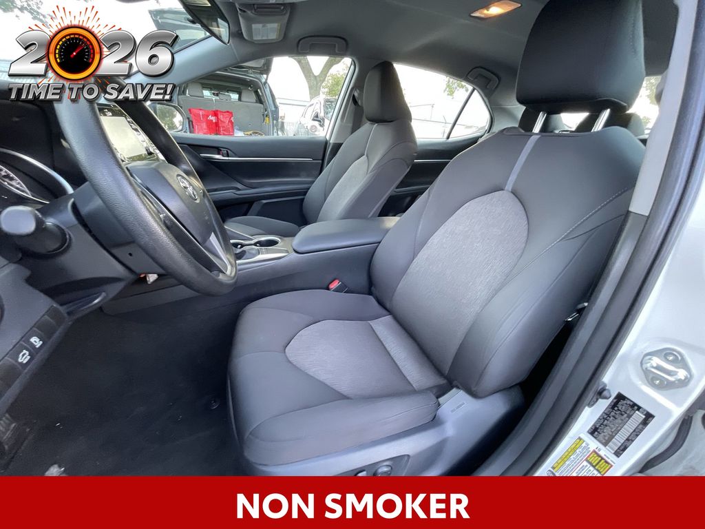 CERTIFIED BY CARFAX - ONE OWNER, REMAINDER OF FACTORY WARRANTY STILL APPLIES, BACKUP CAMERA, BLUETOOTH HANDS FREE, ANDROID AUTO, APPLE CARPLAY, POWER SEATS, LANE DEPARTURE, ADAPTIVE CRUISE CONTROL, NON SMOKER, Camry LE, 4D Sedan, 2.5L I4 DOHC 16V, 8-Speed Automatic, FWD, Ice Cap, Black Cloth, ABS brakes, Four wheel independent suspension, Front dual zone A/C, Low tire pressure warning, Remote keyless entry, Steering wheel mounted audio controls, 4-Wheel Disc Brakes, 6 Speakers, Air Conditioning, Alloy wheels, AM/FM radio: SiriusXM, Apple CarPlay/Android Auto, Auto High-beam Headlights, Automatic temperature control, Brake assist, Bumpers: body-color, Delay-off headlights, Driver door bin, Driver vanity mirror, Dual front impact airbags, Dual front side impact airbags, Electronic Stability Control, Exterior Parking Camera Rear, Fabric Seat Trim, Front anti-roll bar, Front Bucket Seats, Front Center Armrest, Front reading lights, Fully automatic headlights, Illuminated entry, Knee airbag, Occupant sensing airbag, Outside temperature display, Overhead airbag, Overhead console, Panic alarm, Passenger door bin, Passenger vanity mirror, Power door mirrors, Power driver seat, Power steering, Power windows, Radio data system, Radio: Audio, Rear anti-roll bar, Rear seat center armrest, Rear side impact airbag, Rear window defroster, Security system, Speed control, Speed-sensing steering, Split folding rear seat, Tachometer, Telescoping steering wheel, Tilt steering wheel, Traction control, Trip computer, Variably intermittent wipers, Wheels: 17" x 7.5J Alloy, Camry LE, 4D Sedan, 2.5L I4 DOHC 16V, 8-Speed Automatic, FWD, Ice Cap, Black Cloth, ABS brakes, Four wheel independent suspension, Front dual zone A/C, Low tire pressure warning, Remote keyless entry, Steering wheel mounted audio controls.