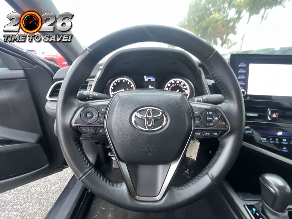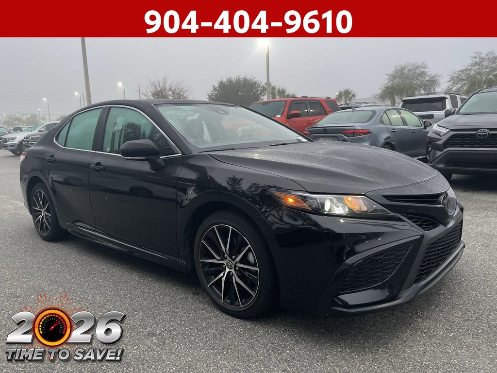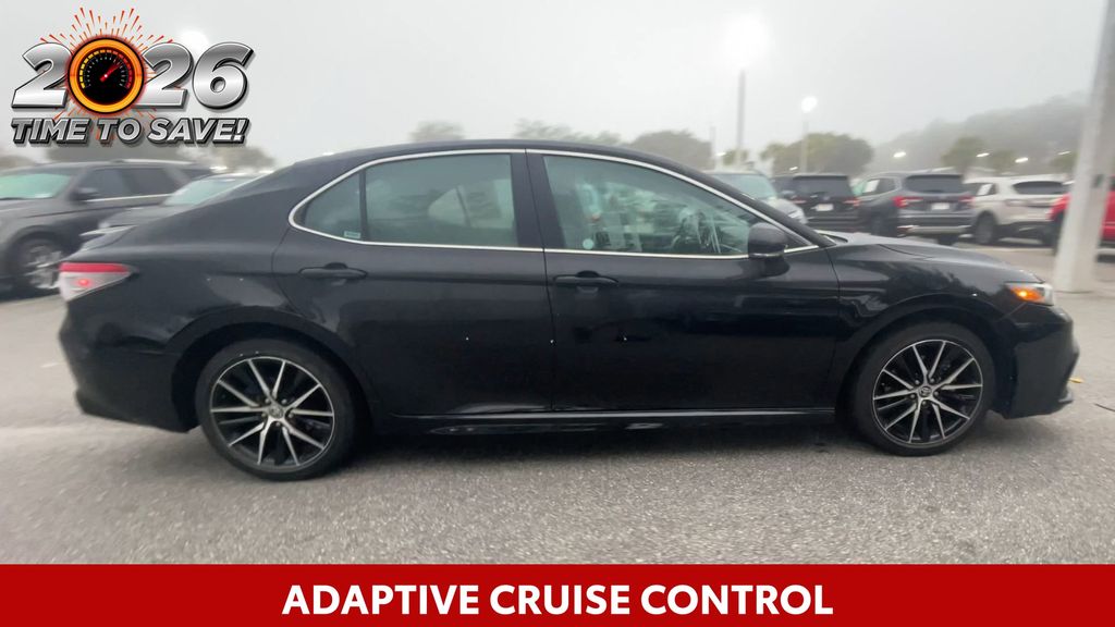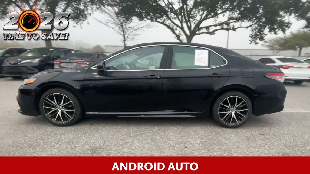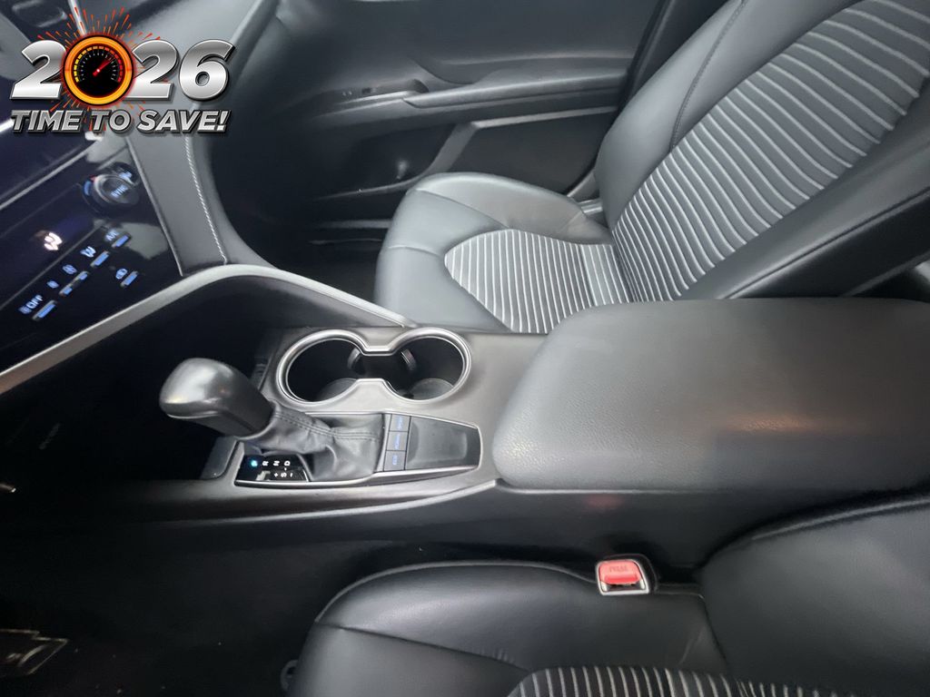 REMAINDER OF FACTORY WARRANTY STILL APPLIES, BACKUP CAMERA, BLUETOOTH HANDS FREE, ANDROID AUTO, APPLE CARPLAY, POWER SEATS, LANE DEPARTURE, ADAPTIVE CRUISE CONTROL, NON SMOKER, Camry SE, 4D Sedan, 2.5L I4 DOHC 16V, 8-Speed Automatic, FWD, Midnight Black Metallic, Black w/Sport SofTex Seat Trim w/Fabric Inserts, 18" x 8J Alloy Wheels, 4-Wheel Disc Brakes, 6 Speakers, ABS brakes, Air Conditioning, Alloy wheels, AM/FM radio: SiriusXM, Apple CarPlay/Android Auto, Auto High-beam Headlights, Automatic temperature control, Brake assist, Bumpers: body-color, Delay-off headlights, Driver door bin, Driver vanity mirror, Dual front impact airbags, Dual front side impact airbags, Electronic Stability Control, Emergency communication system: Safety Connect (1-year trial), Exterior Parking Camera Rear, Four wheel independent suspension, Front anti-roll bar, Front Bucket Seats, Front Center Armrest, Front dual zone A/C, Front reading lights, Fully automatic headlights, Heated door mirrors, Illuminated entry, Knee airbag, Leather steering wheel, Low tire pressure warning, Occupant sensing airbag, Outside temperature display, Overhead airbag, Overhead console, Panic alarm, Passenger door bin, Passenger vanity mirror, Power door mirrors, Power driver seat, Power steering, Power windows, Radio data system, Radio: Audio, Rear anti-roll bar, Rear seat center armrest, Rear side impact airbag, Rear window defroster, Remote keyless entry, Security system, Speed control, Speed-sensing steering, Split folding rear seat, Spoiler, Sport SofTex Seat Trim w/Fabric Inserts, Steering wheel mounted audio controls, Tachometer, Telescoping steering wheel, Tilt steering wheel, Traction control, Trip computer, Turn signal indicator mirrors, Variably intermittent wipers, Camry SE, 4D Sedan, 2.5L I4 DOHC 16V, 8-Speed Automatic, FWD, Midnight Black Metallic, Black w/Sport SofTex Seat Trim w/Fabric Inserts.