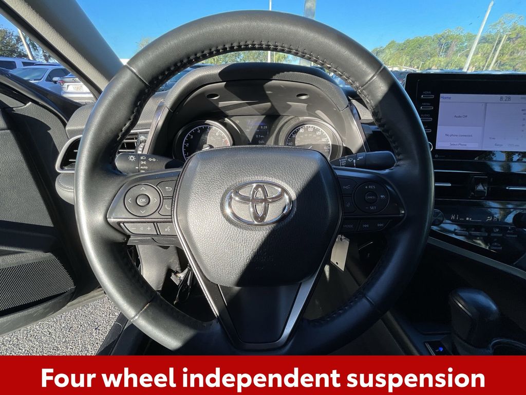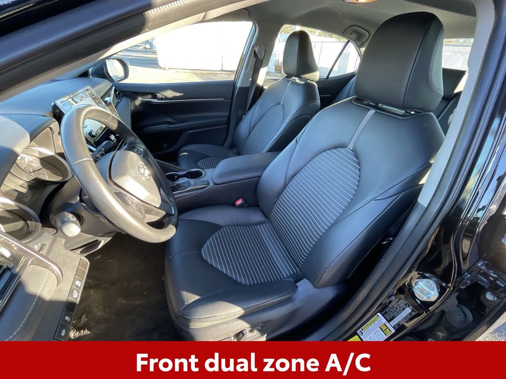 CERTIFIED BY CARFAX - ONE OWNER, BACKUP CAMERA, BLUETOOTH HANDS FREE, ANDROID AUTO, APPLE CARPLAY, POWER SEATS, LANE DEPARTURE, ADAPTIVE CRUISE CONTROL, NON SMOKER, Camry SE, 4D Sedan, 2.5L I4 DOHC 16V, 8-Speed Automatic, FWD, Midnight Black Metallic, ABS brakes, Four wheel independent suspension, Front dual zone A/C, Fully automatic headlights, Low tire pressure warning, Remote keyless entry, Steering wheel mounted audio controls, Turn signal indicator mirrors, 18" x 8J Alloy Wheels, 4-Wheel Disc Brakes, 6 Speakers, Air Conditioning, Alloy wheels, AM/FM radio: SiriusXM, Apple CarPlay/Android Auto, Auto High-beam Headlights, Automatic temperature control, Brake assist, Bumpers: body-color, Delay-off headlights, Driver door bin, Driver vanity mirror, Dual front impact airbags, Dual front side impact airbags, Electronic Stability Control, Exterior Parking Camera Rear, Front anti-roll bar, Front Bucket Seats, Front Center Armrest, Front reading lights, Heated door mirrors, Illuminated entry, Knee airbag, Leather steering wheel, Occupant sensing airbag, Outside temperature display, Overhead airbag, Overhead console, Panic alarm, Passenger door bin, Passenger vanity mirror, Power door mirrors, Power driver seat, Power steering, Power windows, Radio data system, Radio: Audio, Rear anti-roll bar, Rear seat center armrest, Rear side impact airbag, Rear window defroster, Security system, Speed control, Speed-sensing steering, Split folding rear seat, Spoiler, Sport SofTex Seat Trim w/Fabric Inserts, Tachometer, Telescoping steering wheel, Tilt steering wheel, Traction control, Trip computer, Variably intermittent wipers, Camry SE, 4D Sedan, 2.5L I4 DOHC 16V, 8-Speed Automatic, FWD, Midnight Black Metallic, ABS brakes, Four wheel independent suspension, Front dual zone A/C, Fully automatic headlights, Low tire pressure warning, Remote keyless entry, Steering wheel mounted audio controls, Turn signal indicator mirrors.