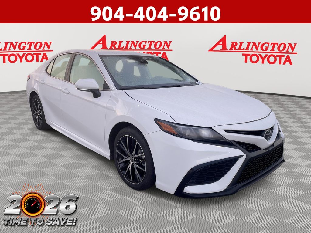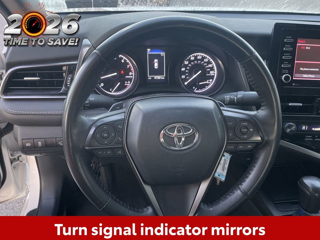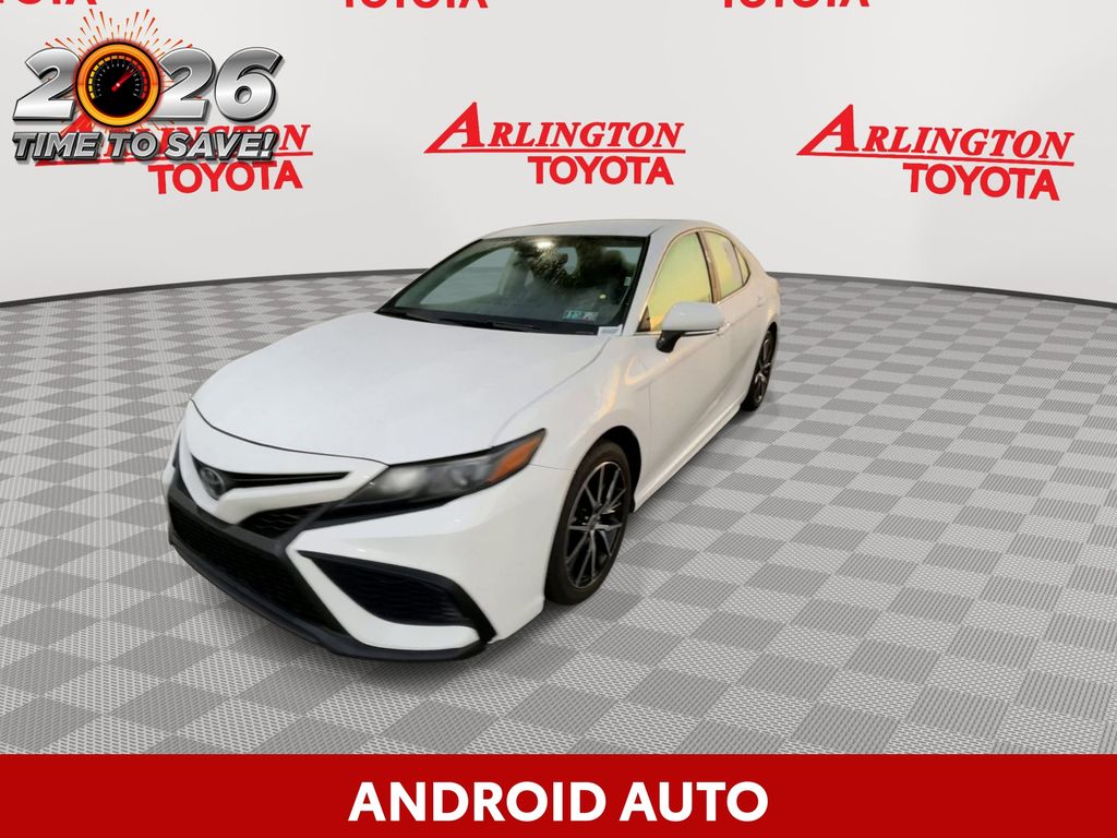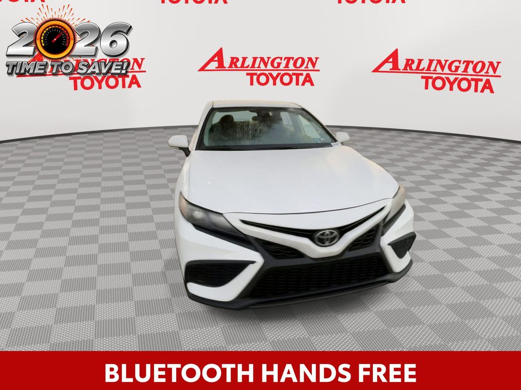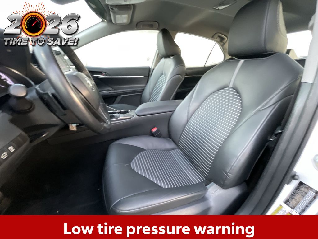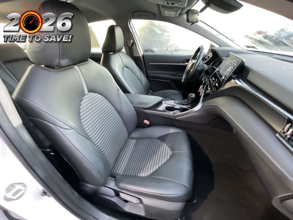 BACKUP CAMERA, BLUETOOTH HANDS FREE, ANDROID AUTO, APPLE CARPLAY, POWER SEATS, LANE DEPARTURE, ADAPTIVE CRUISE CONTROL, NON SMOKER, Camry SE, 4D Sedan, 2.5L I4 DOHC 16V, 8-Speed Automatic, FWD, Ice Cap, Black w/Sport SofTex Seat Trim w/Fabric Inserts, ABS brakes, Electronic Stability Control, Fully automatic headlights, Low tire pressure warning, Turn signal indicator mirrors, 18" x 8J Alloy Wheels, 4-Wheel Disc Brakes, 6 Speakers, Air Conditioning, Alloy wheels, AM/FM radio: SiriusXM, Apple CarPlay/Android Auto, Auto High-beam Headlights, Automatic temperature control, Brake assist, Bumpers: body-color, Delay-off headlights, Driver door bin, Driver vanity mirror, Dual front impact airbags, Dual front side impact airbags, Exterior Parking Camera Rear, Four wheel independent suspension, Front anti-roll bar, Front Bucket Seats, Front Center Armrest, Front dual zone A/C, Front reading lights, Heated door mirrors, Illuminated entry, Knee airbag, Leather steering wheel, Occupant sensing airbag, Outside temperature display, Overhead airbag, Overhead console, Panic alarm, Passenger door bin, Passenger vanity mirror, Power door mirrors, Power driver seat, Power steering, Power windows, Radio data system, Radio: Audio, Rear anti-roll bar, Rear seat center armrest, Rear side impact airbag, Rear window defroster, Remote keyless entry, Security system, Speed control, Speed-sensing steering, Split folding rear seat, Spoiler, Sport SofTex Seat Trim w/Fabric Inserts, Steering wheel mounted audio controls, Tachometer, Telescoping steering wheel, Tilt steering wheel, Traction control, Trip computer, Variably intermittent wipers, Camry SE, 4D Sedan, 2.5L I4 DOHC 16V, 8-Speed Automatic, FWD, Ice Cap, Black w/Sport SofTex Seat Trim w/Fabric Inserts, ABS brakes, Electronic Stability Control, Fully automatic headlights, Low tire pressure warning, Turn signal indicator mirrors.