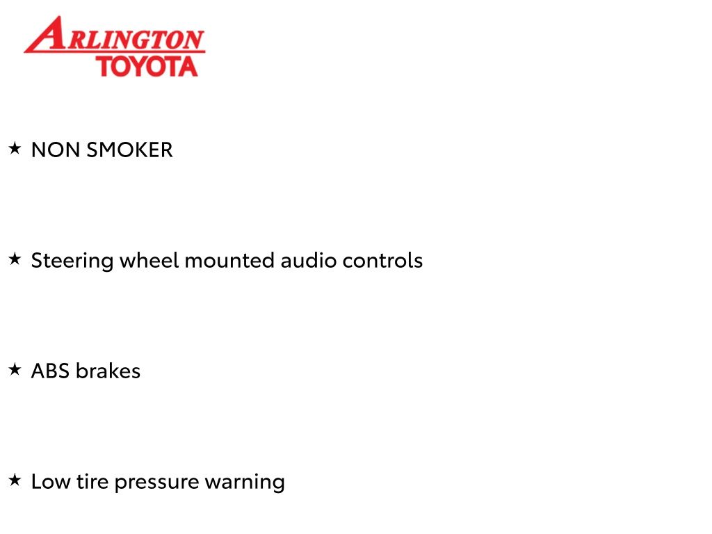 Prices do not include tax, tag, title, a pre-delivery service fee* of $894.00, an electronic registration filing fee* of $199.00 (*these charges represent costs and profits to the dealer for items such as inspecting, cleaning, and preparing documents related to the sale), and an Arlington Toyota Total Value Package of $1,889.00 (*these charges represent costs and profits to the dealer for items such as inspecting, cleaning, and preparing documents related to the sale). The final price is also subject to repair order reconditioning costs. Any price does not include dealer-installed accessories. All offers are mutually exclusive. All vehicles are subject to prior sale. See dealer for complete details.