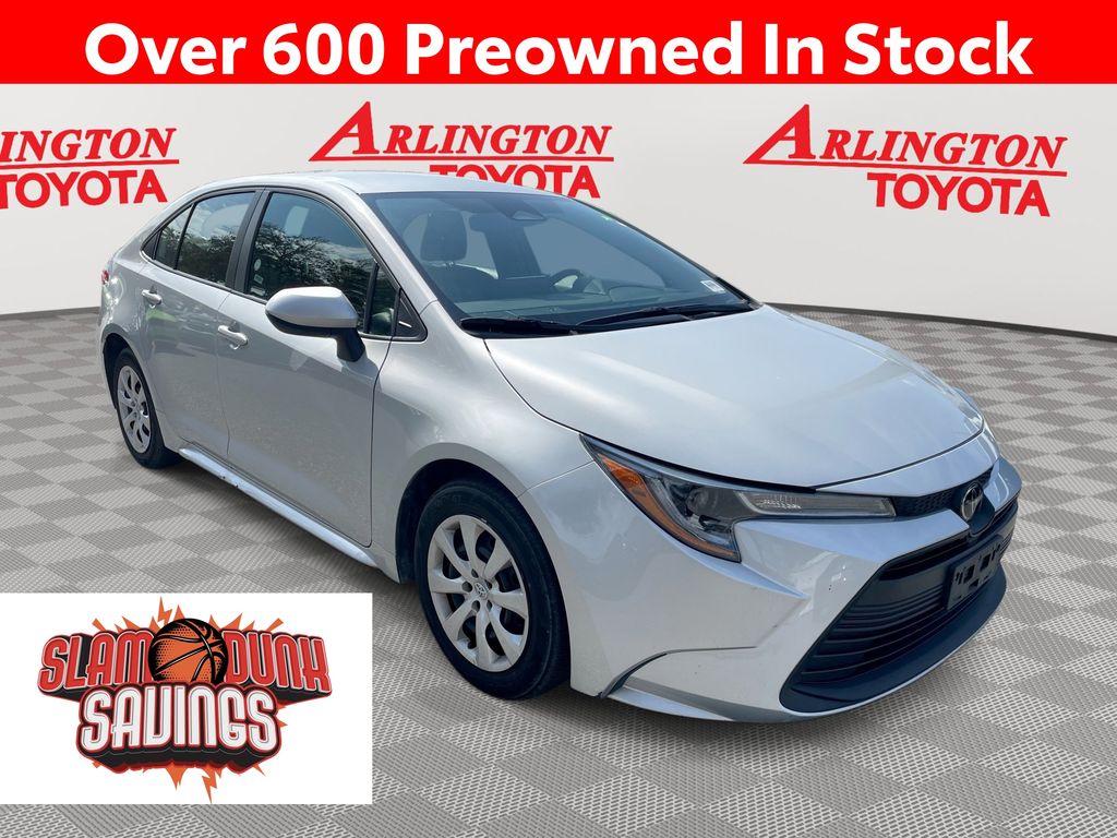 CERTIFIED BY CARFAX - ONE OWNER, REMAINDER OF FACTORY WARRANTY STILL APPLIES, BACKUP CAMERA, BLUETOOTH HANDS FREE, ANDROID AUTO, APPLE CARPLAY, LANE DEPARTURE, ADAPTIVE CRUISE CONTROL, NON SMOKER, Corolla LE, 4D Sedan, 2.0L I4 DOHC 16V, CVT, FWD, Classic Silver Metallic, Black Cloth, ABS brakes, Low tire pressure warning, Steering wheel mounted audio controls, 16" Steel Wheels w/Covers, 4-Wheel Disc Brakes, 6 Speakers, Air Conditioning, AM/FM radio: SiriusXM, Auto High-beam Headlights, Automatic temperature control, Brake assist, Bumpers: body-color, Delay-off headlights, Driver door bin, Driver vanity mirror, Dual front impact airbags, Dual front side impact airbags, Electronic Stability Control, Exterior Parking Camera Rear, Fabric Seat Trim, Front anti-roll bar, Front Bucket Seats, Front Center Armrest, Front reading lights, Front wheel independent suspension, Fully automatic headlights, Illuminated entry, Knee airbag, Occupant sensing airbag, Outside temperature display, Overhead airbag, Panic alarm, Passenger door bin, Passenger vanity mirror, Power door mirrors, Power steering, Power windows, Radio data system, Radio: 8" Toyota Audio Multimedia, Rear anti-roll bar, Rear seat center armrest, Rear side impact airbag, Rear window defroster, Remote keyless entry, Speed control, Split folding rear seat, Tachometer, Telescoping steering wheel, Tilt steering wheel, Traction control, Trip computer, Corolla LE, 4D Sedan, 2.0L I4 DOHC 16V, CVT, FWD, Classic Silver Metallic, Black Cloth, ABS brakes, Low tire pressure warning, Steering wheel mounted audio controls.