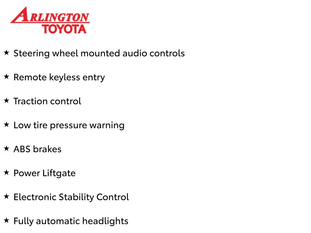 Prices do not include tax, tag, title, a pre-delivery service fee* of $894.00, an electronic registration filing fee* of $199.00 (*these charges represent costs and profits to the dealer for items such as inspecting, cleaning, and preparing documents related to the sale), and an Arlington Toyota Total Value Package of $1,889.00 (*these charges represent costs and profits to the dealer for items such as inspecting, cleaning, and preparing documents related to the sale). The final price is also subject to repair order reconditioning costs. Any price does not include dealer-installed accessories. All offers are mutually exclusive. All vehicles are subject to prior sale. See dealer for complete details.